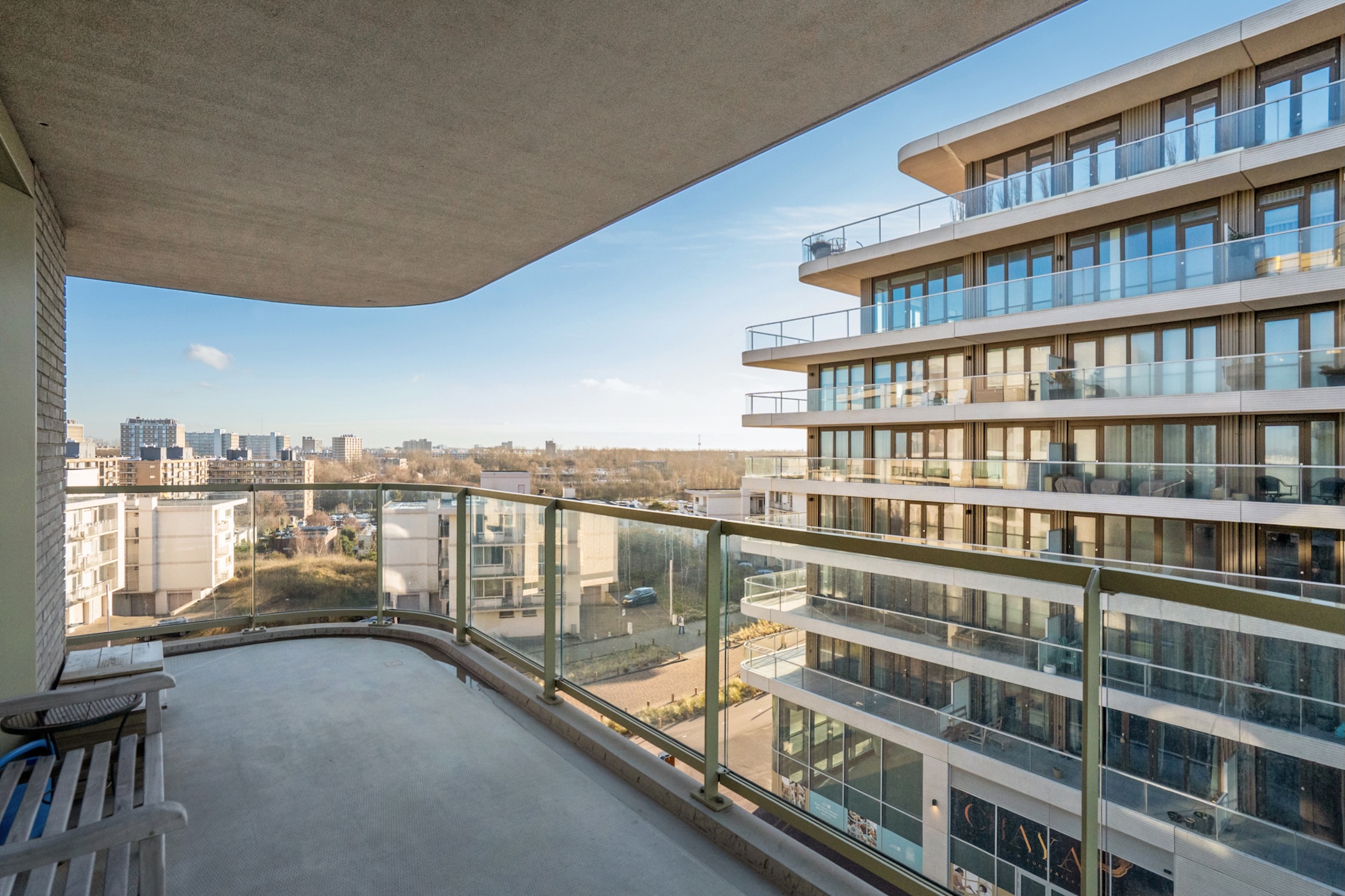 Balcony facing east, south, and a bit to the southwest