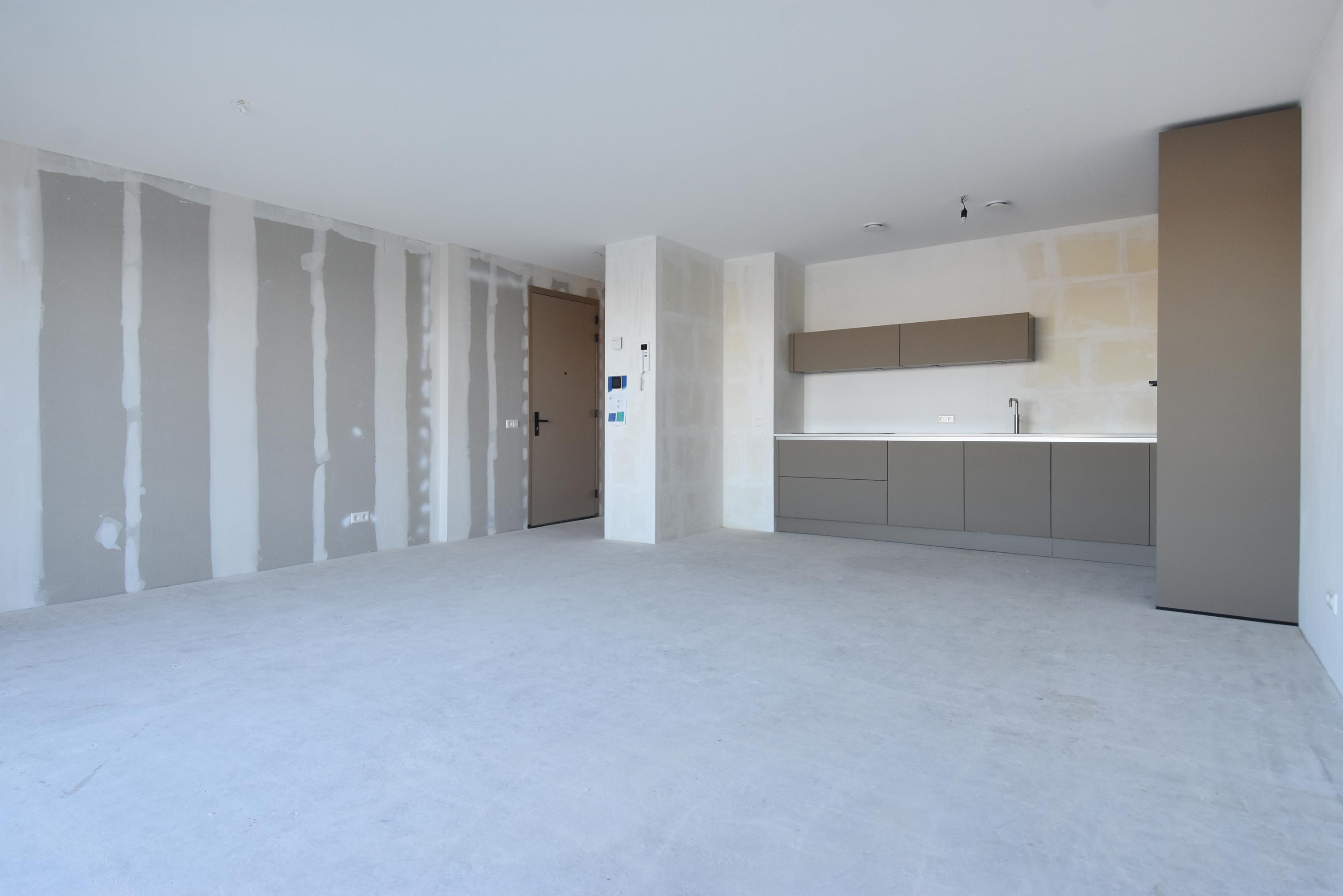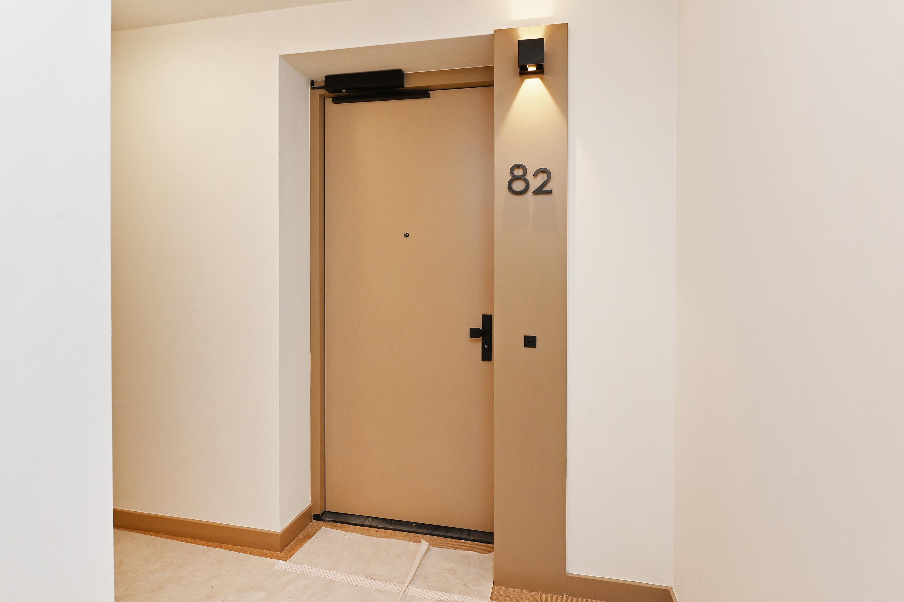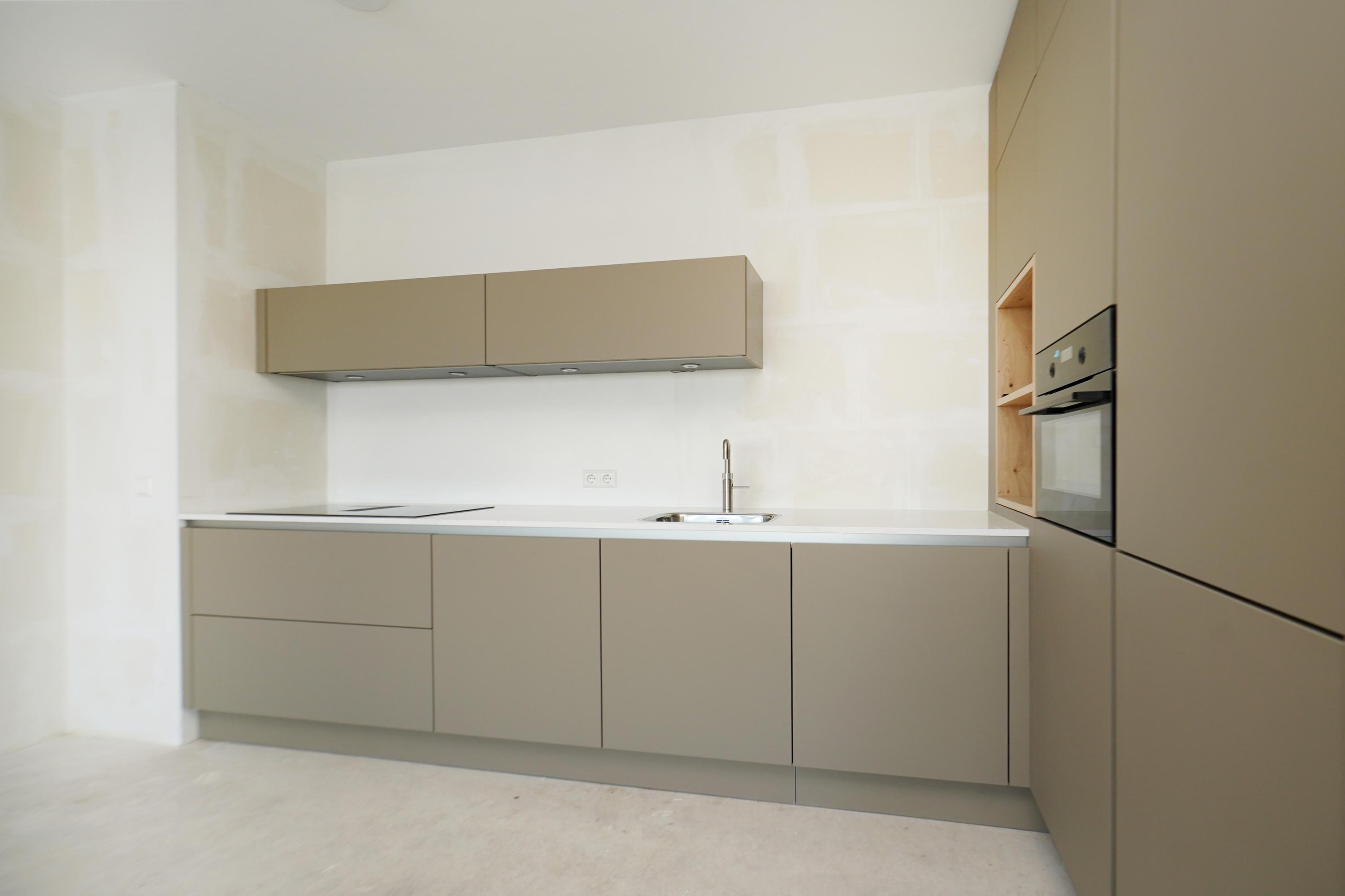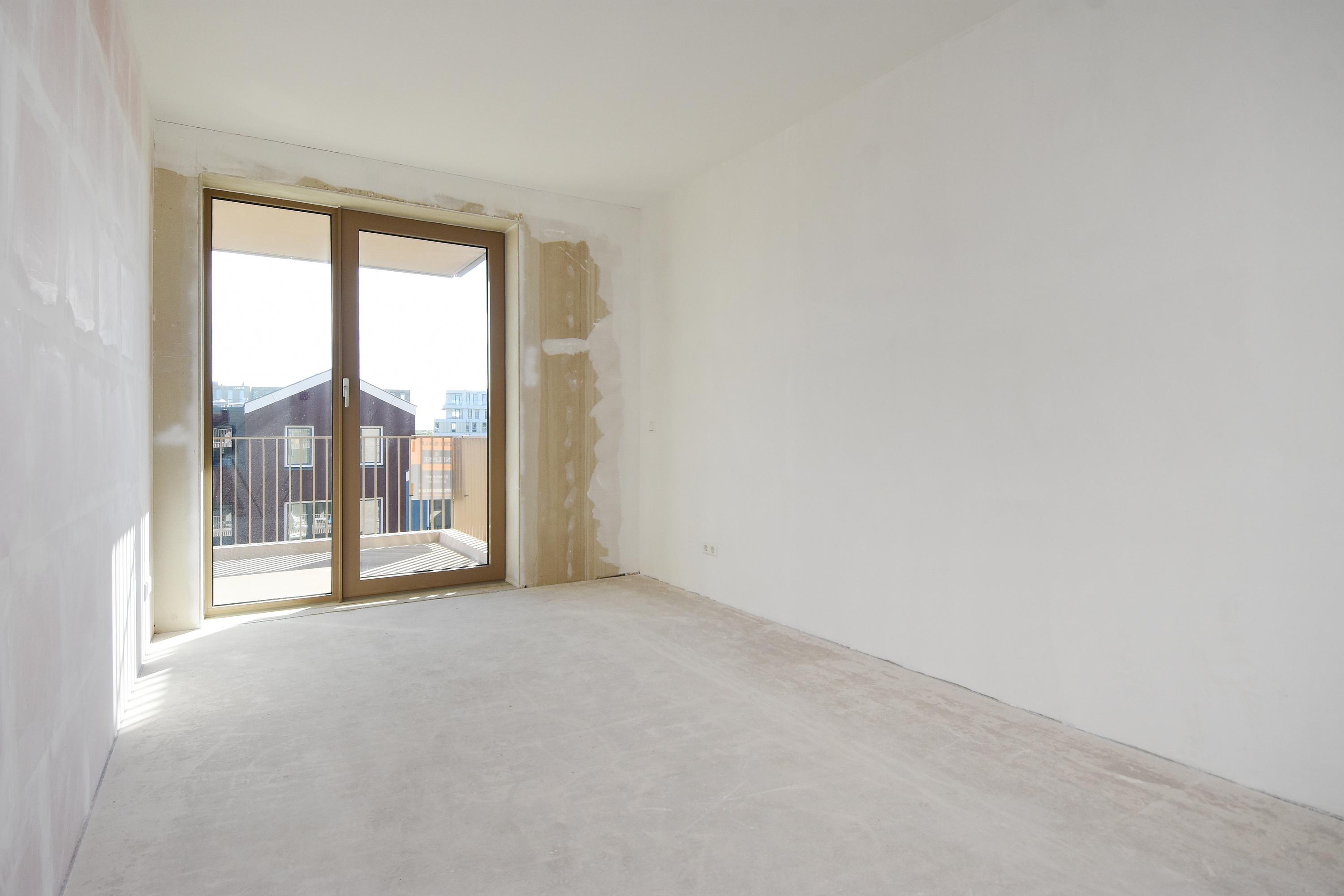 The open NEXT-125 kitchen, with a corner setup, is equipped with a composite countertop and built-in appliances: induction cooktop with integrated ventilation, dishwasher, fridge/freezer combination, Quooker, and combi oven. At the rear of the apartment, there are 2 bedrooms, both of which provide access to the spacious sun-drenched balcony on the south, overlooking the shared courtyard.