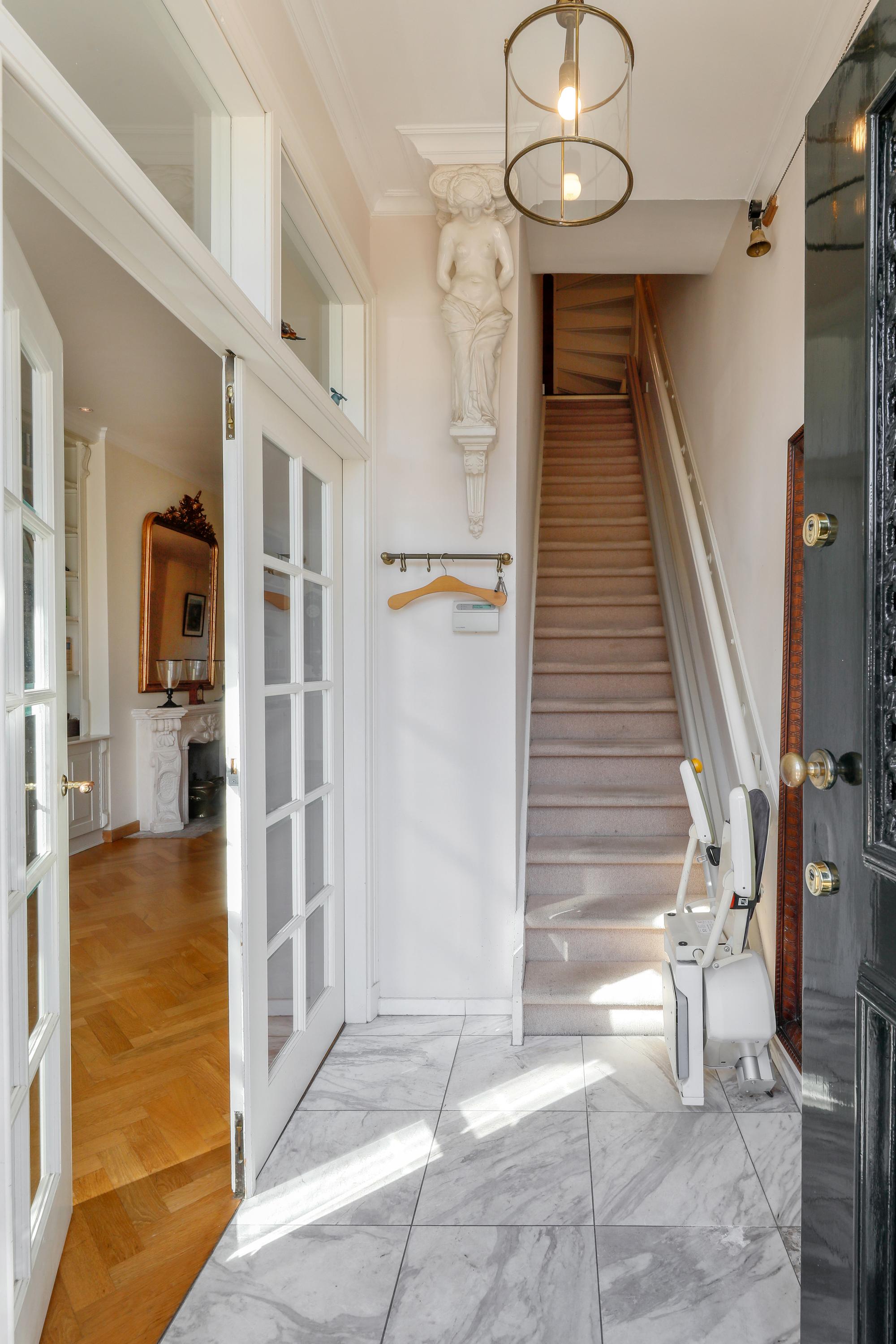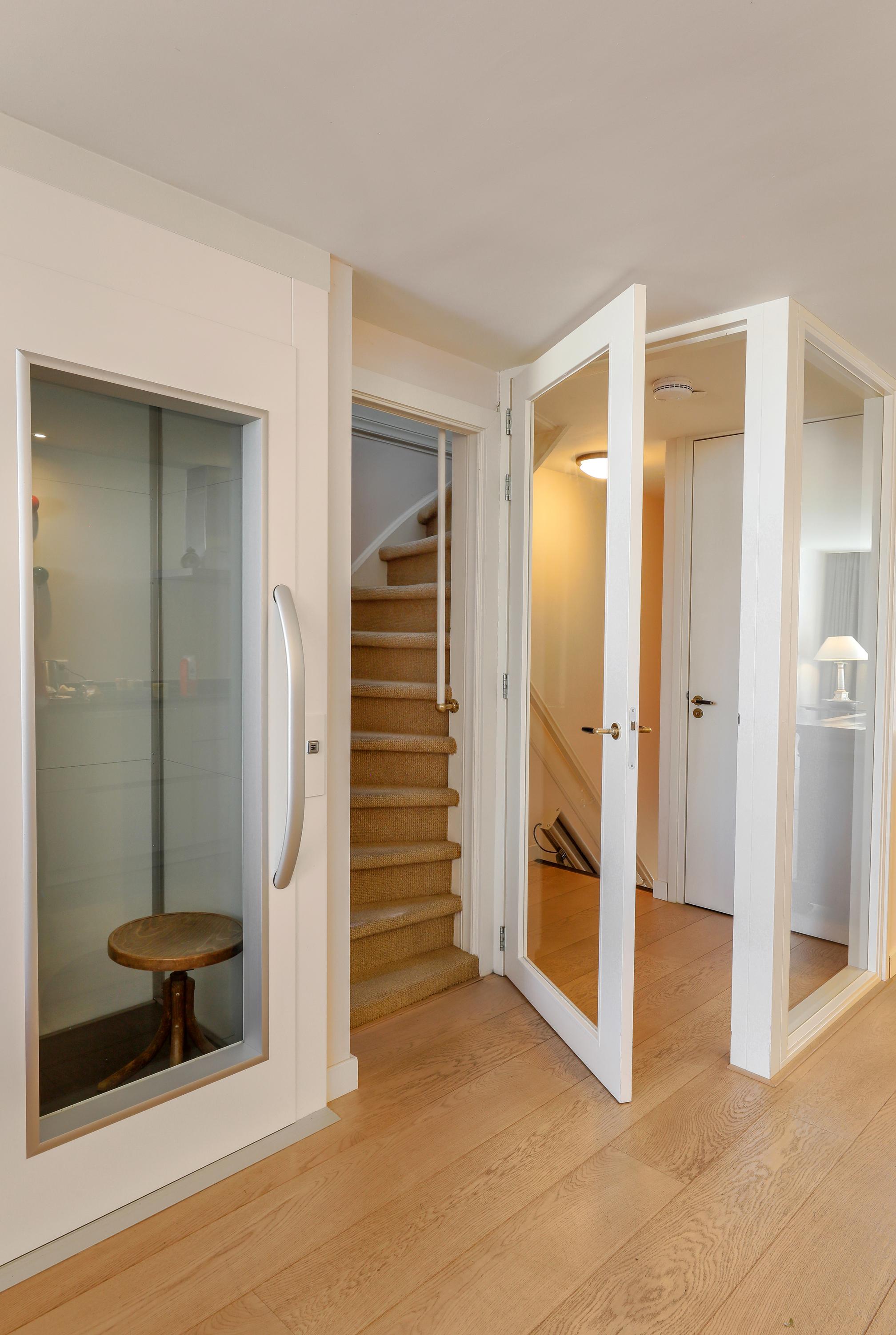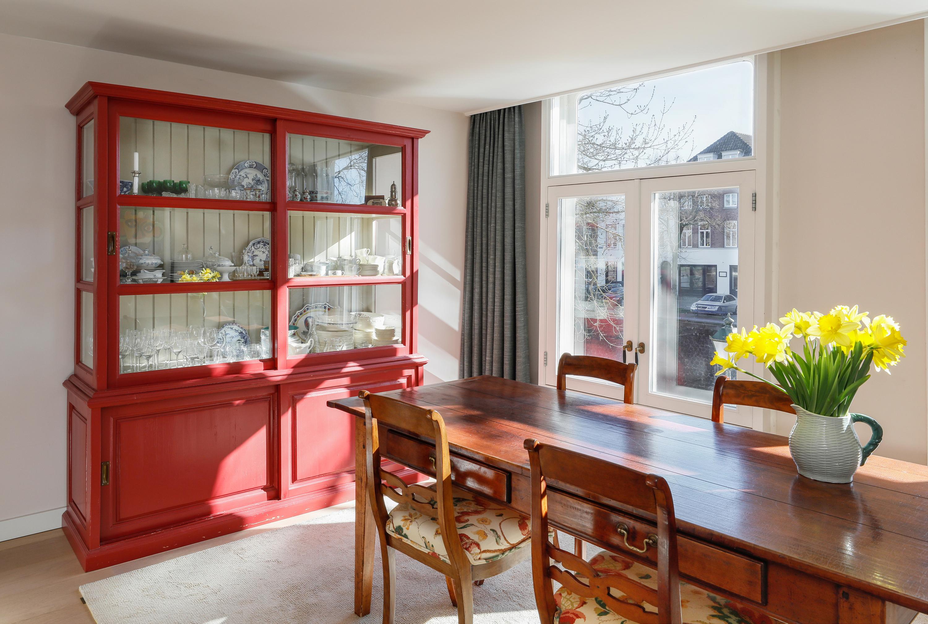 Live in one of the most beautiful locations in Den Bosch's city center, with water at both the front and back. This charming townhouse, dating from around 1670, features two living rooms, two roof terraces, a private garage, an elevator, and a beautiful view of the Brede Haven.