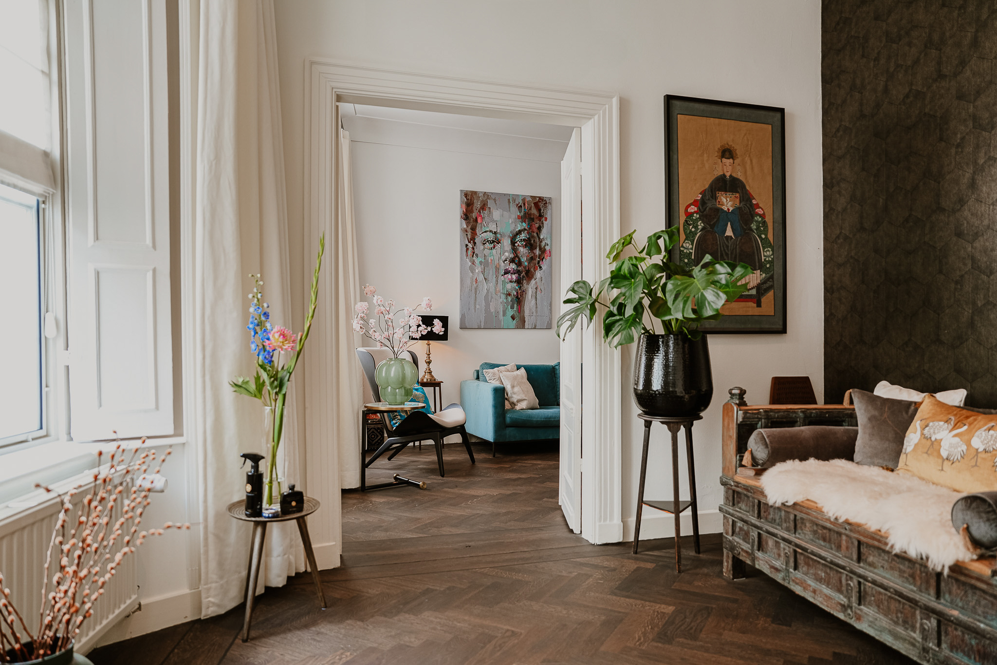 Only the truly wealthy could afford such a wide house at the time of its construction in 1820. Taxes were based on the width of your house. This width still creates a striking and stately home today, with all those tall windows ensuring a very bright living space. The symmetry of a central hallway and living on the first floor also makes for a very pleasant living experience. It's a proud property with no fewer than 10 rooms. So whether you're setting up your office here or occupying it entirely with a large family, it's always a perfect fit.