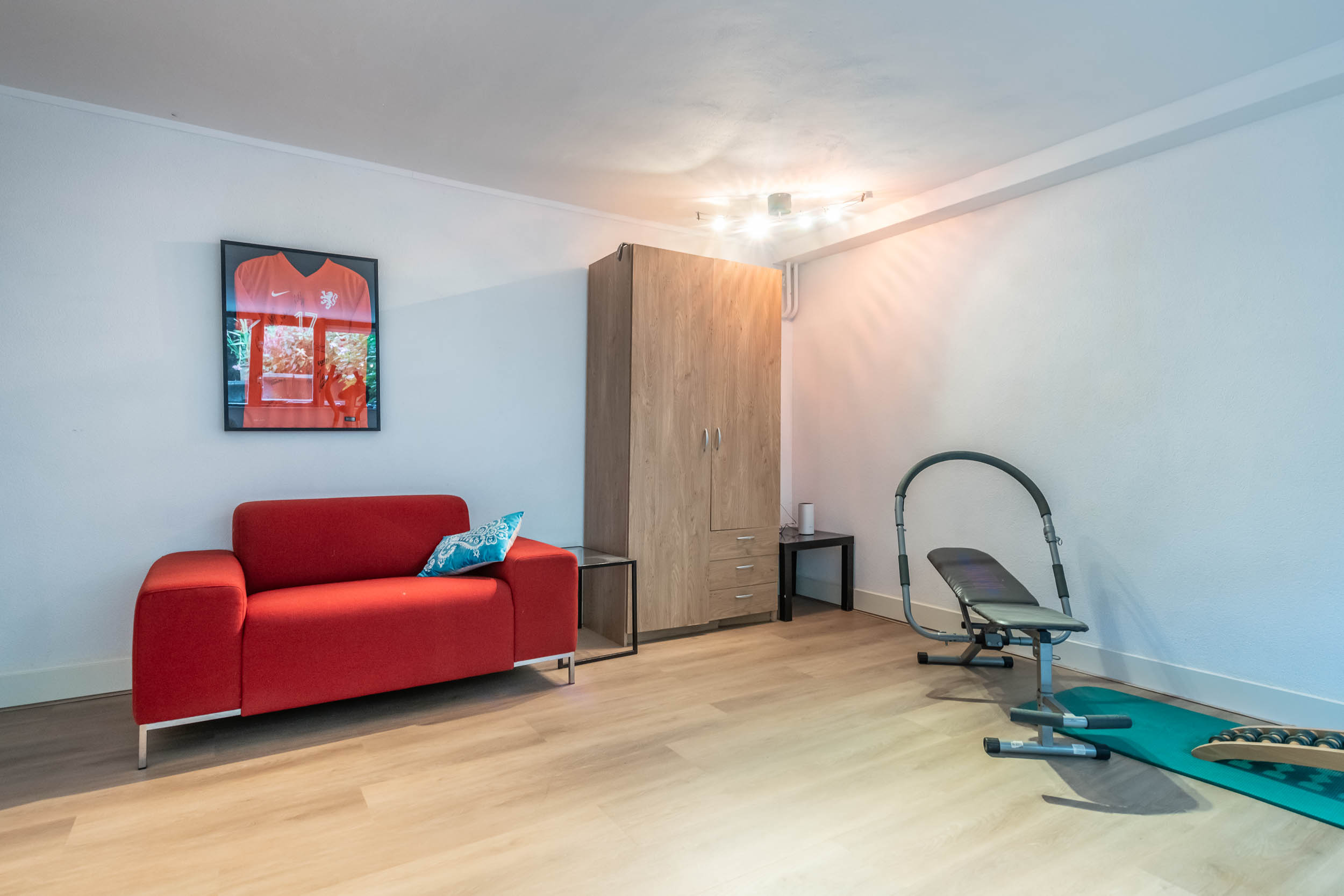 Hallway, indoor garage with cupboard wall, storage room, (bed)room, bathroom with shower, toilet and washbasin, spacious (fitness) room, large (play) room and a separate, spacious laundry room.