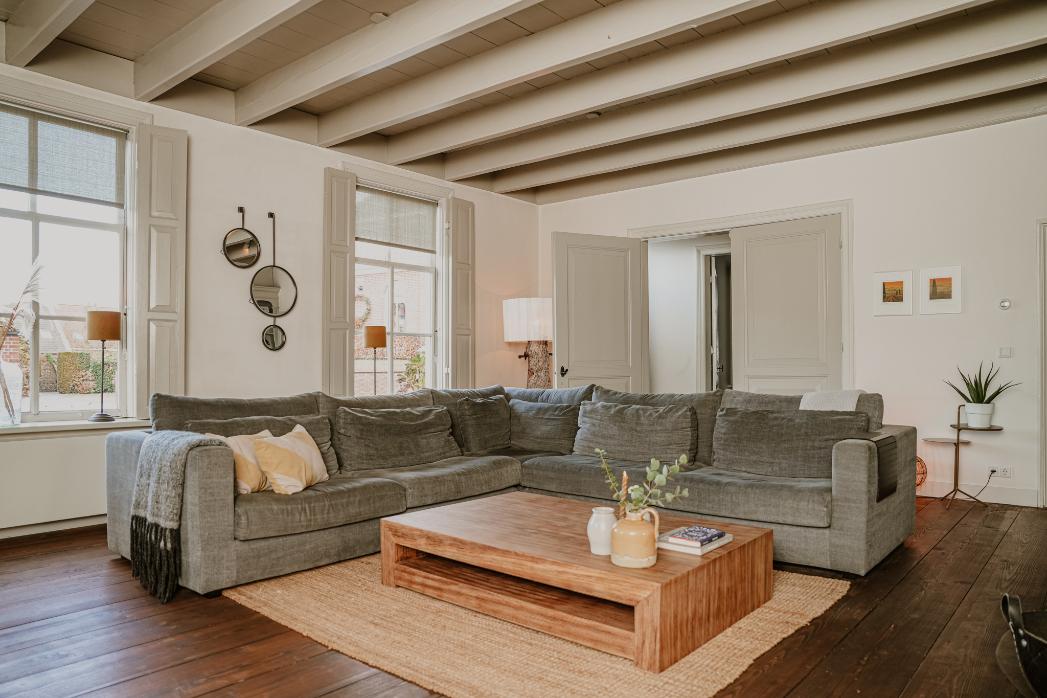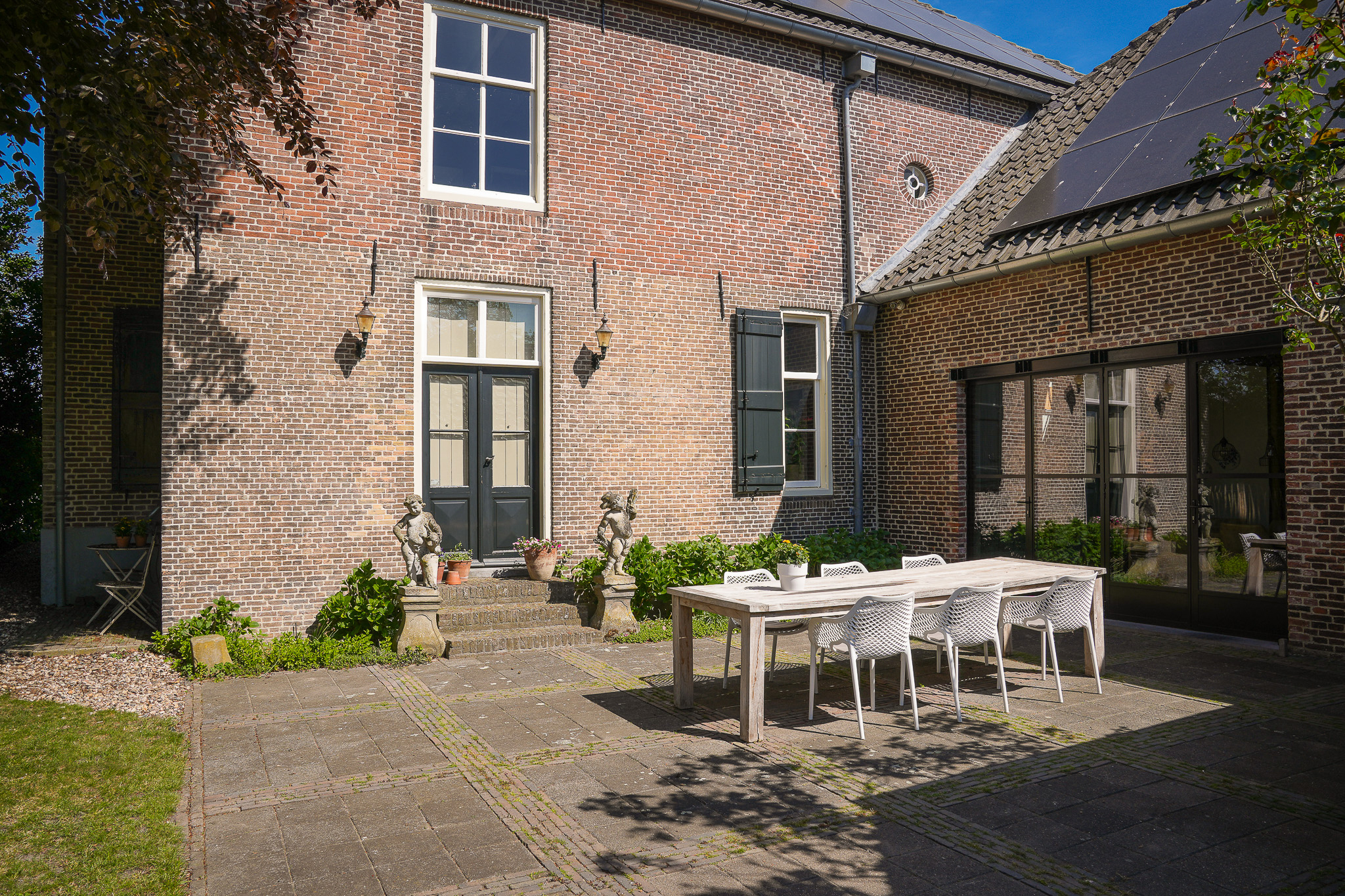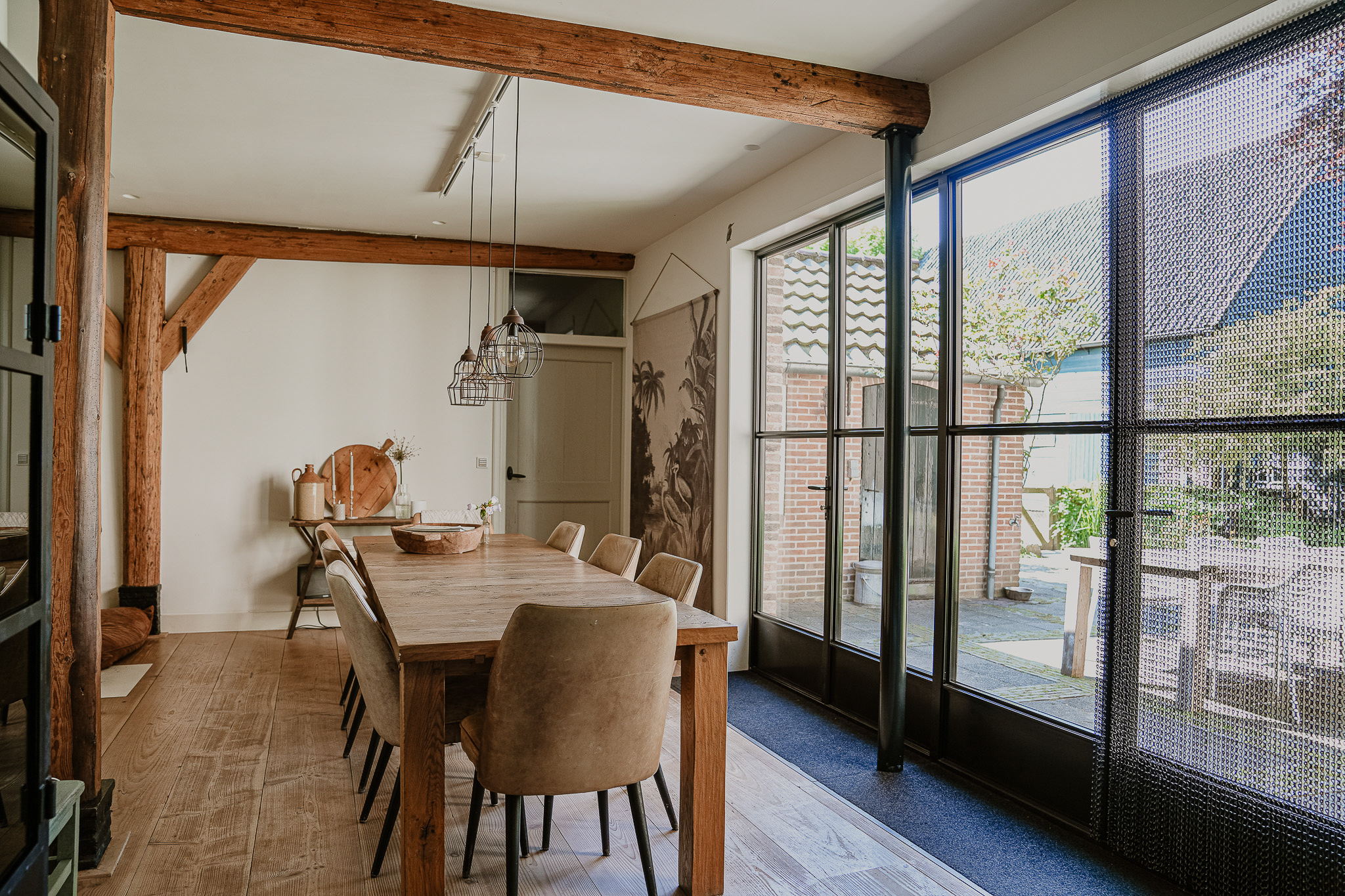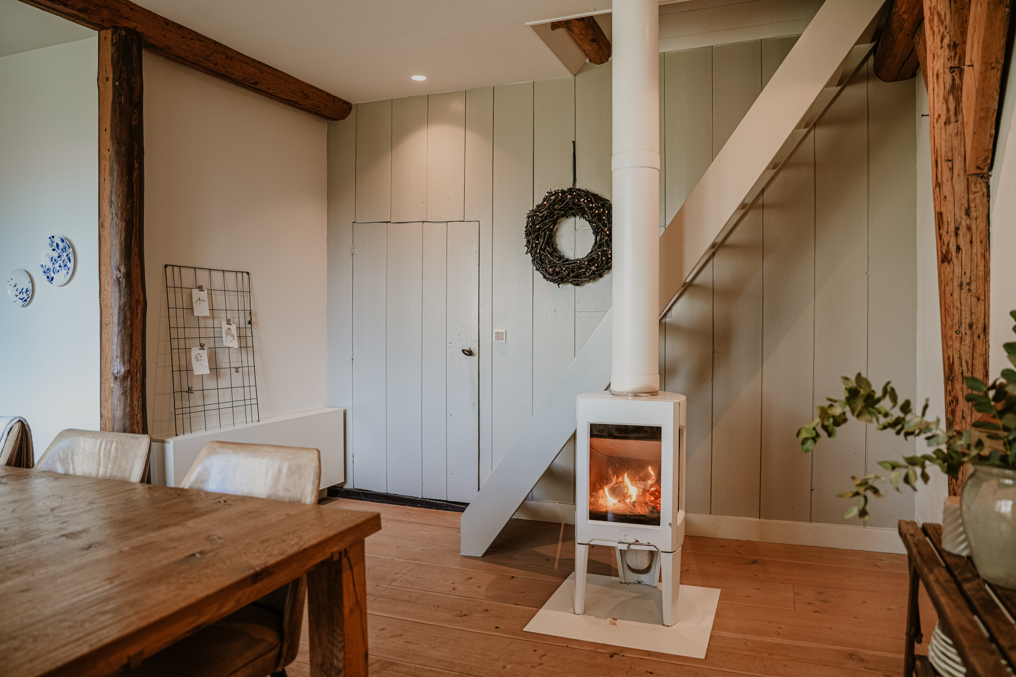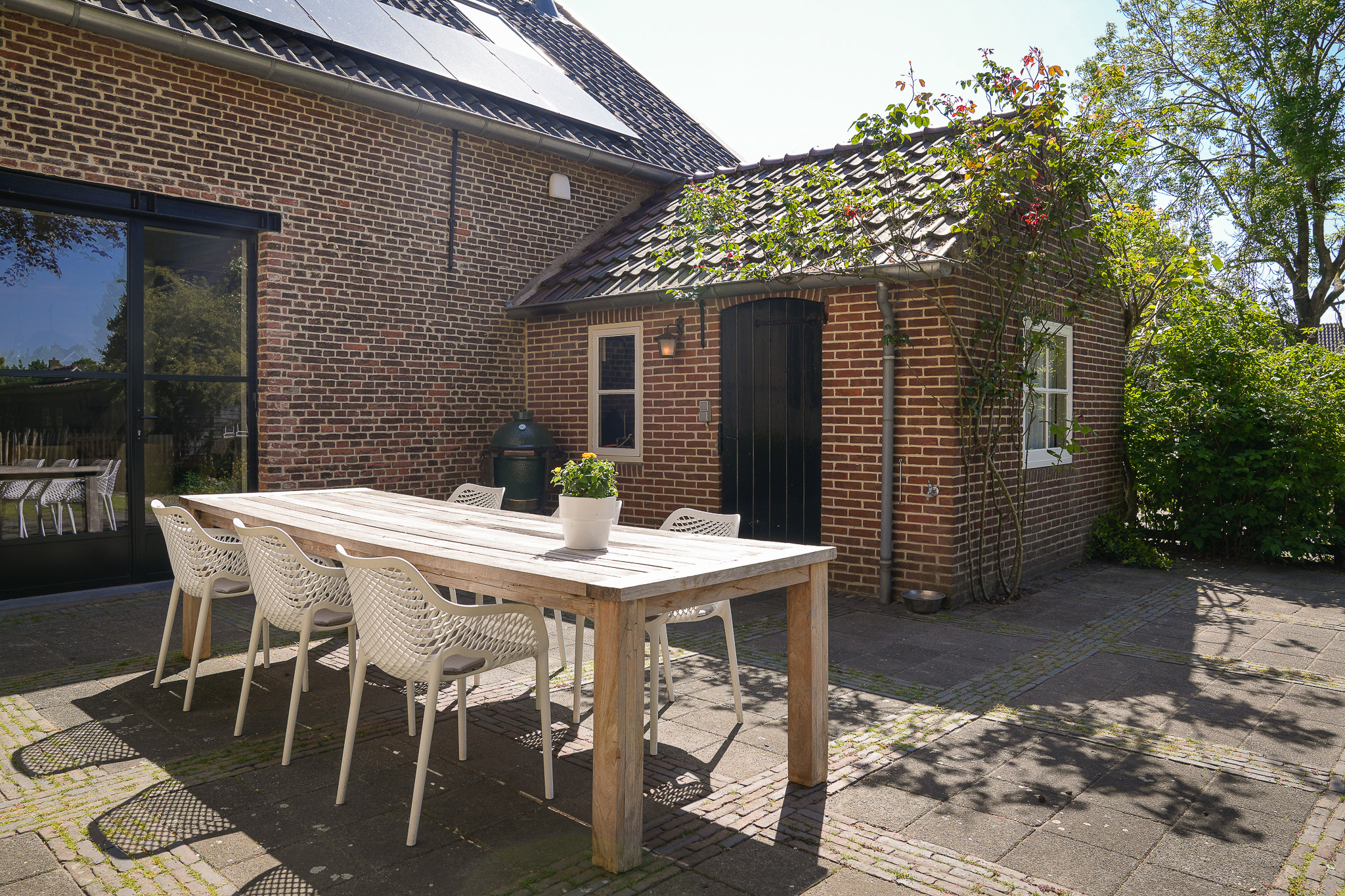 De locatie is ideaal; rust, ruimte en sfeer midden in het dorp. De huidige bewoners hebben na 15 jaar dan ook besloten slechts één deur op te schuiven en de naastgelegen schuur te transformeren tot hun nieuwe woonhuis.