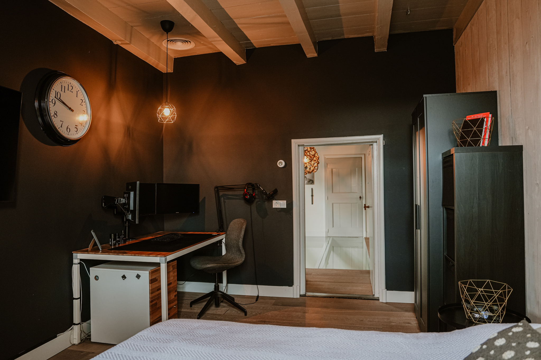Riante overloop, drie slaapkamers, garderobekamer, twee badkamers en een slaap-/sportkamer met sauna op de eerste verdieping.