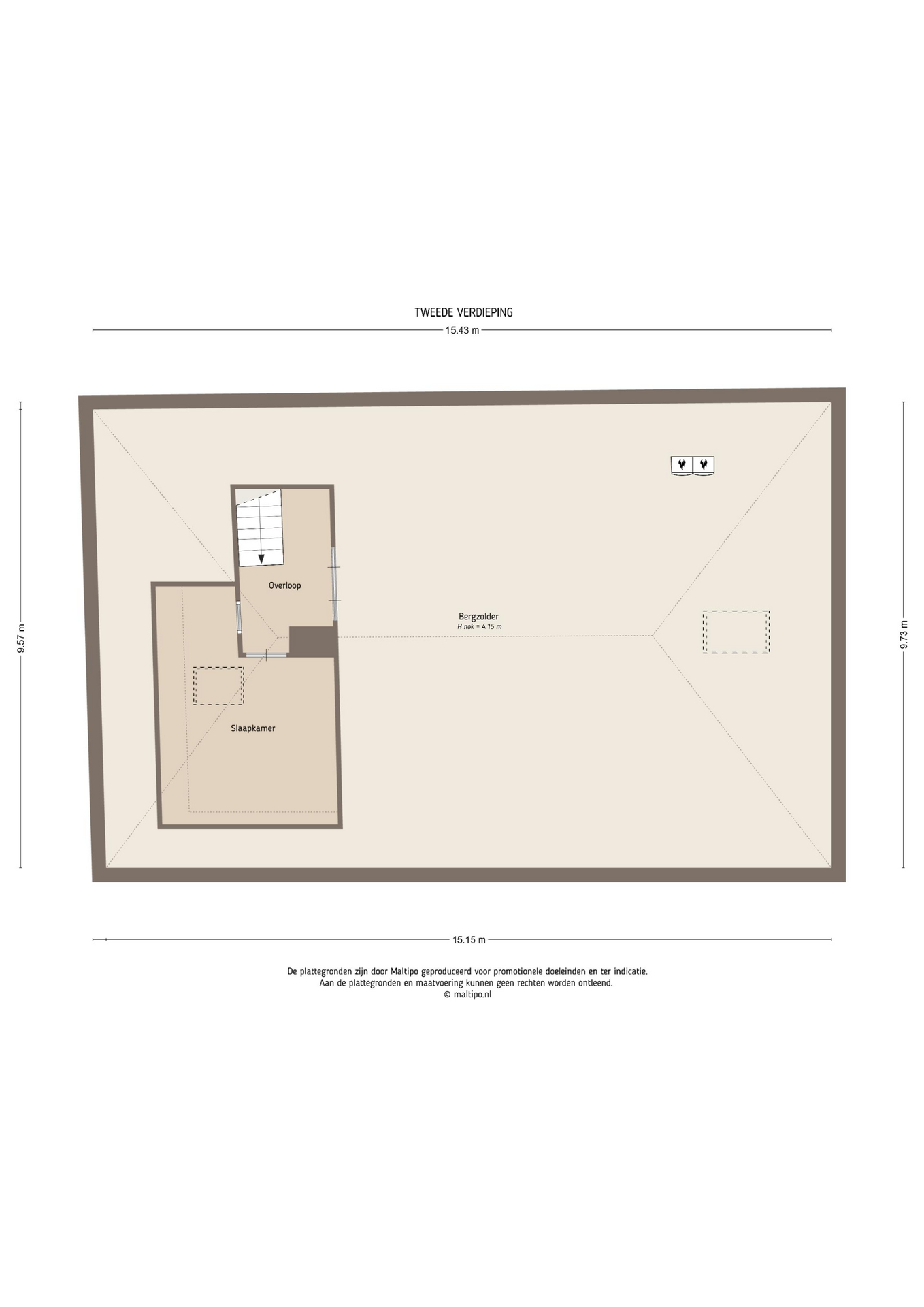 Logeerkamer en grote bergzolder op de tweede verdieping.