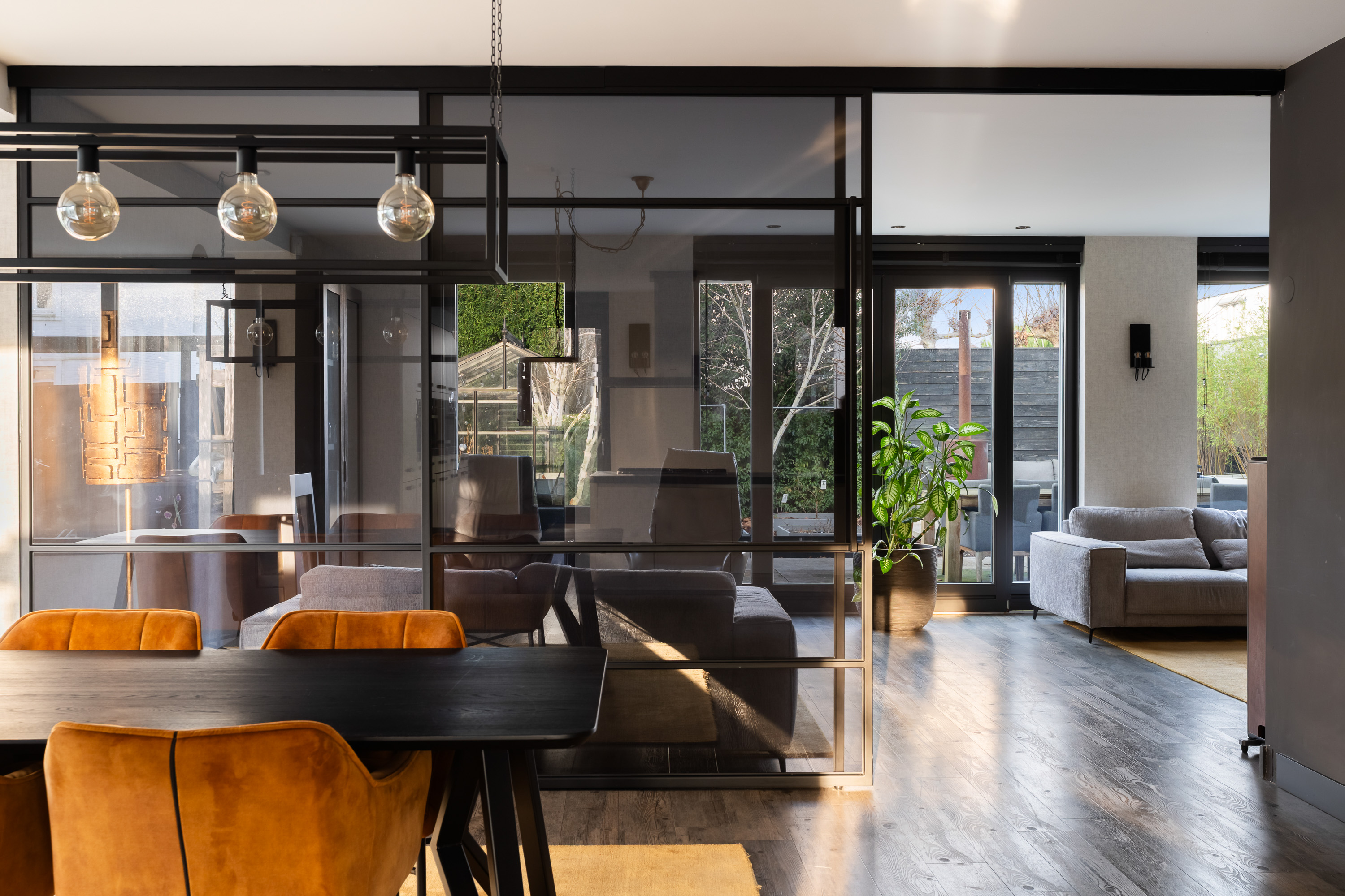 The generous driveway leads you to the entrance of this detached villa. Upon entering the hall, you immediately experience the sense of space, natural light and high-quality finish that characterise the property. The staircase to the first floor is also located here. From the hall, you have access to the various living areas on the ground floor.