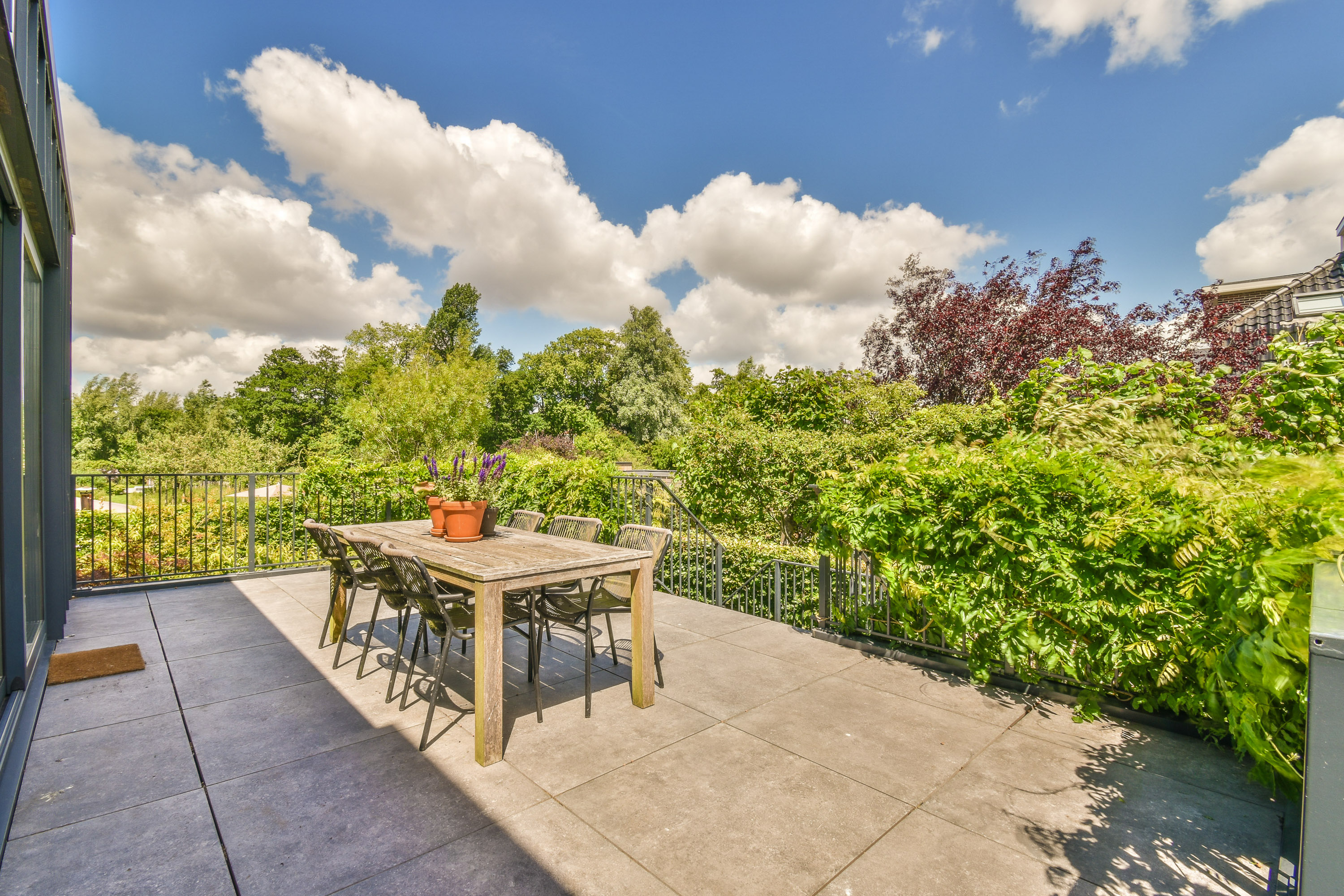 The classic semi-detached 1930s villa enjoys an open view of the Amstel River at the frond and offers a serene escape at the rear, with a sunny garden and terrace overlooking the farmlands. The house is situated on a generous plot of 2,415m². The beautifully landscaped backyard approximately 87 metres deep and about 23 metres wide. It features three terraces and a swimming pool, offering an ideal setting to enjoy the sun from early spring onwards in complete privacy and comfort.