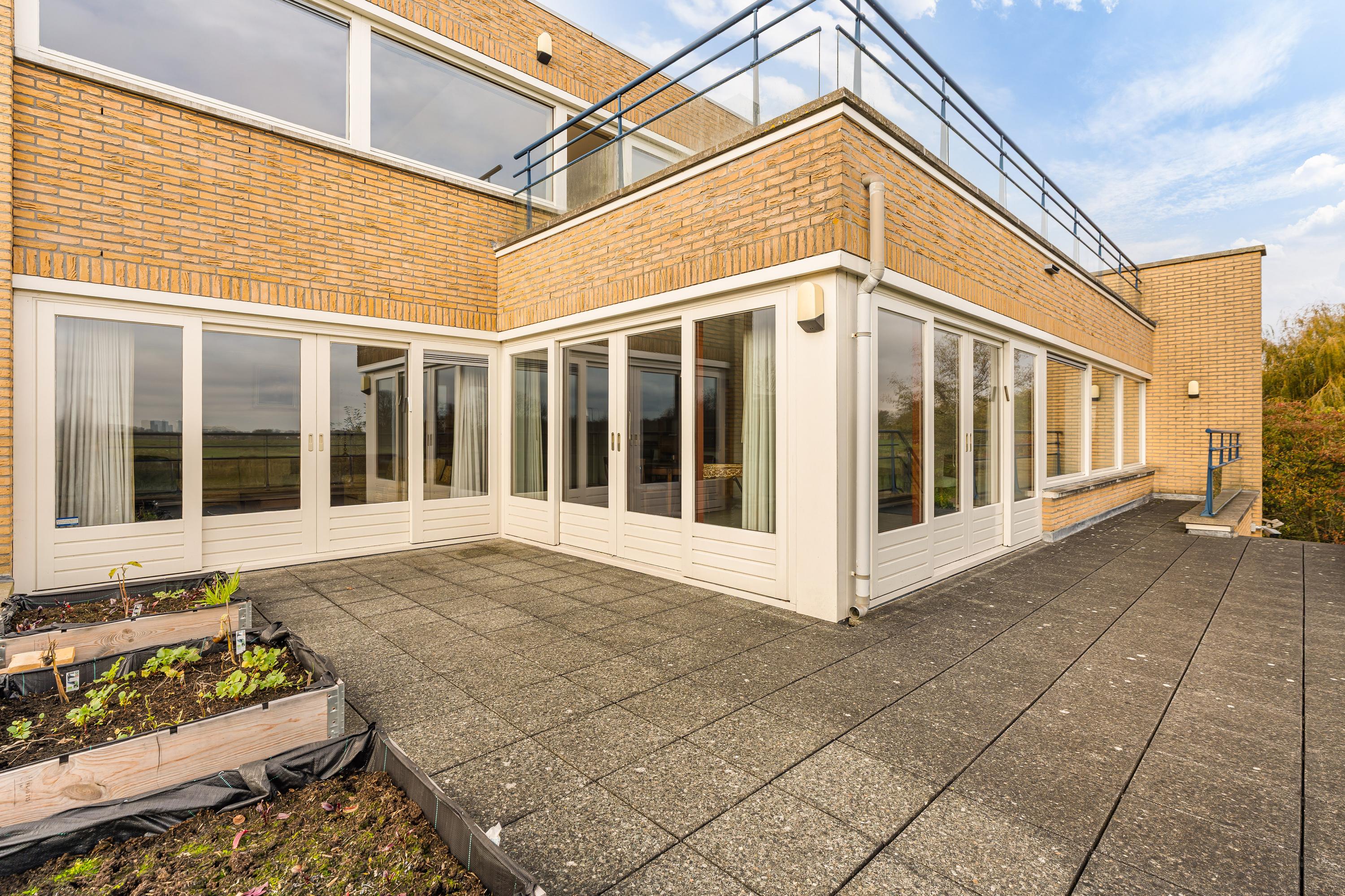 The villa features multiple terraces across various levels, including two exceptionally large rooftop terraces with unobstructed views over the Middelpolder. The surrounding garden is mature, carefully landscaped and offers optimal privacy thanks to the unique location on the edge of the open landscape. Finally, the property includes a detached garage with space for two cars.
