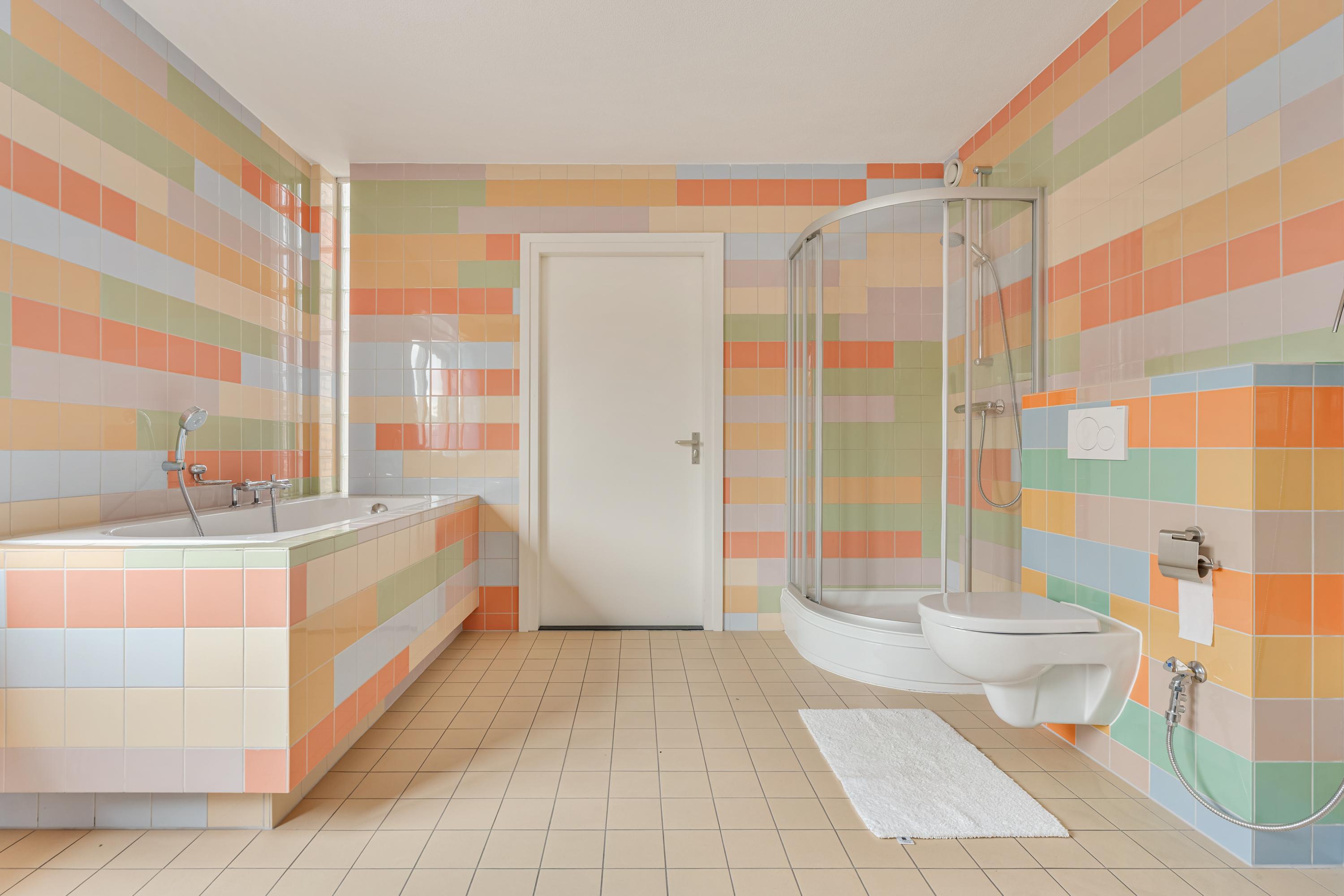 This floor also includes a large bedroom with an en-suite bathroom fitted with a bathtub, shower, toilet and double washbasin. Additionally, there are two separate toilets and a practical storage room.