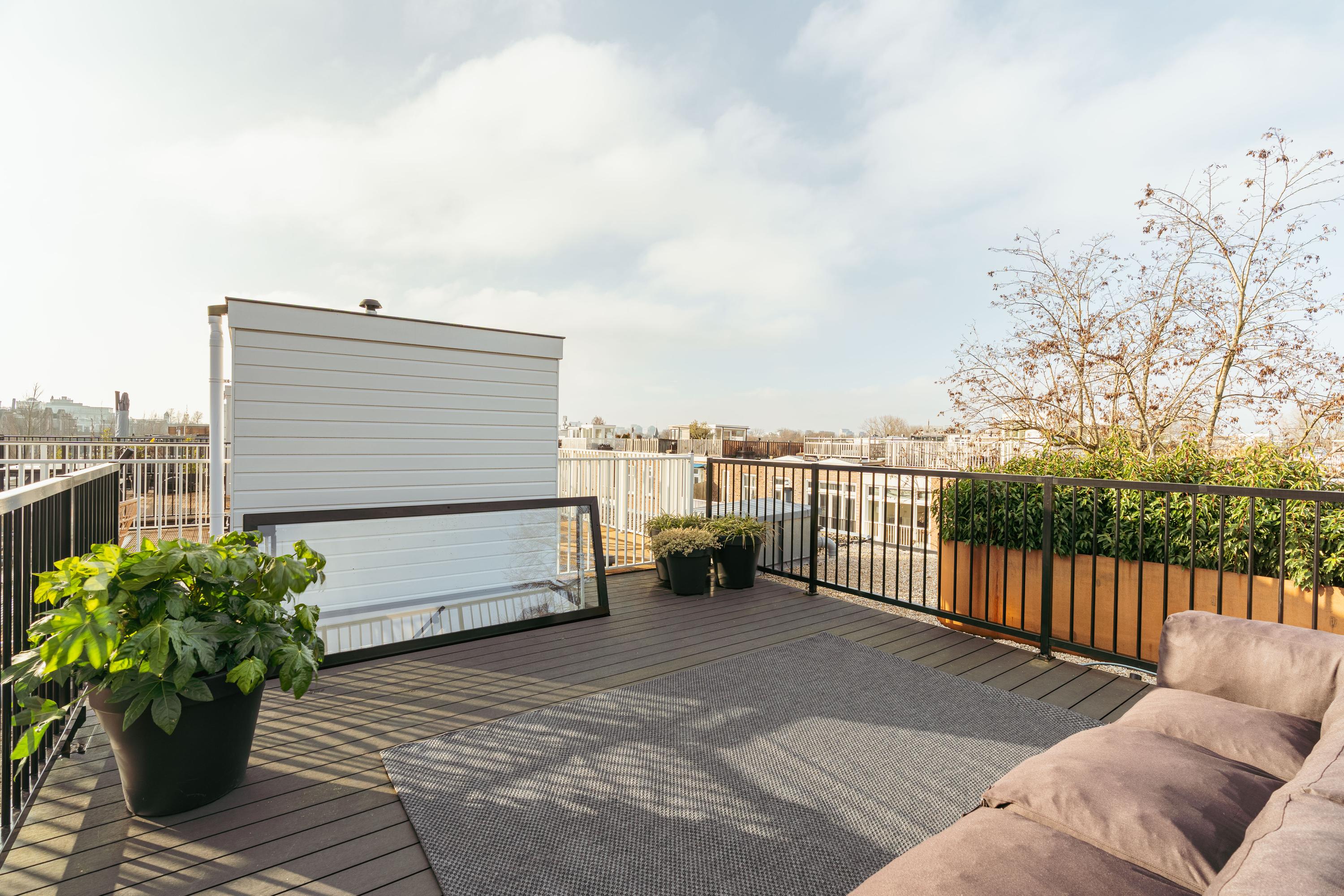 The property is further complemented by a stunning roof terrace. This spacious and sleekly designed terrace enjoys sunshine throughout the day and offers beautiful views over the rooftops of Amsterdam-Zuid. This luxurious and high-end double upper apartment presents a rare combination of space, comfort and refined finishes in one of the most desirable locations in the city.