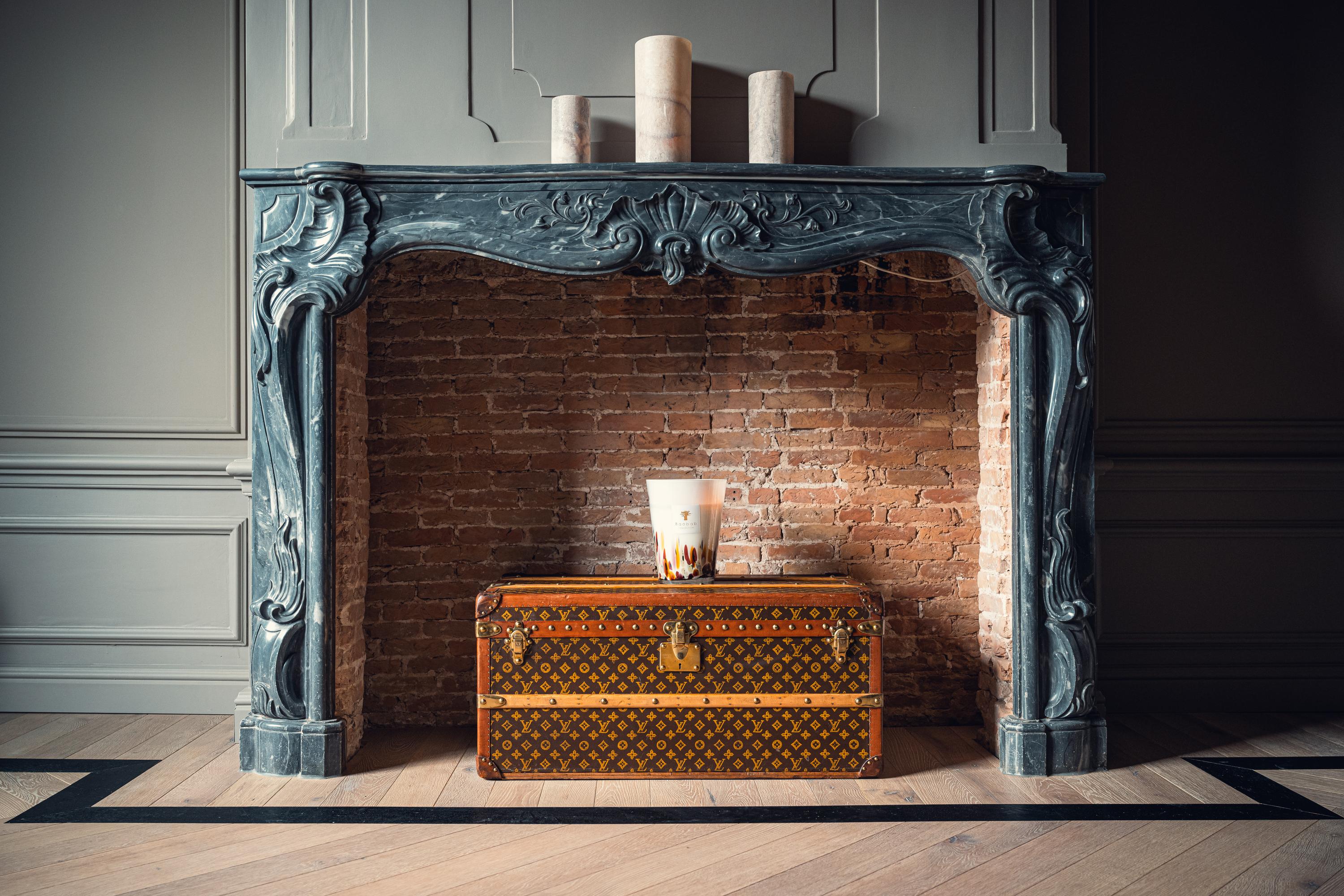 The spacious living room is a true showpiece. The classical stucco, decorative ceiling details, and an elegant ceiling rose give the room extra allure and warmth. At the center stands the (monumental) marble fireplace with open hearth, forming a stylish combination with the sleek, contemporary interior. The herringbone wooden floor with dark inlay emphasizes the length of the room and ties in beautifully with the refined wall finishes.