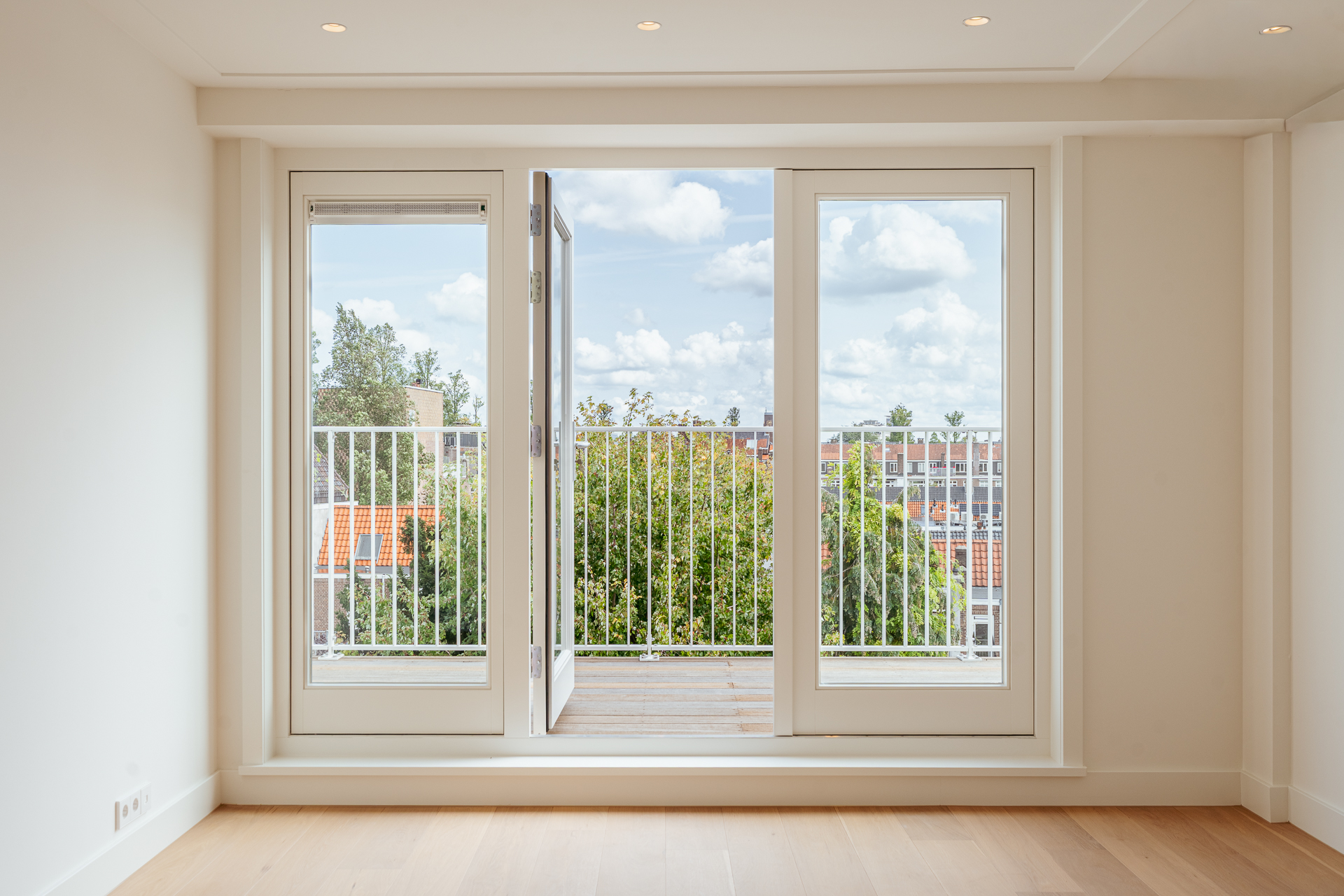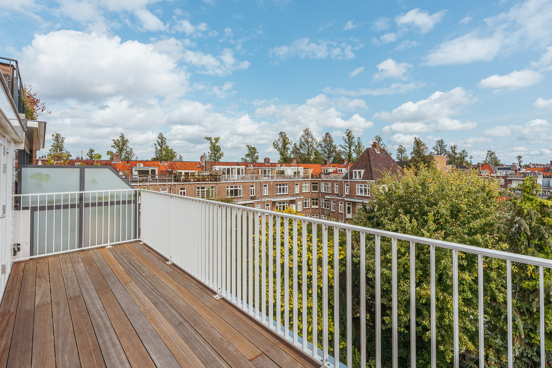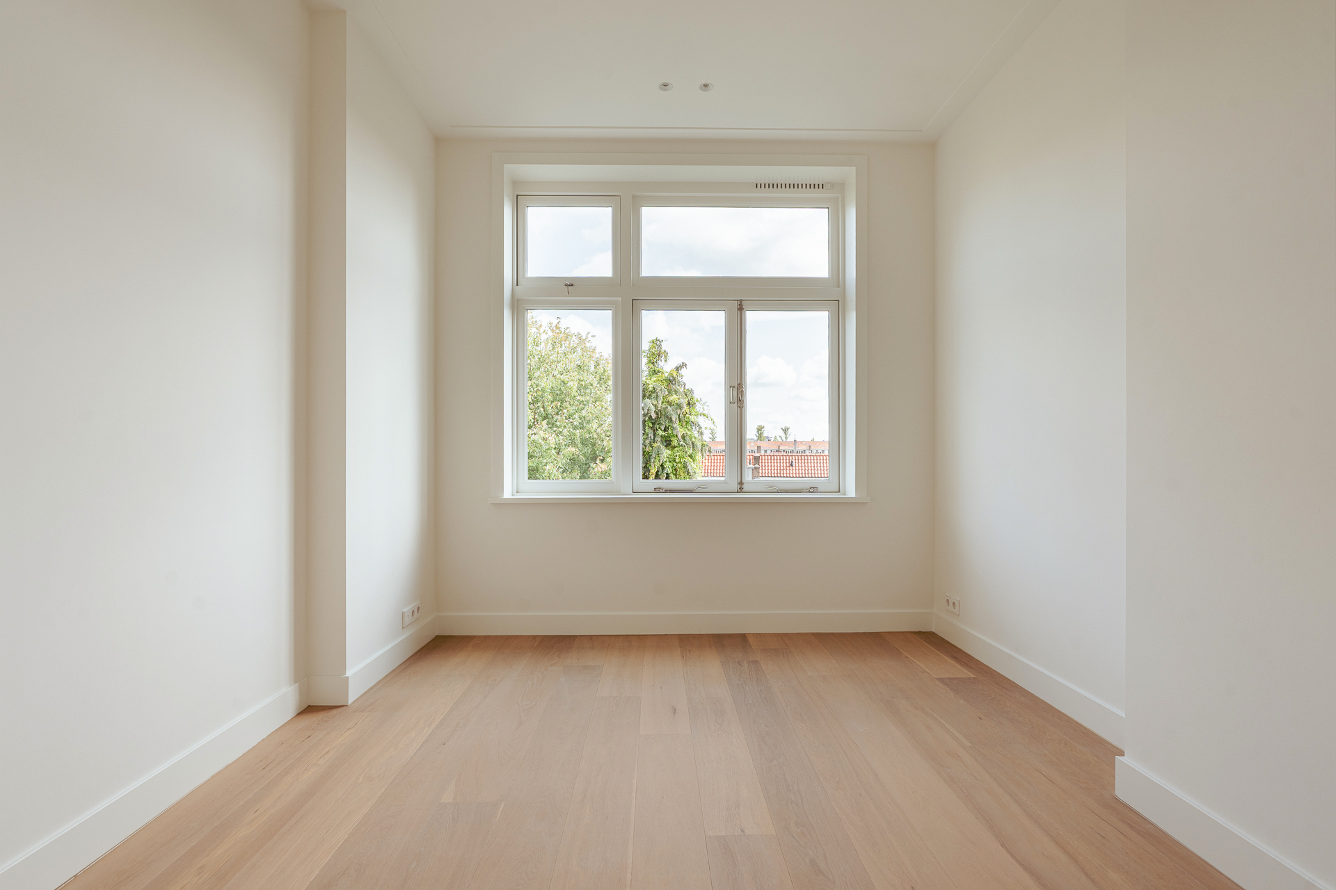 On the third floor lies the heart of the home. From the spacious hallway, with a practical built-in wardrobe and separate WC, you enter the bright and expansive living room with open-plan kitchen. This room extends across the full width of the property (over 7 metres) and, with large windows on both sides, is flooded with natural light and offers wonderful, unobstructed views over Olympiaplein.