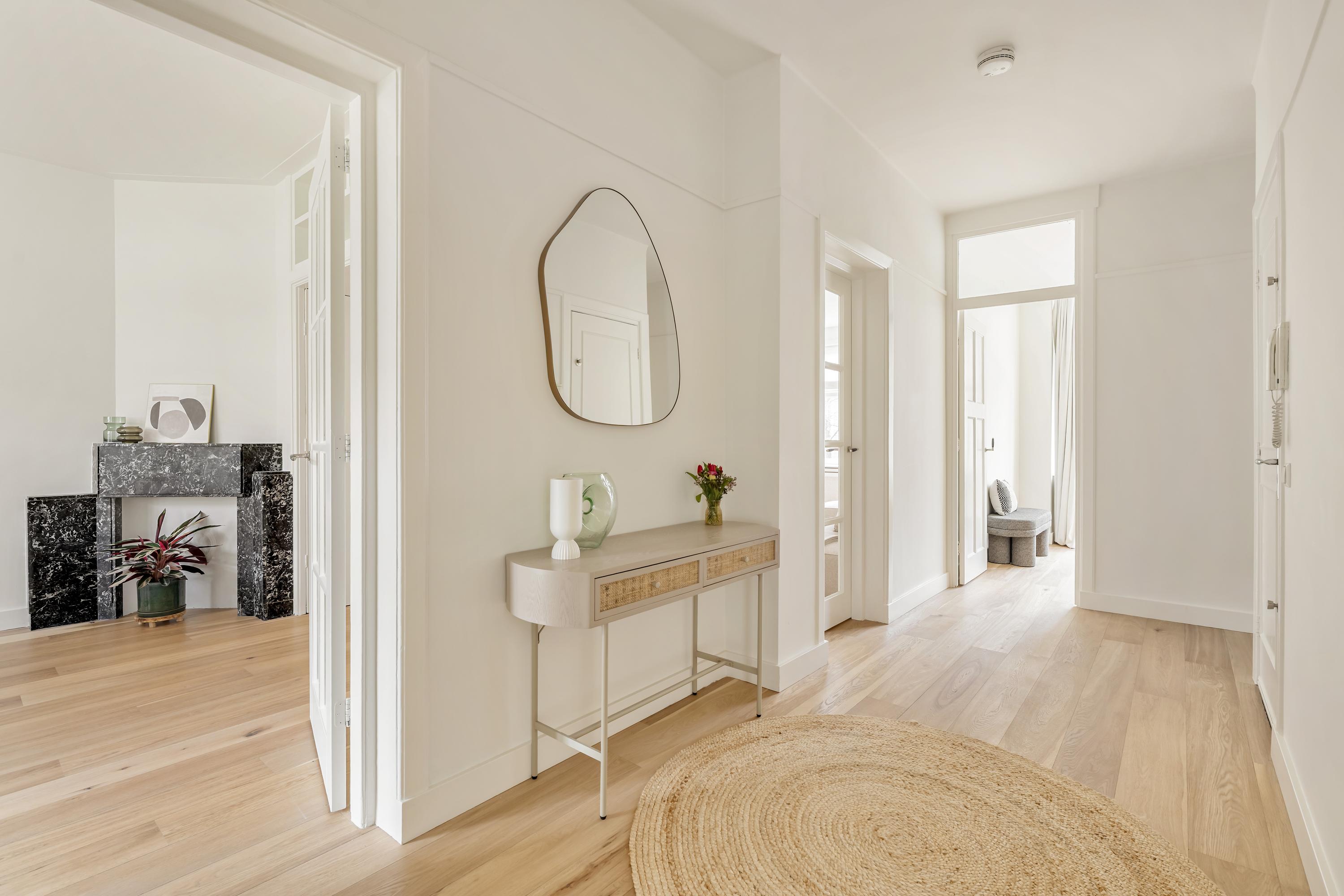 Apartment Amsterdam Zuid brings together period charm and contemporary comfort in a coveted Amsterdam-Zuid address. This residence spans approximately 112 m², offering three well-proportioned bedrooms and a spacious living area infused with character. The apartment’s heritage features, including original sliding doors, custom cabinetry, and iconic bay windows, are complemented by thoughtful renovations such as floor insulation and double glazing.