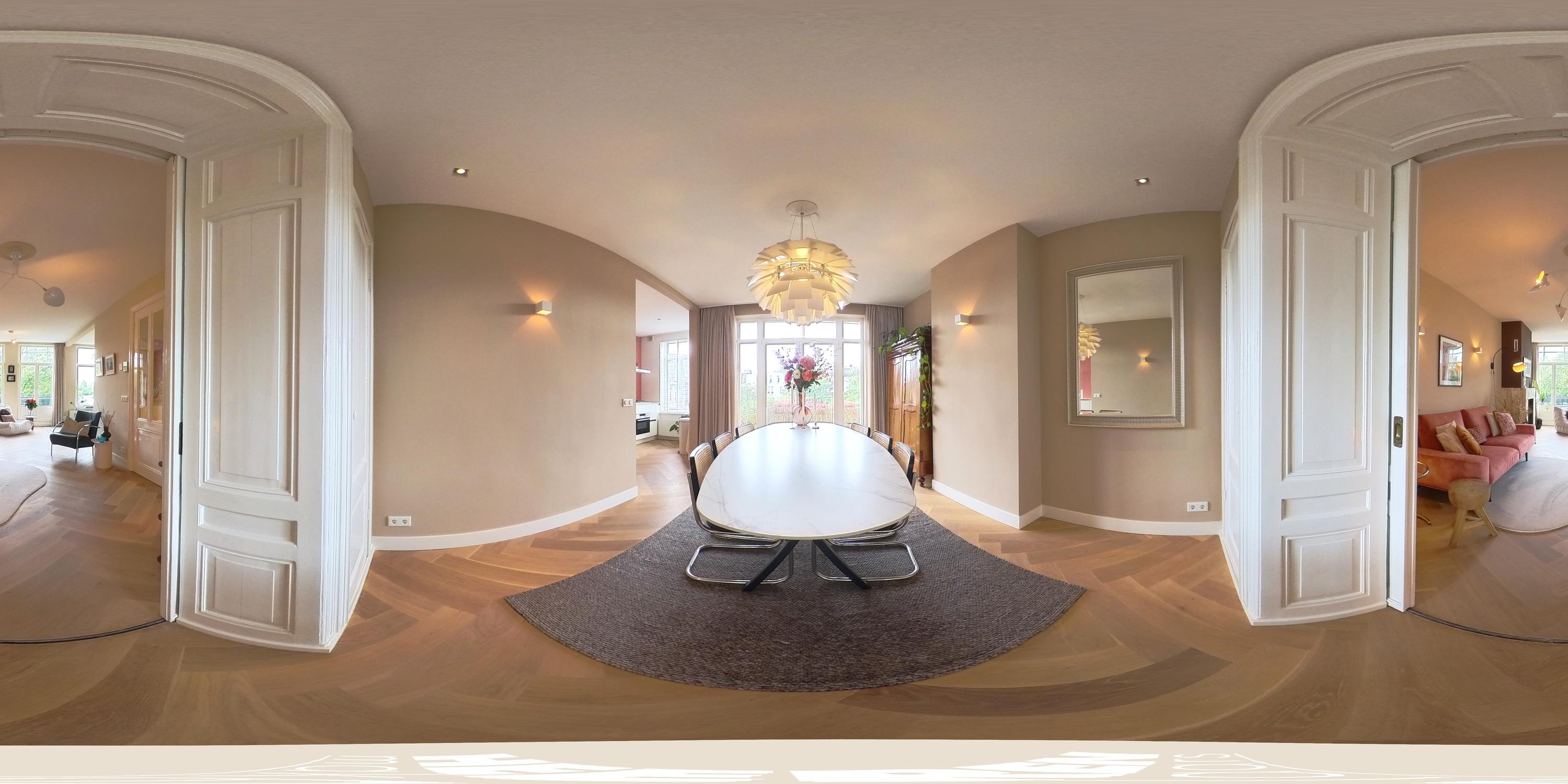 The third floor is the heart of the home and features an exceptionally bright living space with unobstructed views of Artis and the surrounding greenery. A truly unique experience: you can regularly hear the sounds of sea lions, monkeys, and even wolves in the evening, adding a remarkable atmosphere to city living.