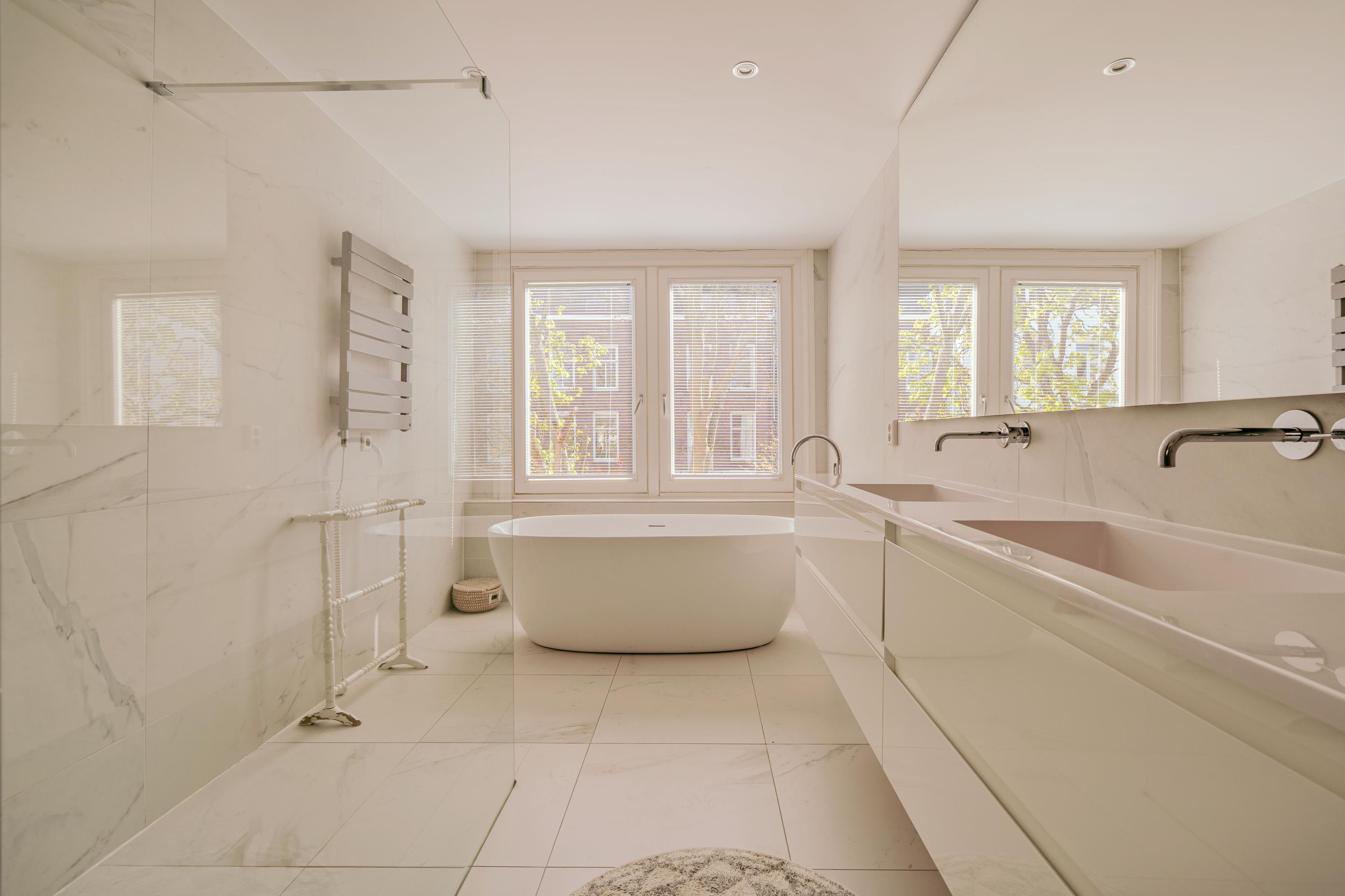 Extremely charming, bright, and spacious apartment (approx. 223 m²) spread over three floors plus a generous rooftop terrace! This expansive apartment is located on one of the most prestigious streets in De Pijp and features high ceilings, a large living room and kitchen equipped with luxury built-in appliances, four bedrooms, two balconies, a walk-in wardrobe, and a home office! The rooftop terrace (approx. 23 m²) is the perfect spot to enjoy the sun until late in the evening and offers stunning views over both the city and the Amstel River. Furthermore, the property is located on freehold land, so no ground lease applies.