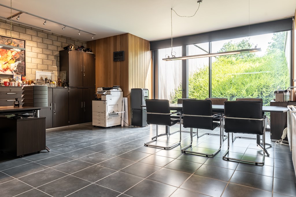 De onder architectuur aangelegde en geheel omsloten parkachtige tuin heeft ontzettend veel fijne plekjes waar u heerlijk van het buitenleven kunt genieten. Vanaf het grote terras met overkapping heeft u een mooi uitzicht over de grote vijver met fontein en loopbrug.