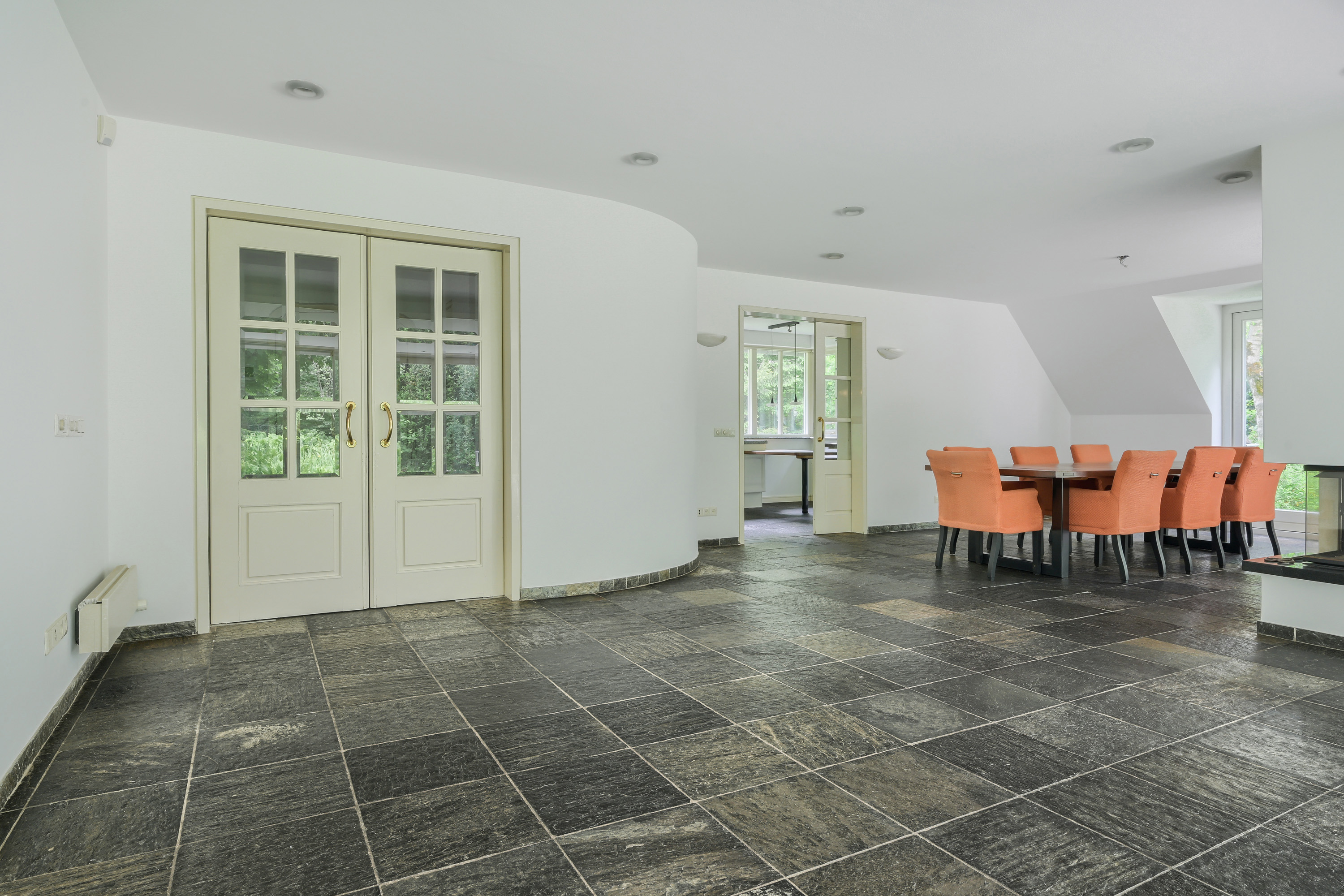Located on a unique and expansive woodland plot on the edge of Baarle-Nassau, this characterful and multifunctional residence is surrounded by a lush, park-like forest garden and several high-quality outbuildings.