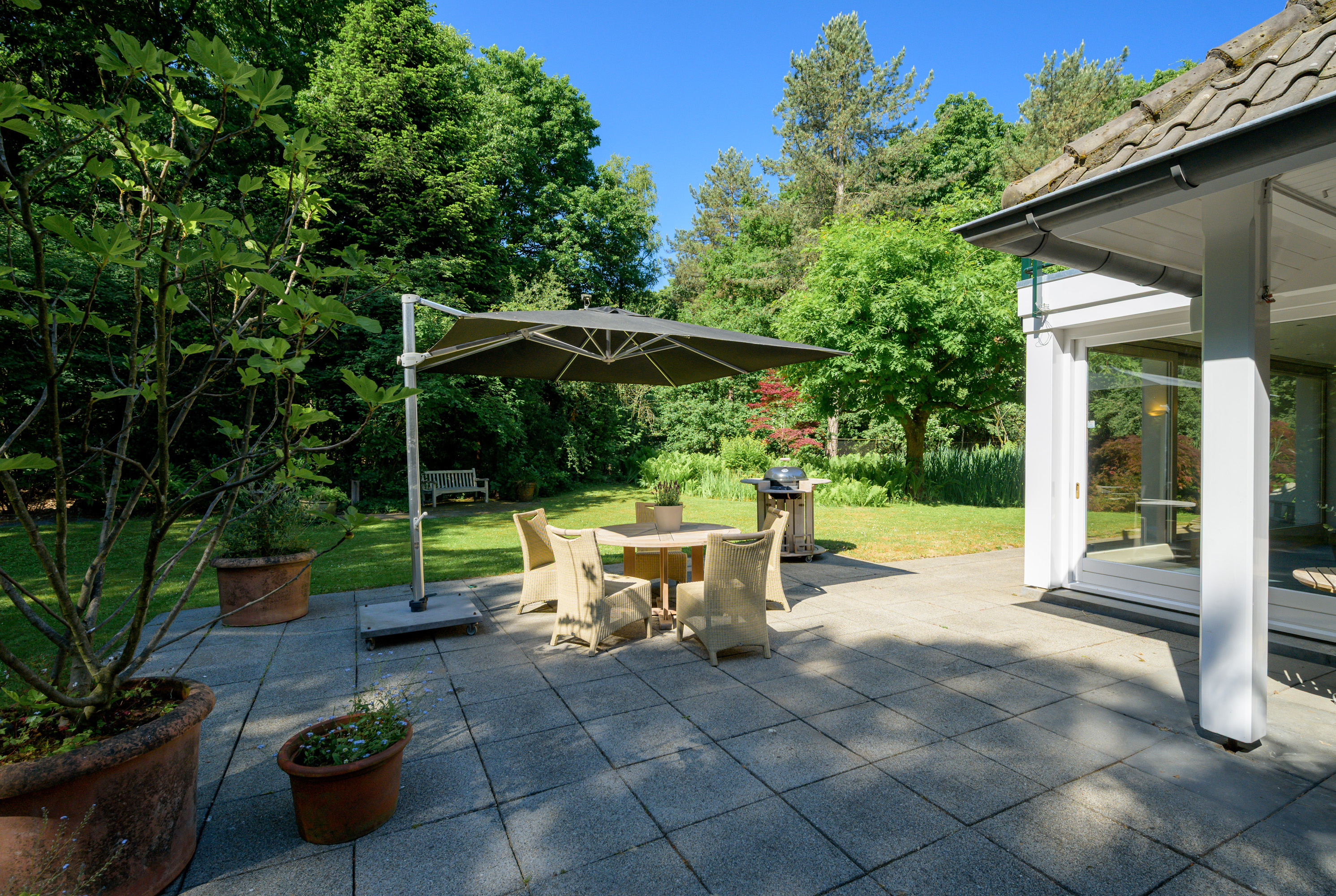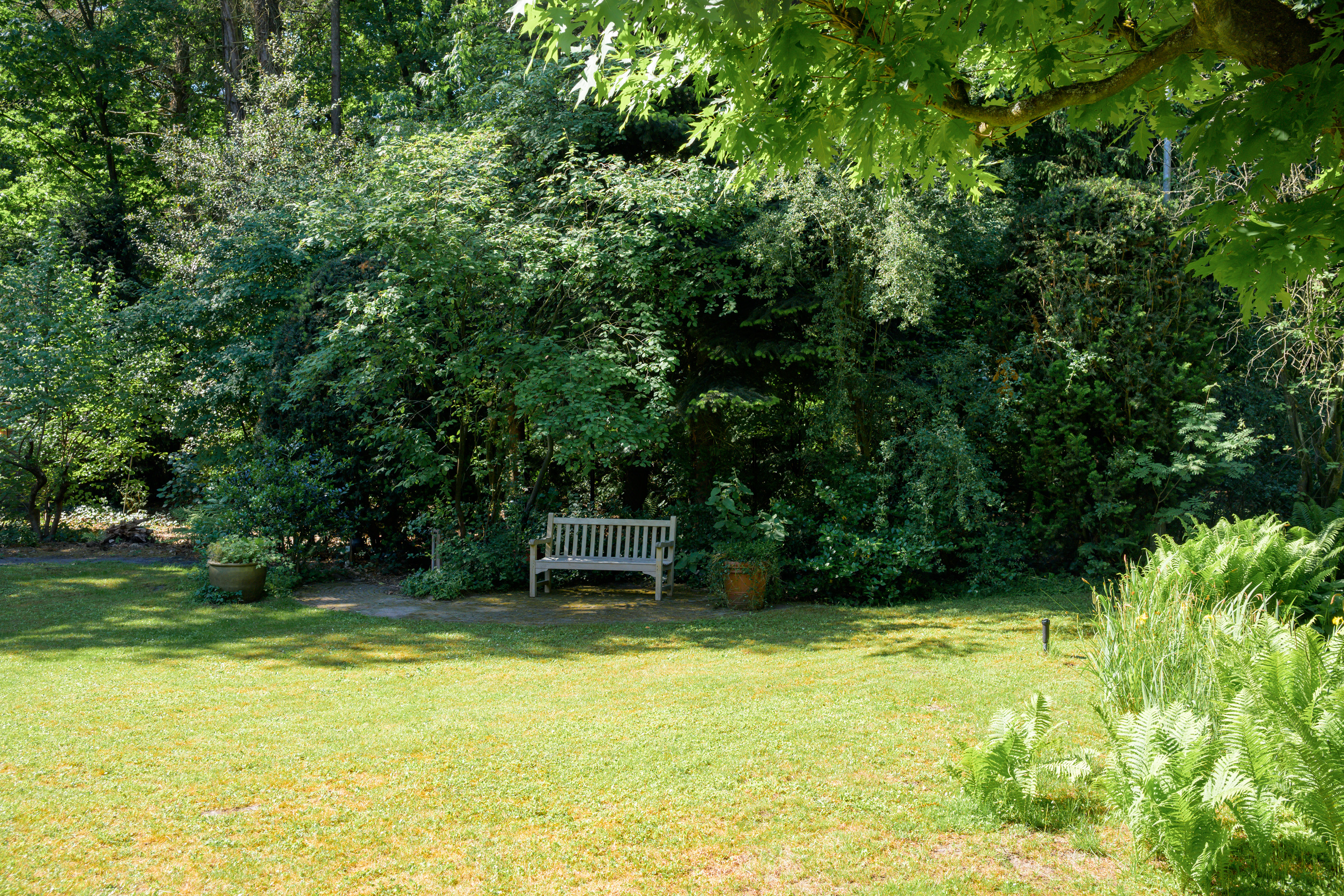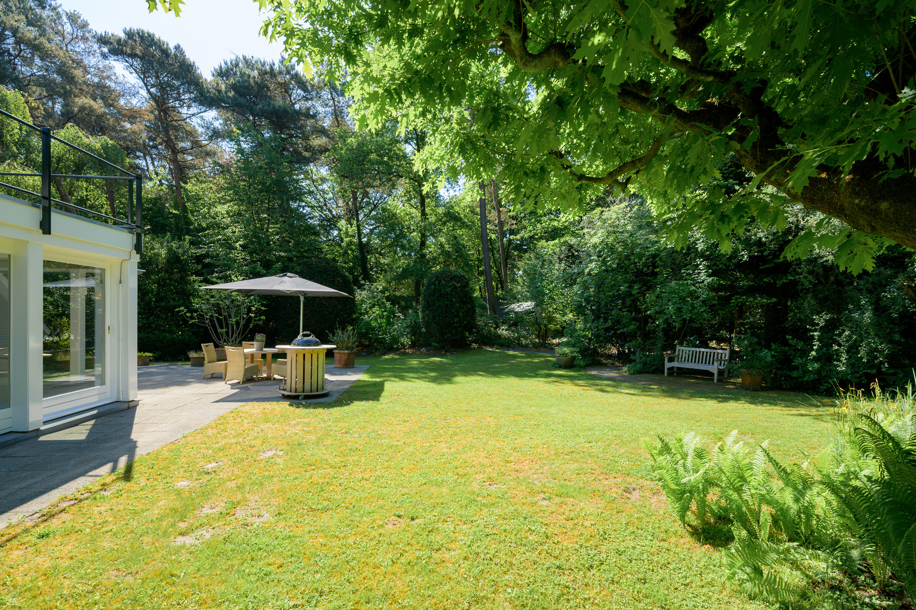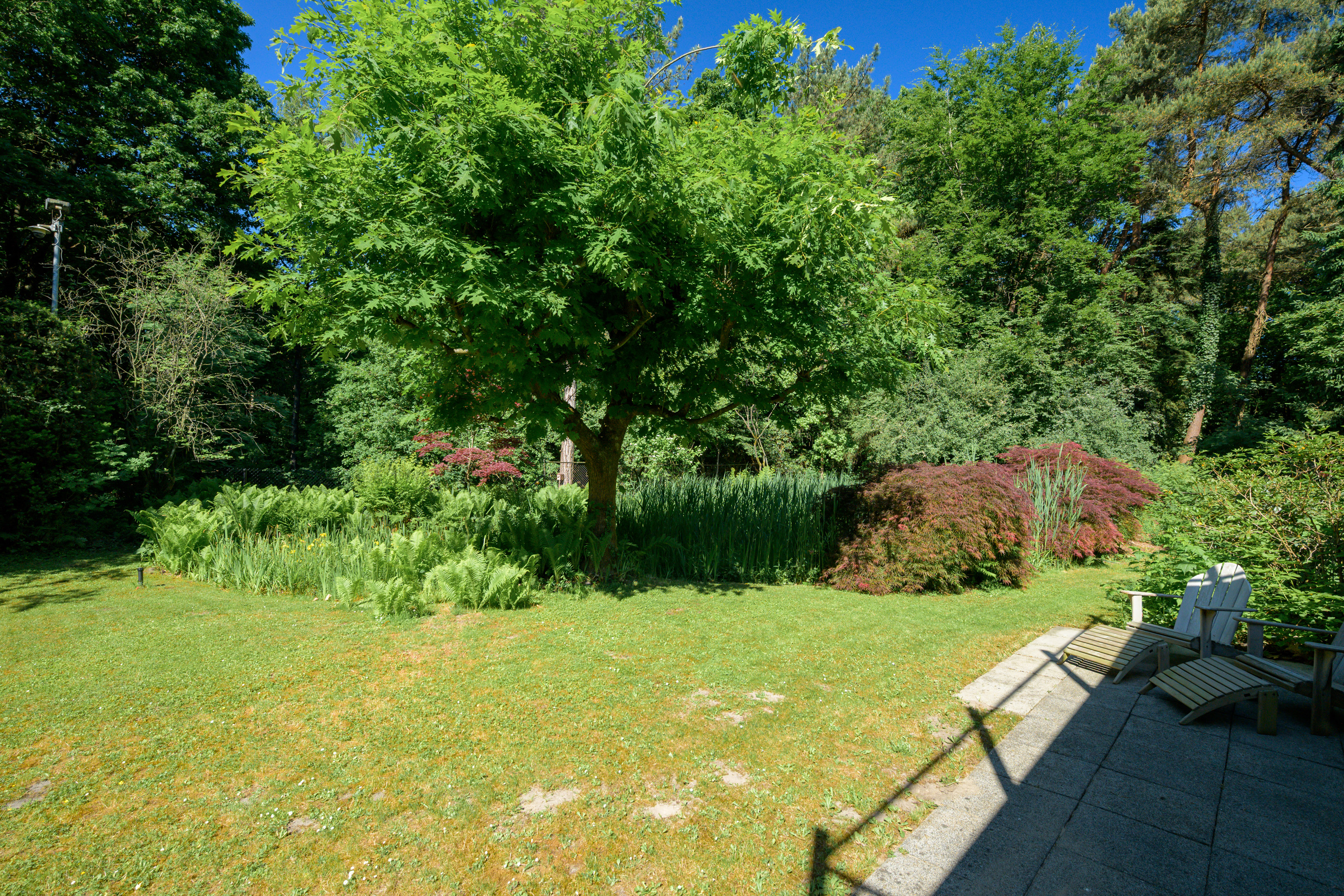 The stunning, park-like (woodland) garden surrounds the home and offers complete privacy and the enjoyment of outdoor living. Its location is unique—quiet and green, yet close to all amenities.