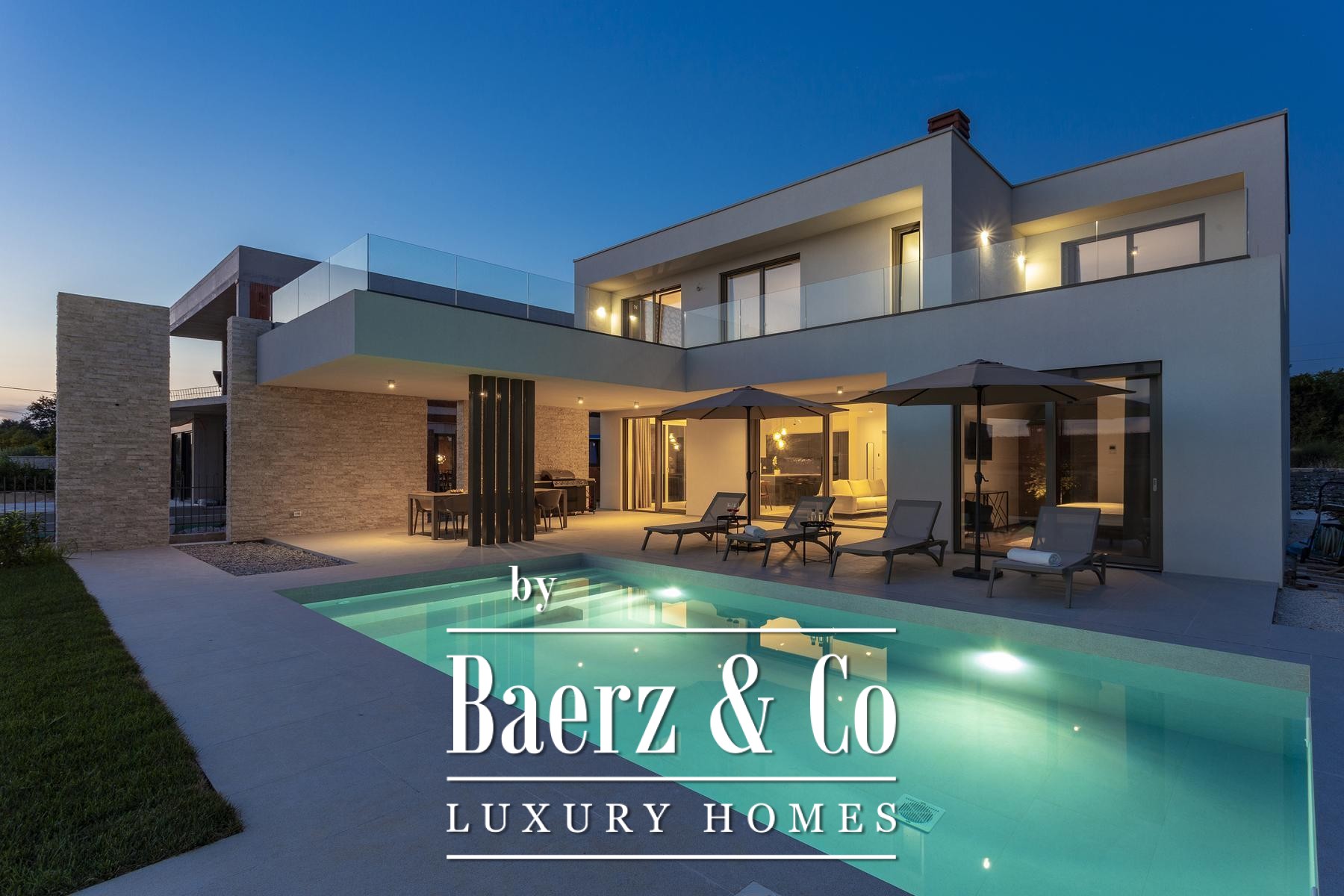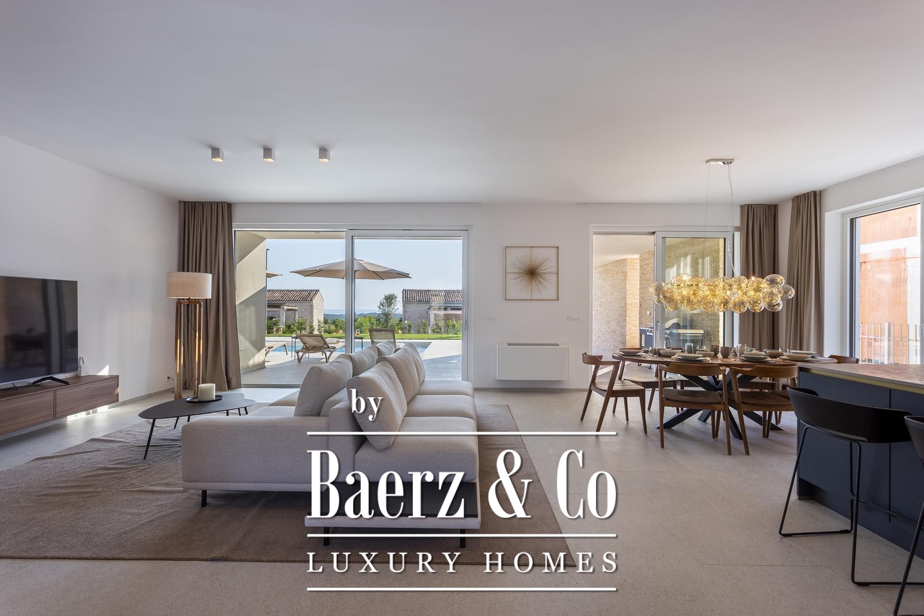 The villa’s distinct simplicity and modern lines are tempered by warmth; insulation and technical systems discreetly enhance year-round comfort. Automated irrigation and landscape lighting enrich the garden, ensuring the property’s exterior echoes its refined interior. Renowned for its peace and privacy, Villa Bale Croatia is moments from the amenities of Istria, offering a sanctuary designed for both serene family life and investment potential.
