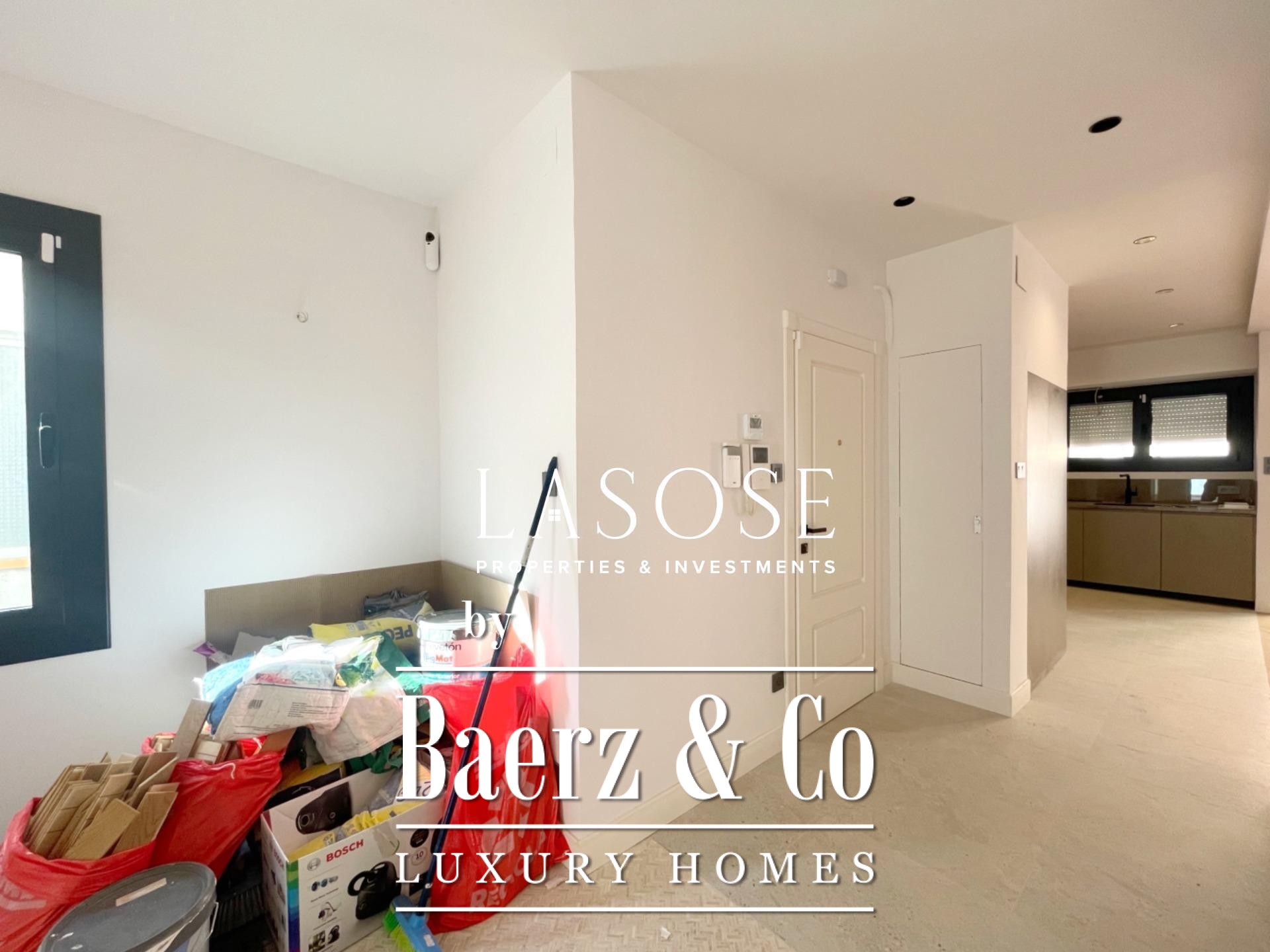 Penthouse Barcelona is the focus of this refined residence, positioned in the authentic enclave of Vila de Gràcia near Putxet. The 96 m² interior is complemented by a generous 60 m² terrace, offering a seamless flow between indoor and outdoor living. This penthouse Barcelona has been completely renovated, presenting a thoughtful division between night and day zones.