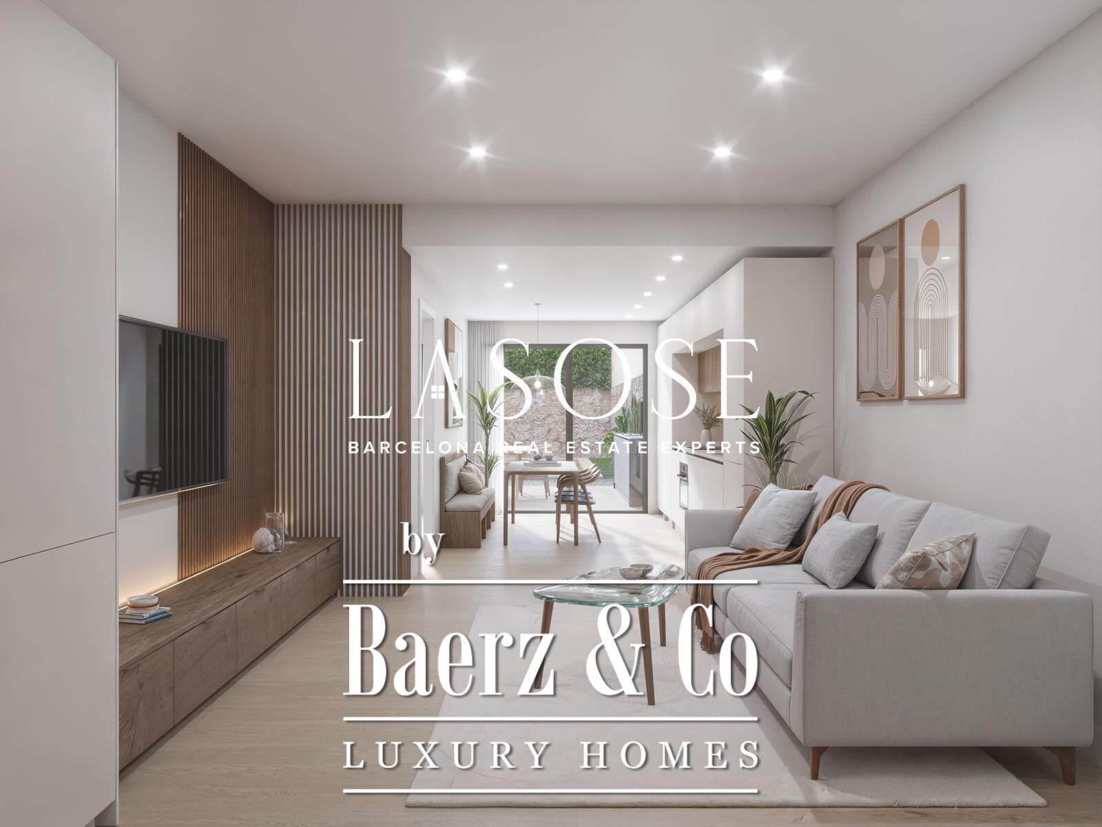Apartment Barcelona offers a rare blend of refined comfort and urban tranquility just steps from the vibrant Rambla del Poblenou. This ground floor residence presents 77 m² of interior living space complemented by an 80 m² private garden, creating a seamless connection between indoors and out. Beyond the threshold, the home reveals two spacious bedrooms and two bathrooms, including a luminous suite that opens directly onto the garden, where natural light articulates a peaceful and inviting atmosphere.