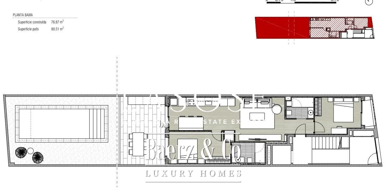 The kitchen is appointed with high-end appliances and a modern aesthetic, making it equally suited to everyday living and gatherings. Aerothermal technology underpins the air conditioning and heating, delivering efficiency and sustainability throughout the seasons. Outdoors, a summer kitchen and a private pool surrounded by greenery invite moments of quiet repose or celebration, enhanced by thoughtful landscaping and curated privacy.