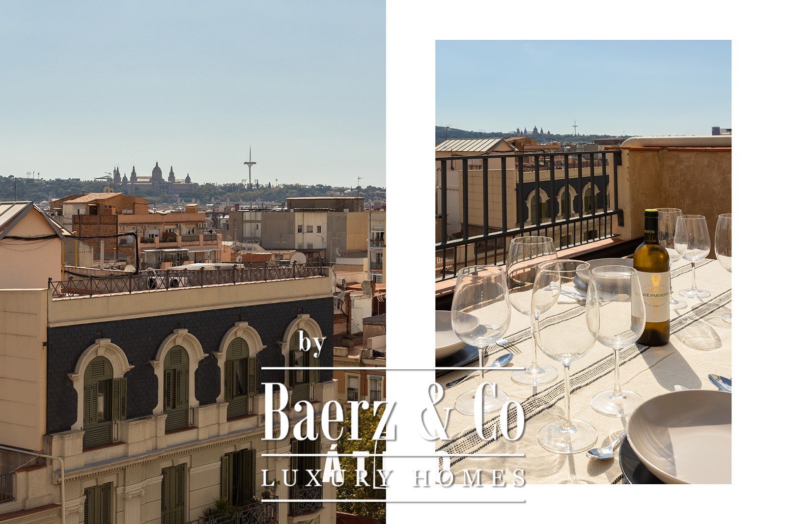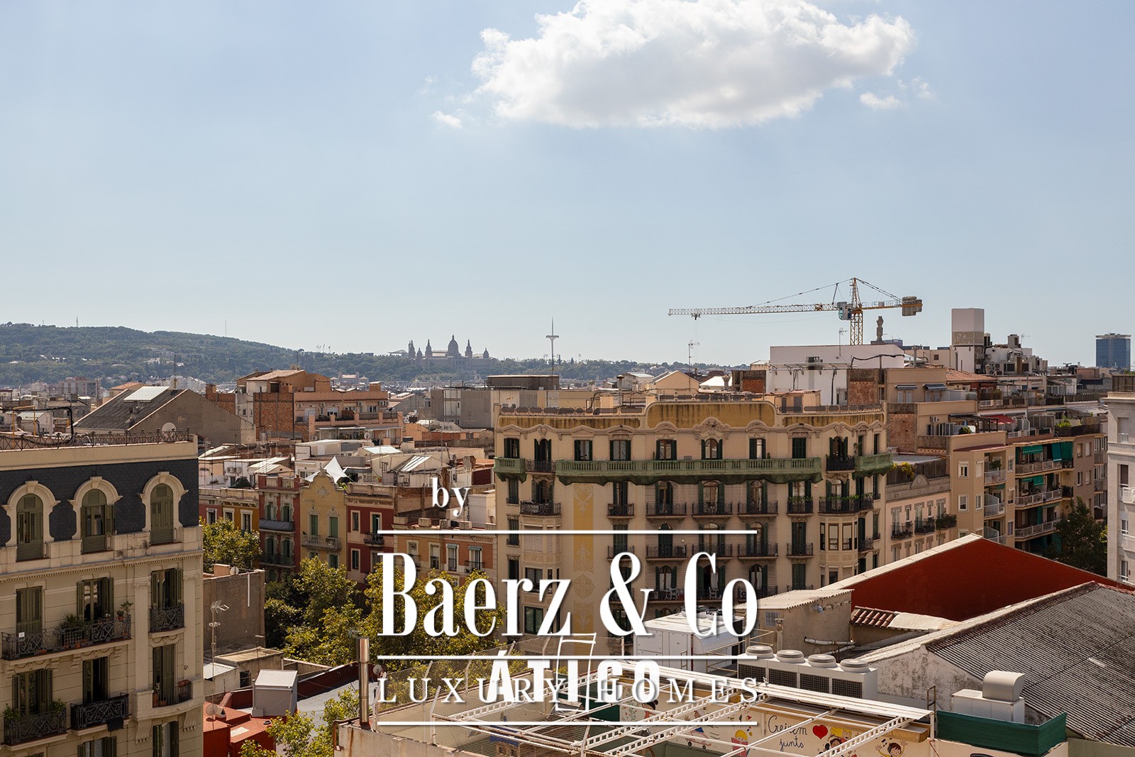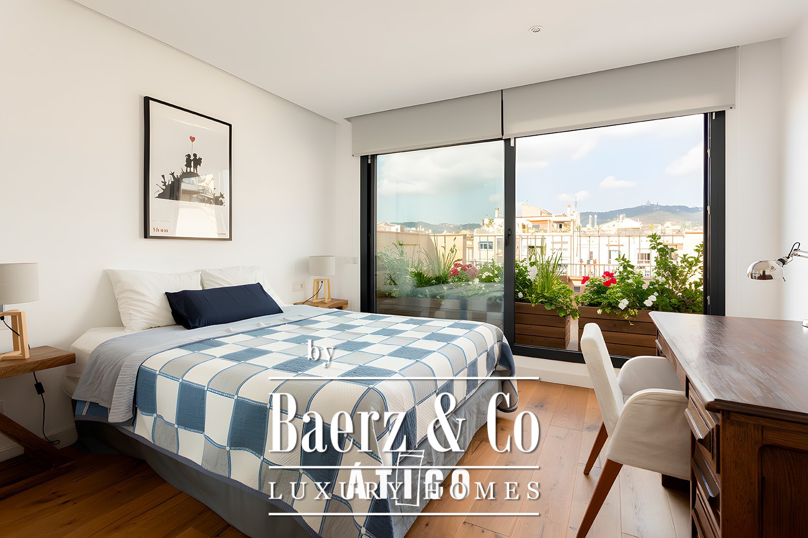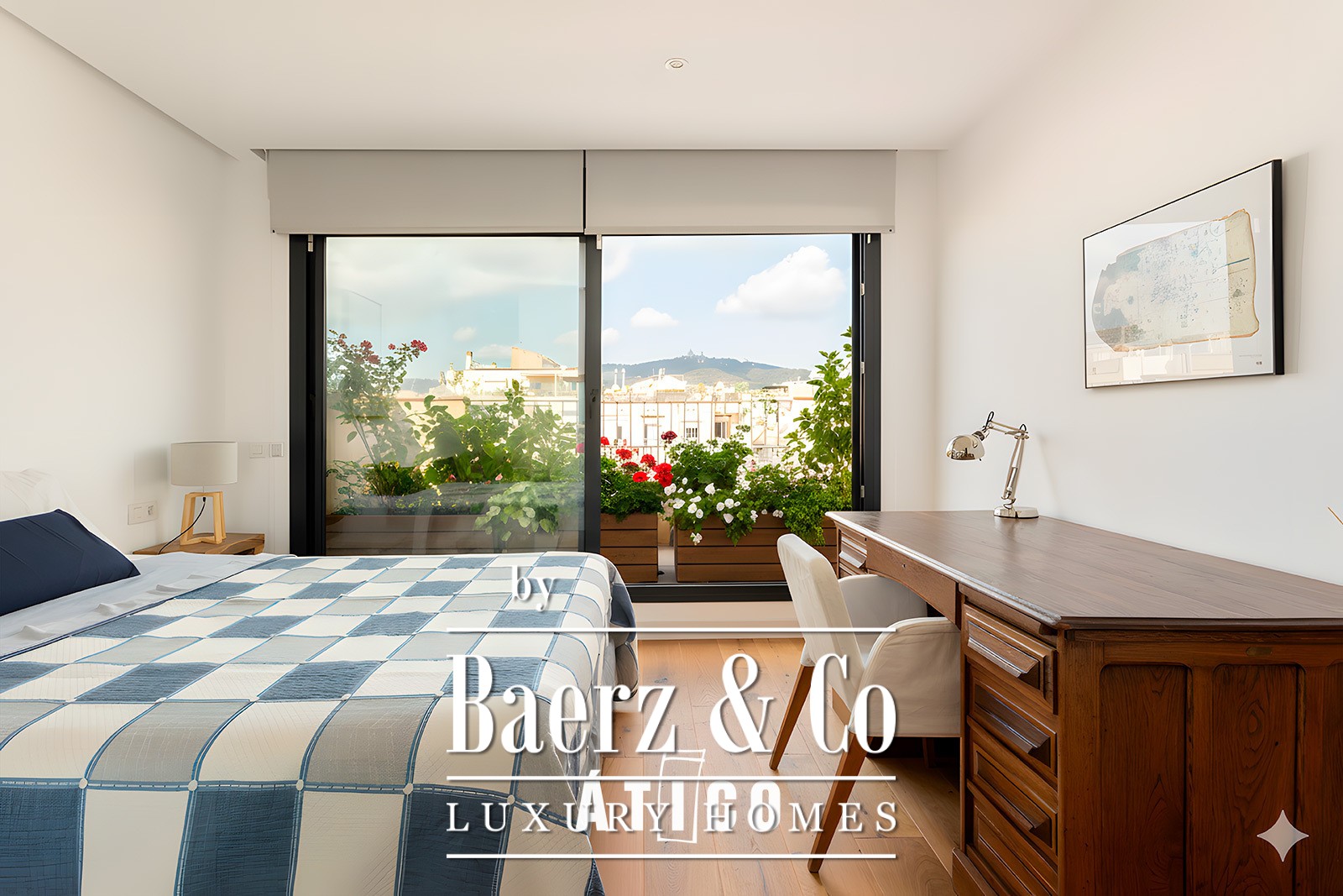 The penthouse is immersed in local character, surrounded by renowned restaurants, vibrant terraces, and all daily services—supermarkets, schools, health centers—along with swift access to trains, metro, and buses connecting the entire city. The nearby Mercado del Ninot reflects the area’s balance of tradition and modern gastronomy, while the Eixample district itself is an enduring testament to design, elegant order, and openness that defines Barcelona living. For those seeking a luxury penthouse for sale in Eixample, this residence offers the rare combination of privacy, daily convenience, and metropolitan flair.