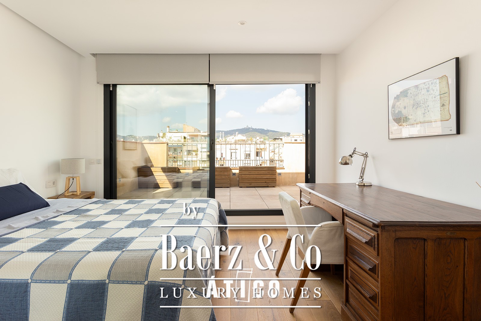Attic Barcelona penthouse is found in the heart of Eixample Izquierdo, moments from Carrer Enric Granados and a short walk from Rambla Catalunya's elegant thoroughfare. This 138 m² penthouse offers a rare synthesis of modern comfort and Barcelona's urban rhythm, with a layout designed for daily enjoyment and privacy alike.