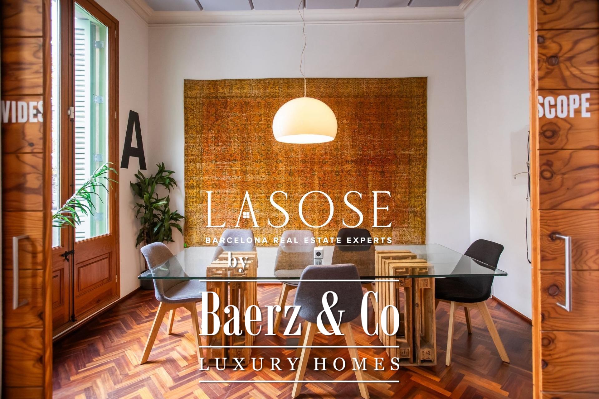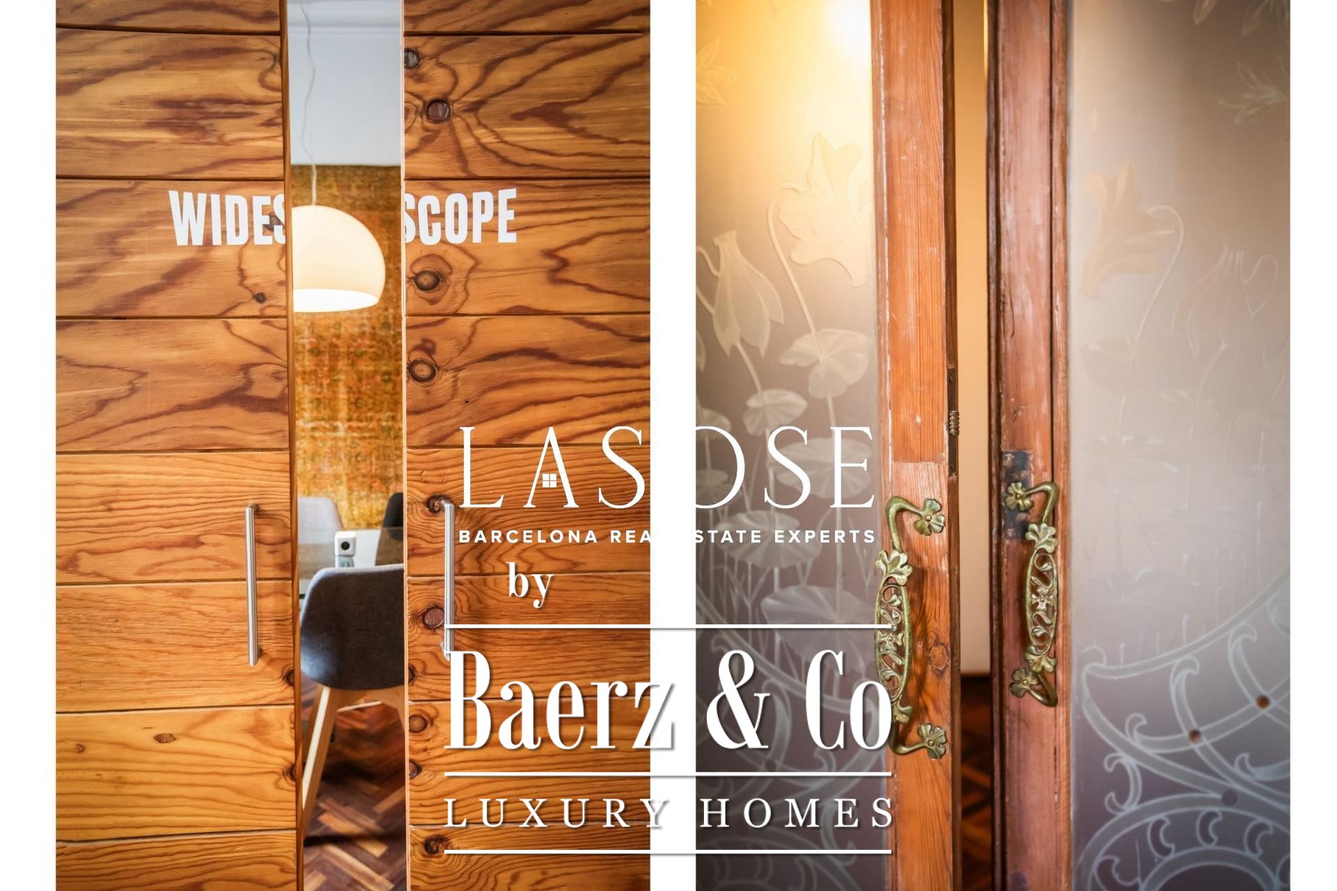 Apartment Barcelona in Eixample Esquerra sits on the principal floor of a distinguished modernist building constructed in 1900, merging legacy architecture with generous spatial flow. This residence offers an internal living area of 179 m² and 4 m² of balconies, where three street-facing balconies and a classic bay window fill the main living room with daylight, reflecting both grandeur and openness. Ceilings soar to 3.5 meters with original volta catalana, preserving an authentic heritage distinct to the period.