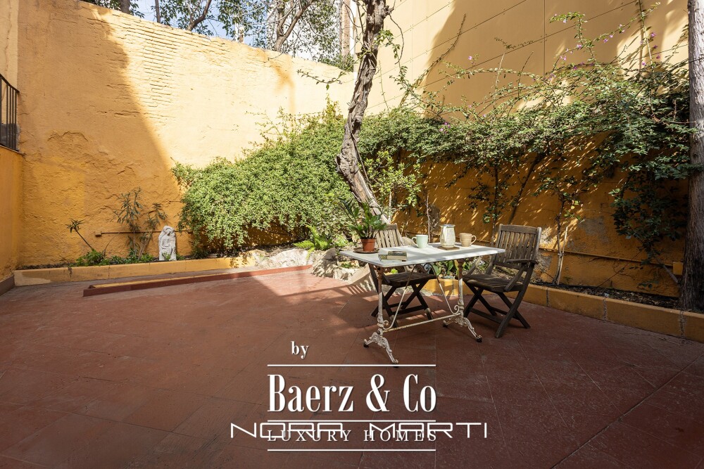 This townhouse Barcelona blends early 20th century character with contemporary living, quietly positioned within the distinctive Gràcia neighborhood. Encompassing 158 m² over two thoughtfully distributed floors, the property offers a generous sense of space and privacy, including a 50 m² garden and multiple terraces across different levels.