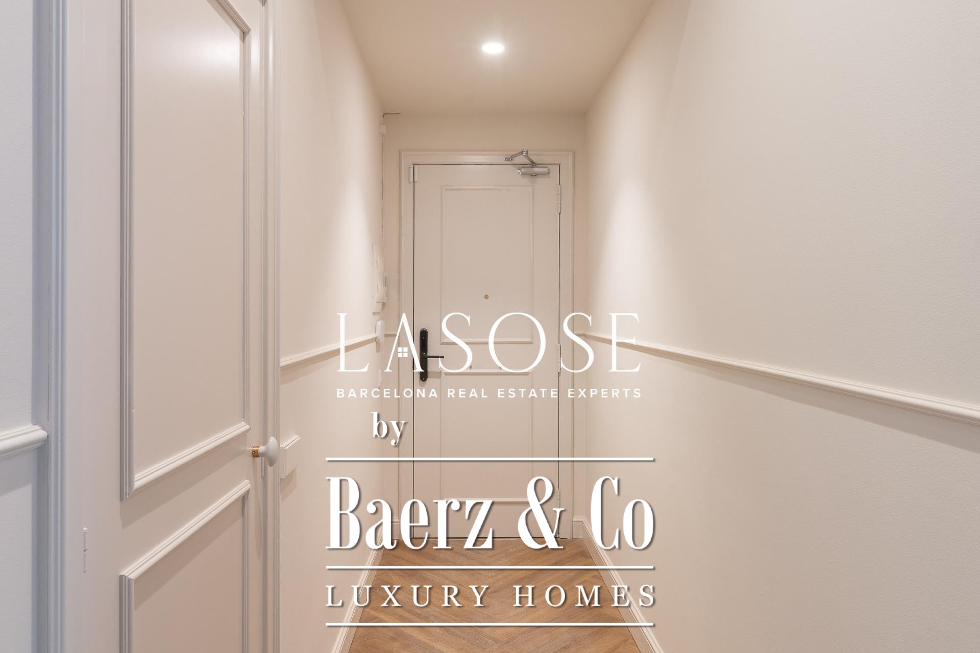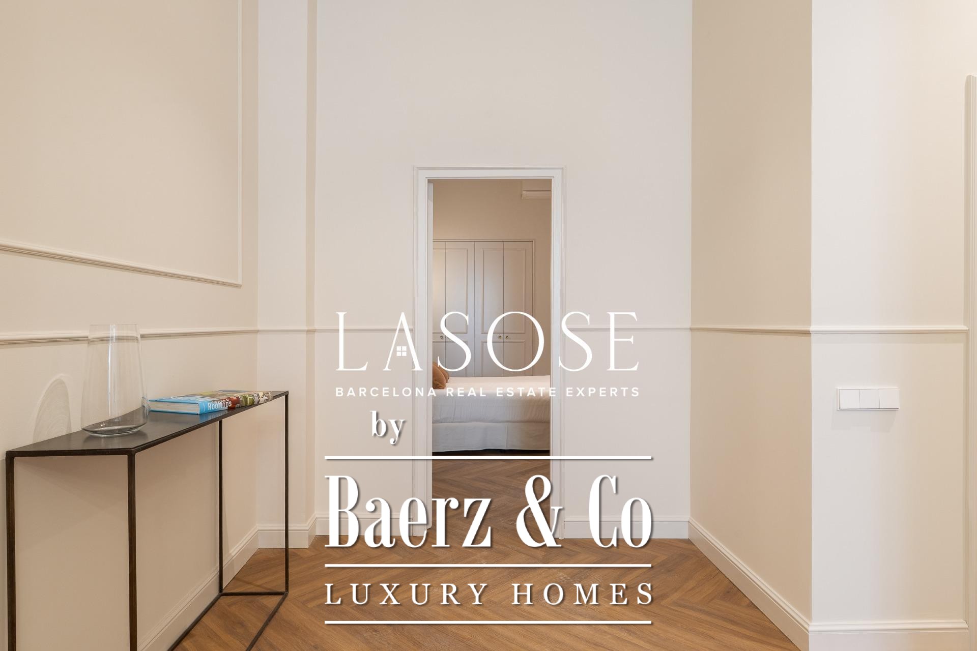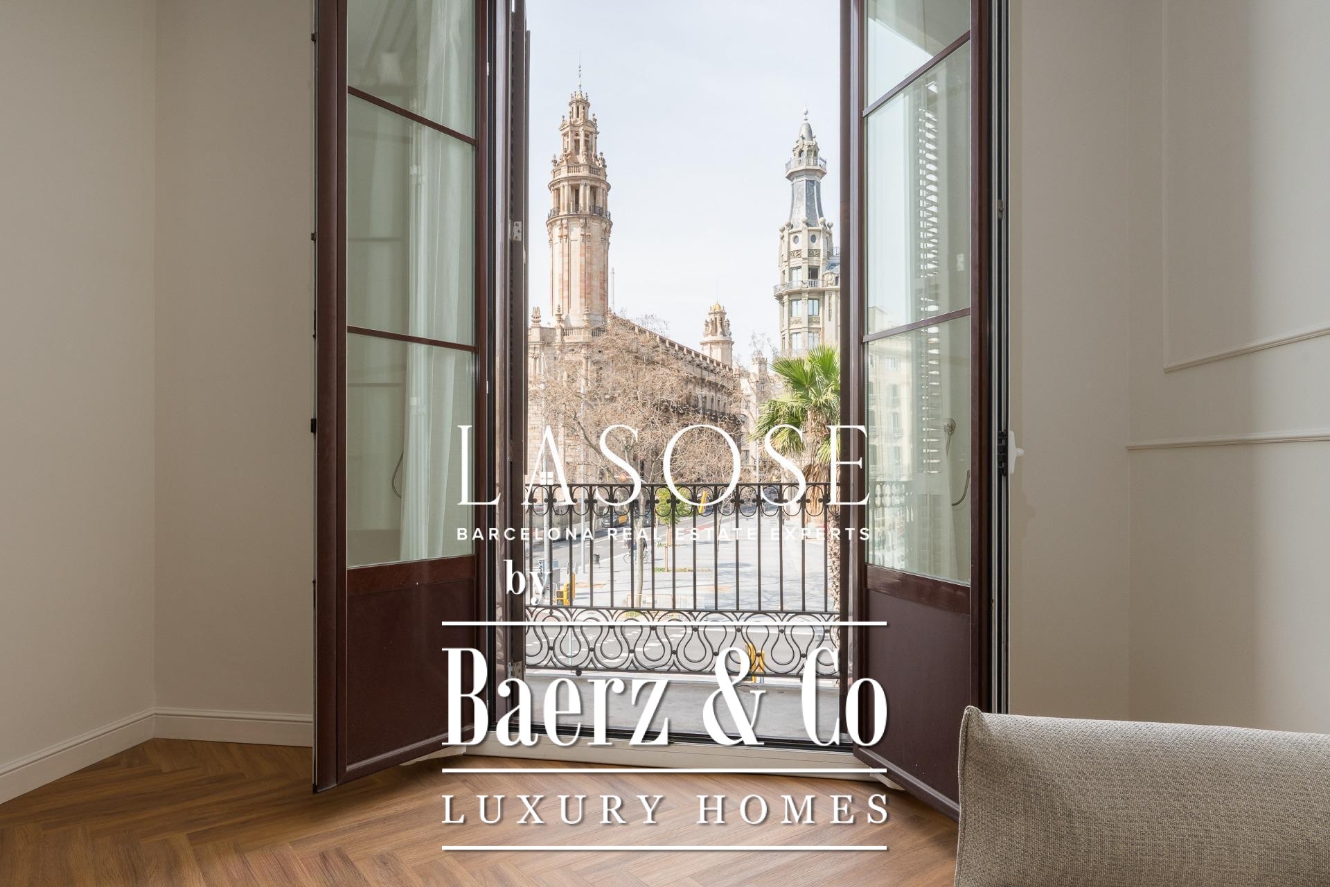 Apartment Barcelona is redefined in this exceptional 118 m² residence, showcasing a meticulous renovation within a historic 1850 building, now a Local Heritage Site. The property achieves the rare harmony between preserved architectural character and the expectations of contemporary luxury. Entering, you are welcomed by an immediate sense of space and refinement, with an open-plan living and dining area bathed in natural light through generous windows facing Paseo Isabel II. Designer furnishings and premium finishes elevate every moment spent here.