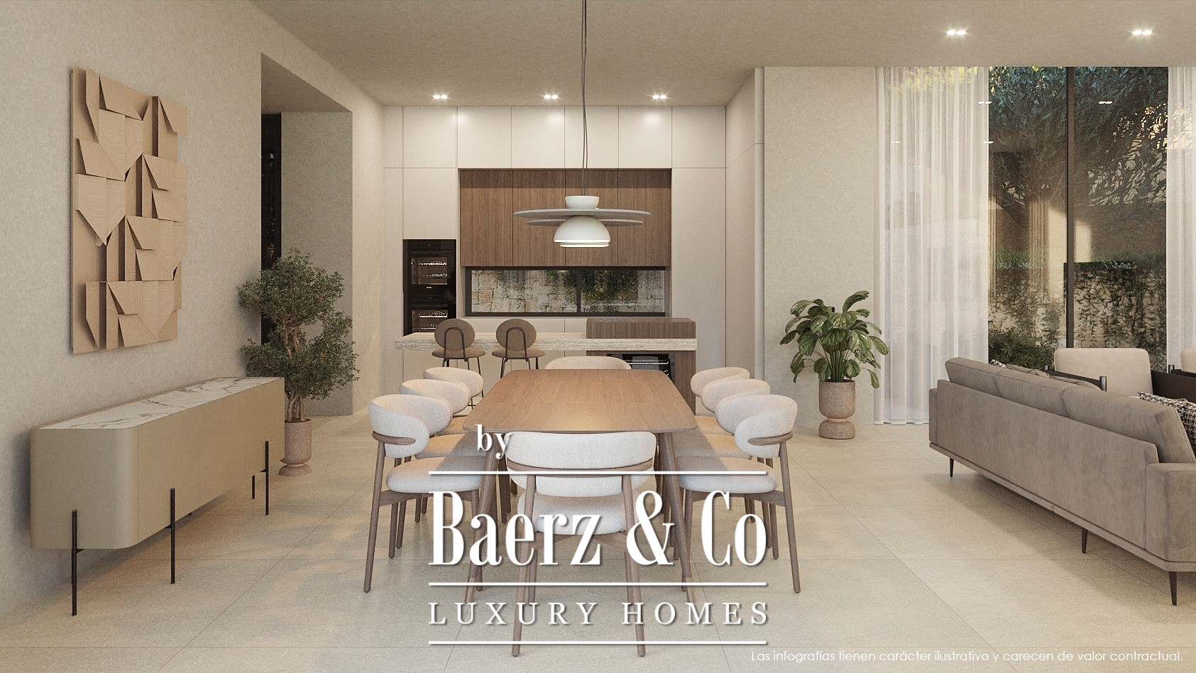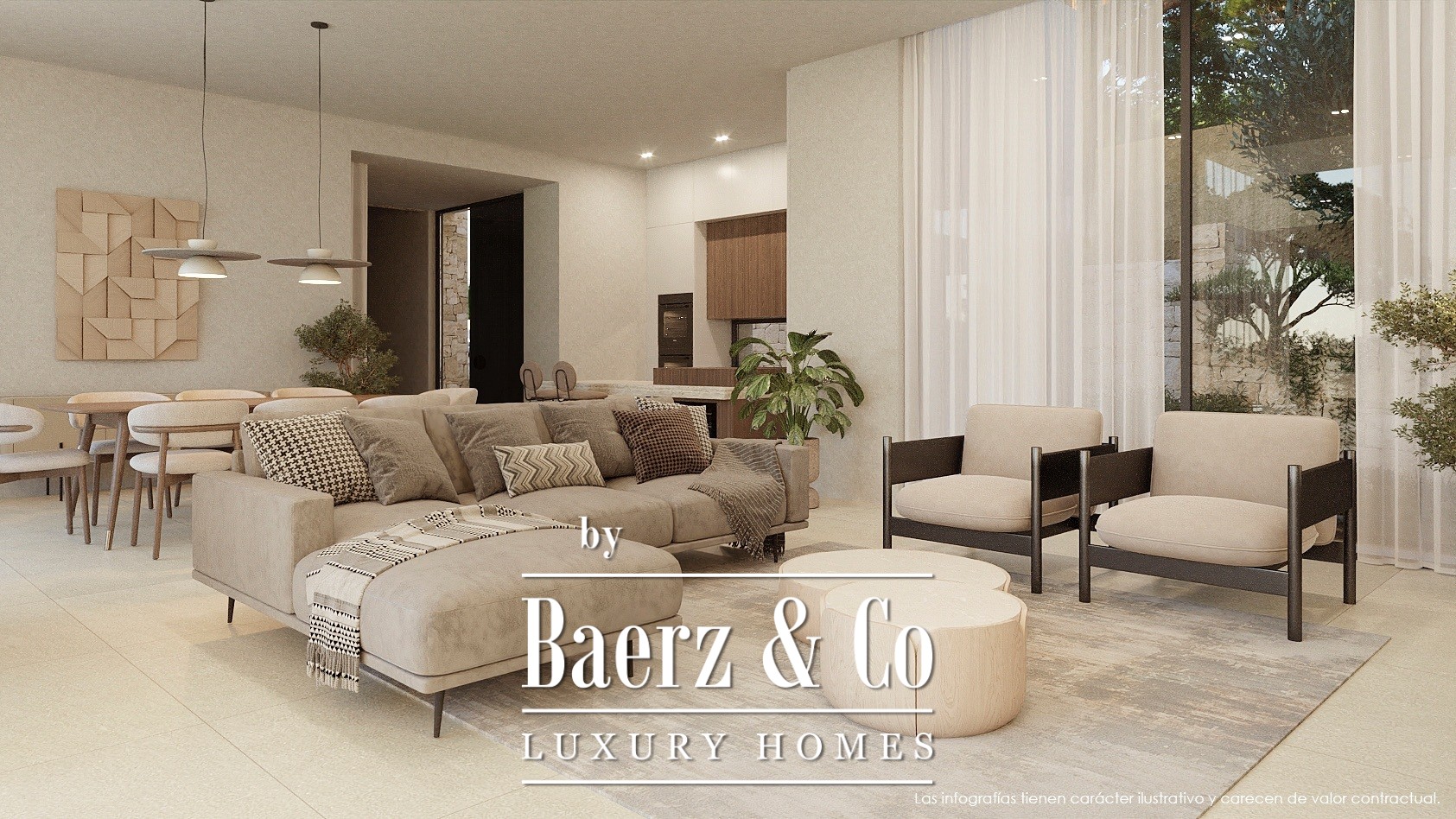Located in a quiet cul-de-sac in the exclusive San Jaime urbanization in Benissa, this project offers sea views and enviable tranquility, allowing residents to enjoy their privacy amidst an idyllic setting. The charming environment not only provides natural beauty but also proximity to essential and recreational spots. The renowned San Jaime golf course is just a stone's throw away, while the well-known supermarket Pepe La Sal caters to all your daily needs. This remarkable villa is designed over three elegant floors, achieving a perfect balance between style, comfort, and functionality. - ENTRY FLOOR: Upon entering, you are greeted by an area with the garage, laundry room, and technical room. This thoughtfully designed space ensures that practical aspects of life are seamlessly integrated without compromising on style. - GROUND FLOOR: As you proceed to the living room, you are enveloped in a world of elegance and comfort. The open living/dining/kitchen area exudes a welcoming atmosphere, ideal for family gatherings or entertaining guests. Additionally, this floor features two spacious