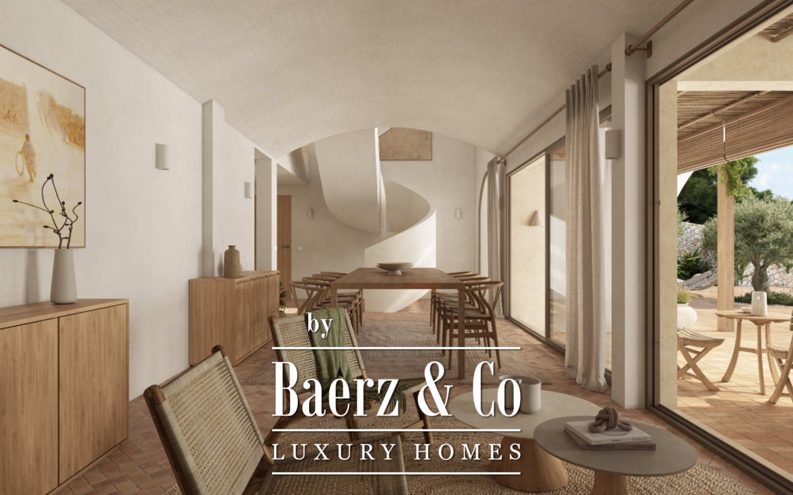 Interiors feature warm textures and neutral tones, with living areas visually linked to the outdoors for a serene Mediterranean ambiance. This Benissa residence is a sanctuary where past and present connect, reflecting thoughtful design and a sense of enduring character.
