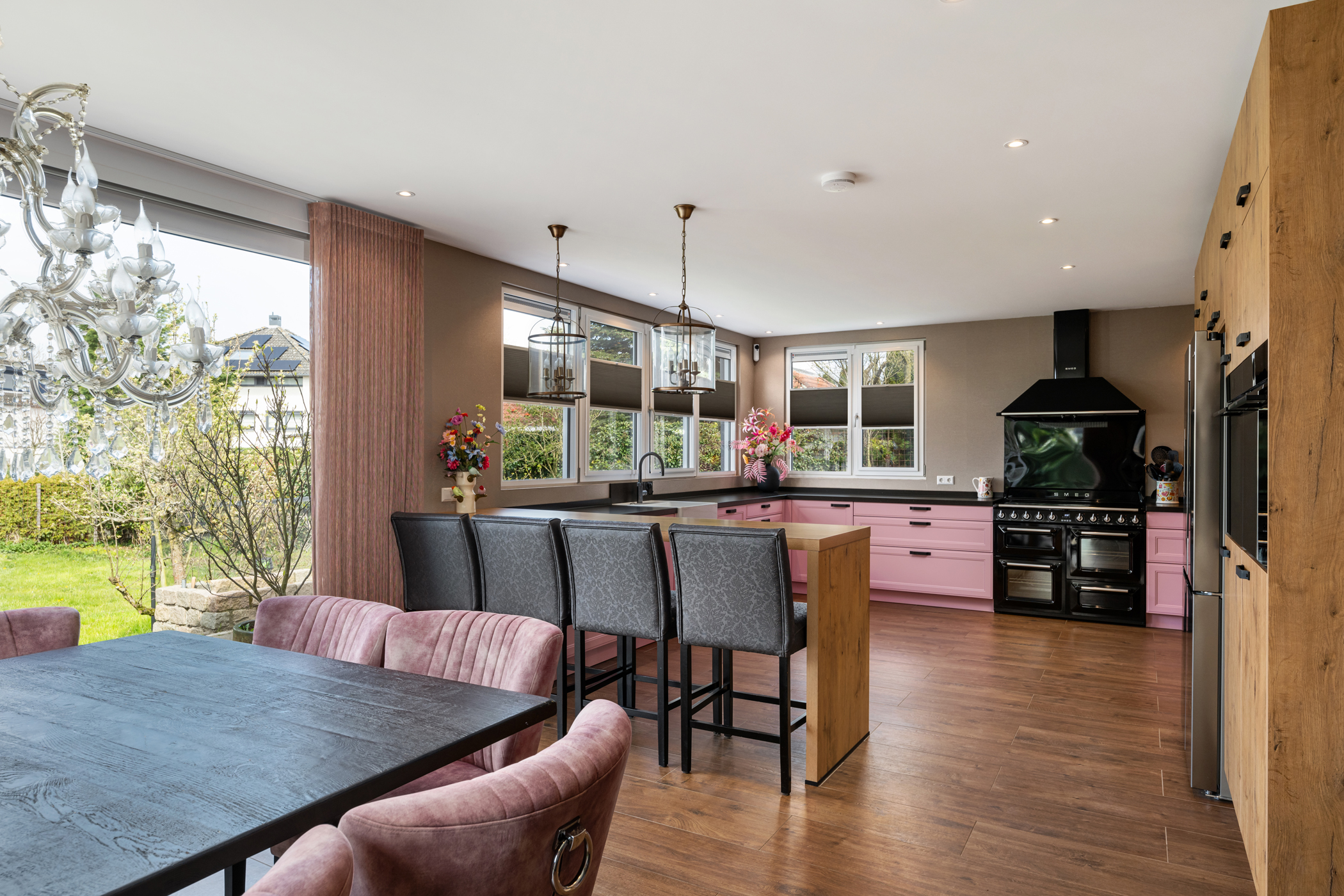 Step inside Villa Bergschenhoek to find a sunlit living area, a fully equipped kitchen with premium appliances, and abundant space for entertaining or quiet reflection. Seven bedrooms and three bathrooms create flexibility for family or guests. Carefully preserved glass-in-lead windows evoke the atmosphere of past eras, while features like mechanical ventilation, alarm system, air conditioning, sliding doors, and French balconies overlay contemporary convenience.