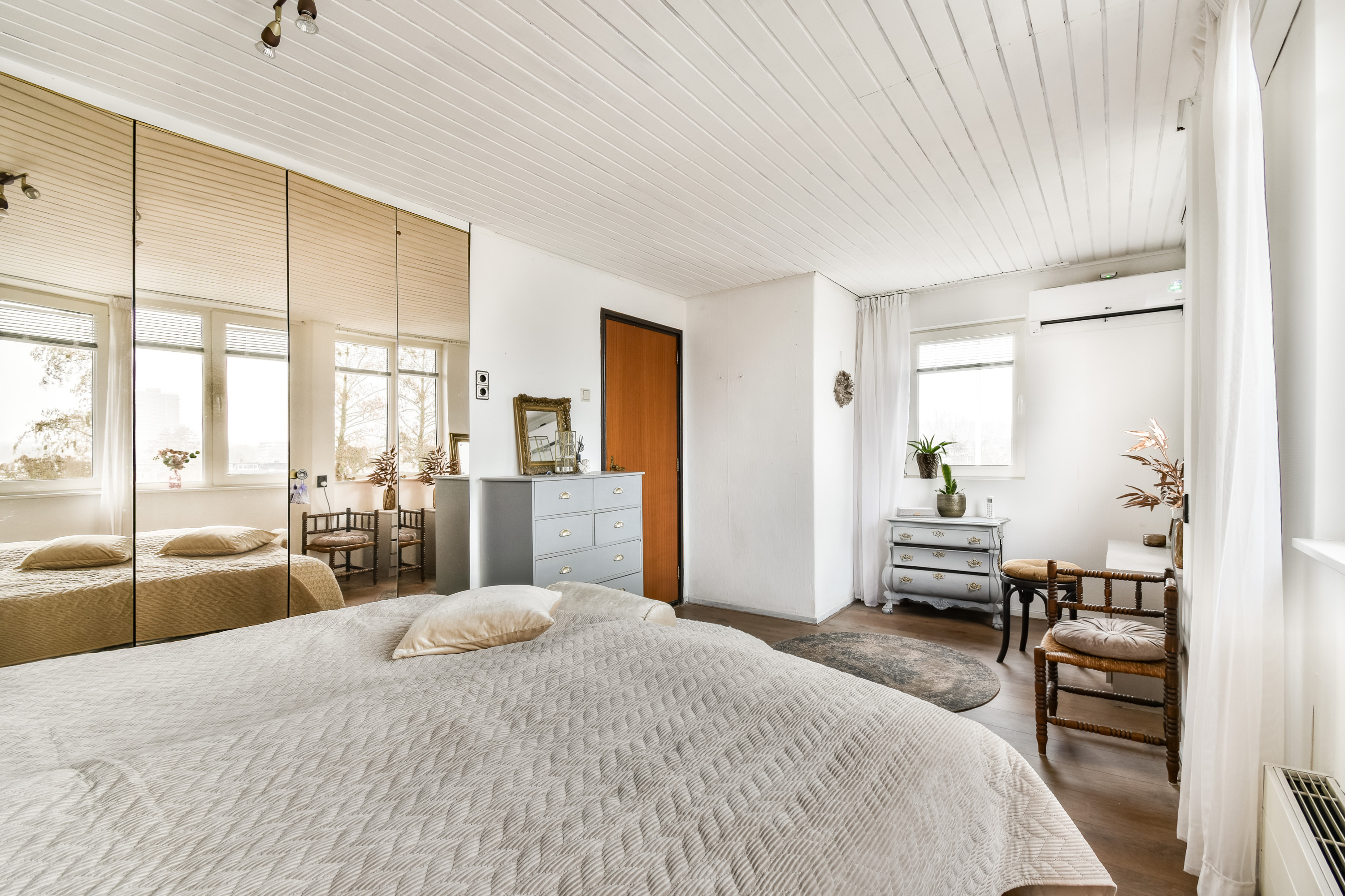 The spacious backyard faces north and offers wide views over greenery and the Lage Bergse Bos. A wonderful place to enjoy long summer evenings, drinks with friends, or simply to relax. There is also a jetty/deck at the water.