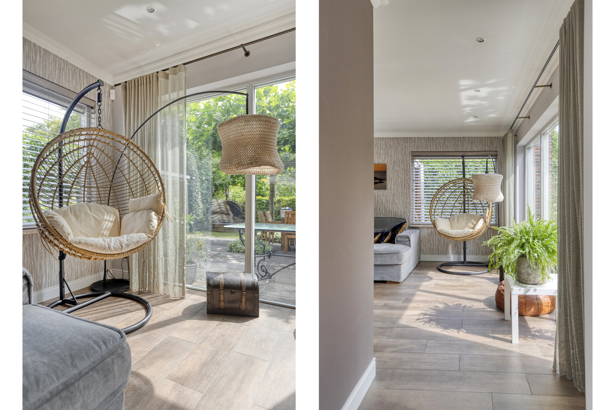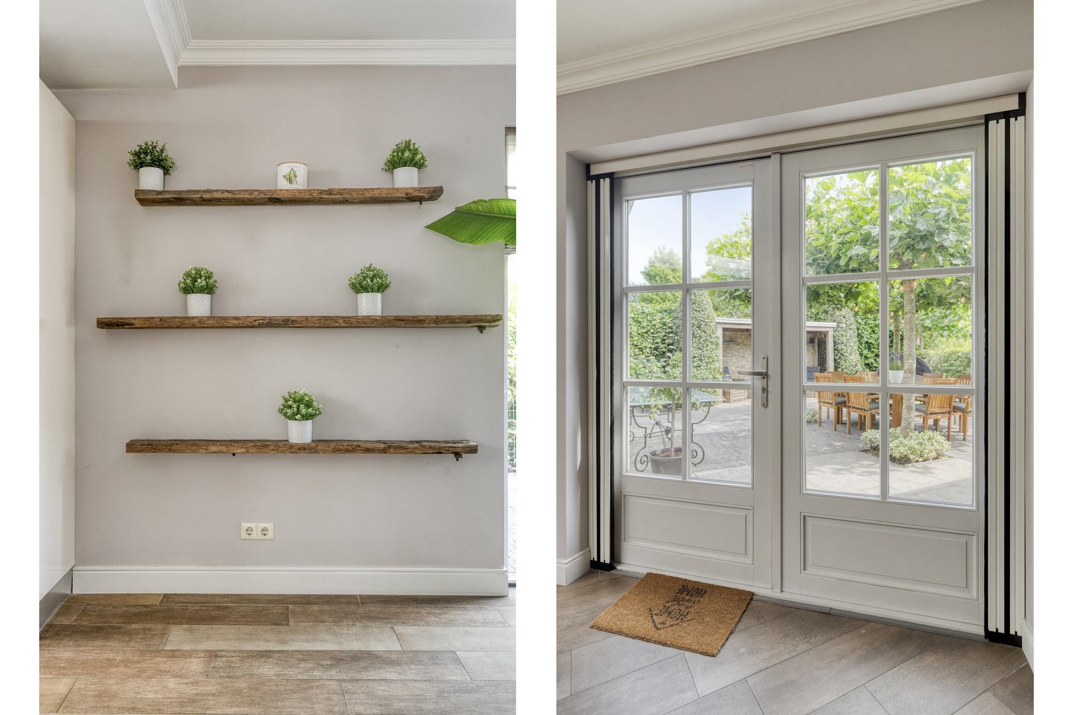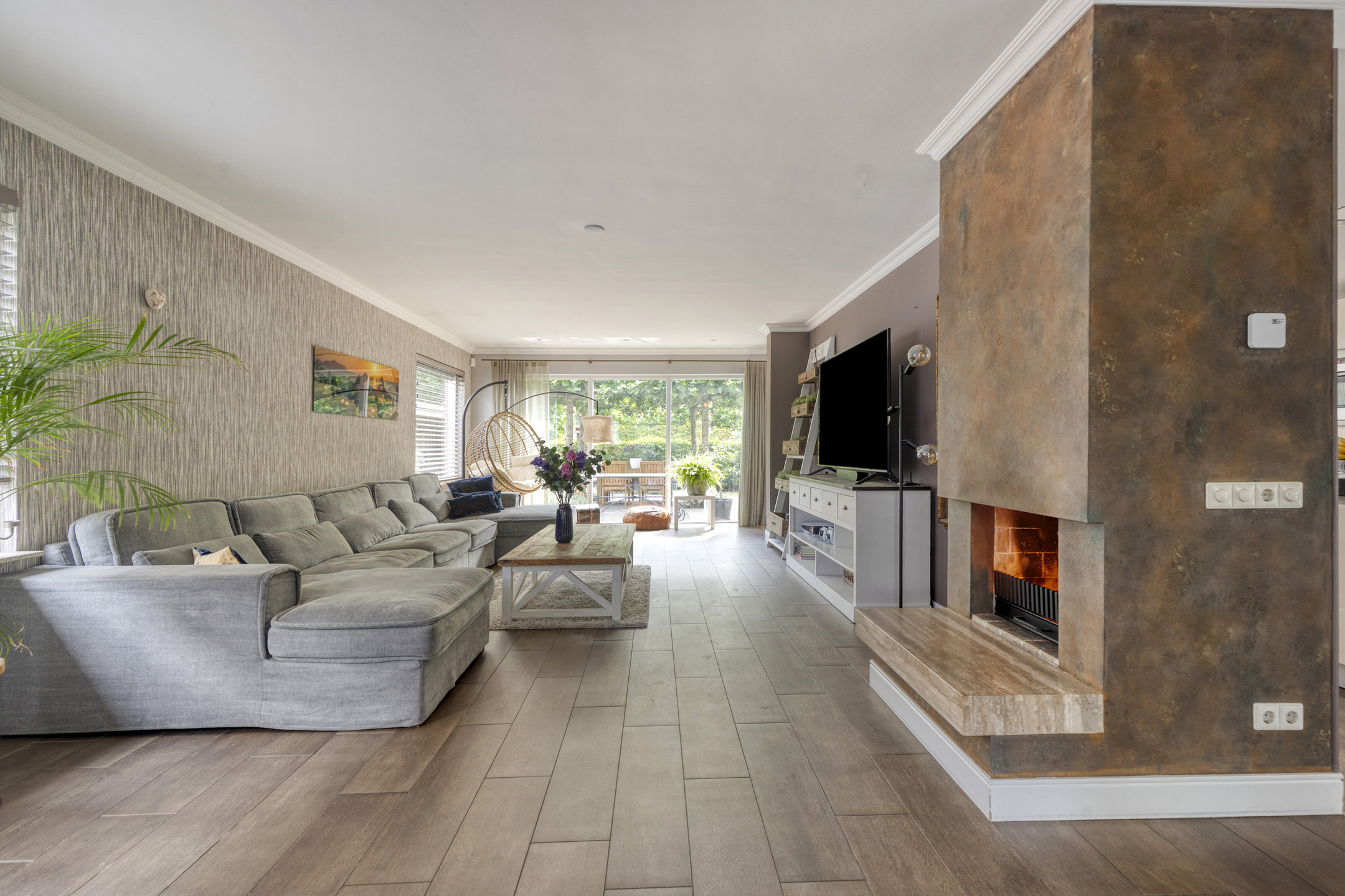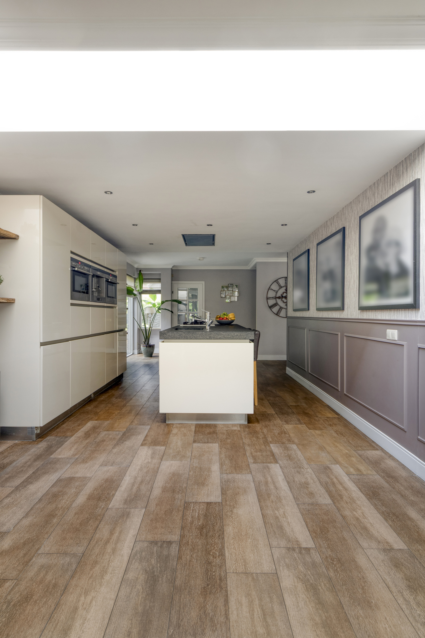 The entire ground floor, including the veranda, is fitted with wood-look tile flooring and underfloor heating.