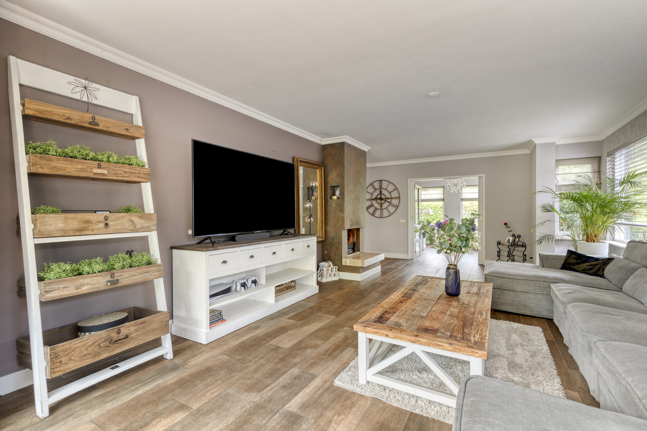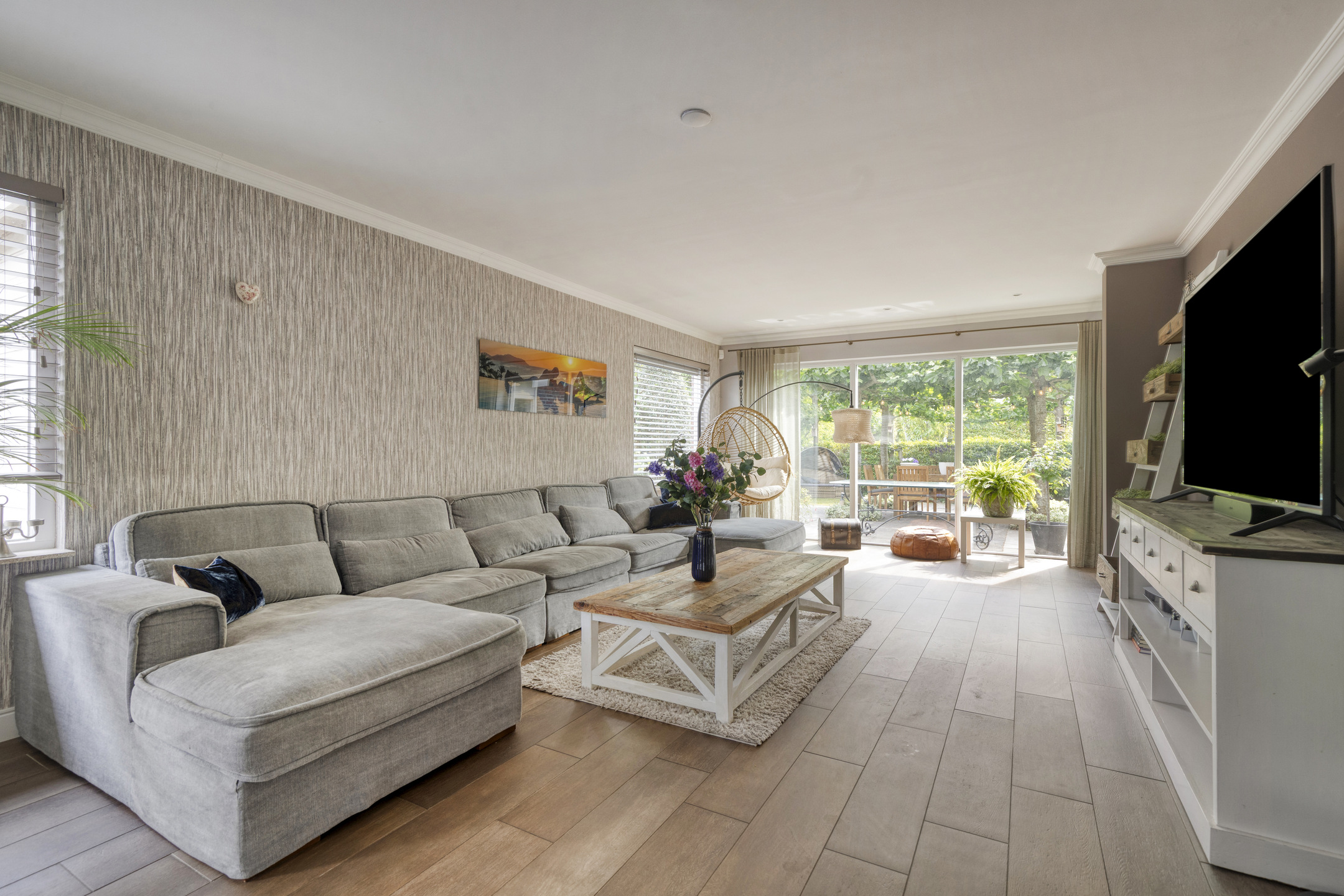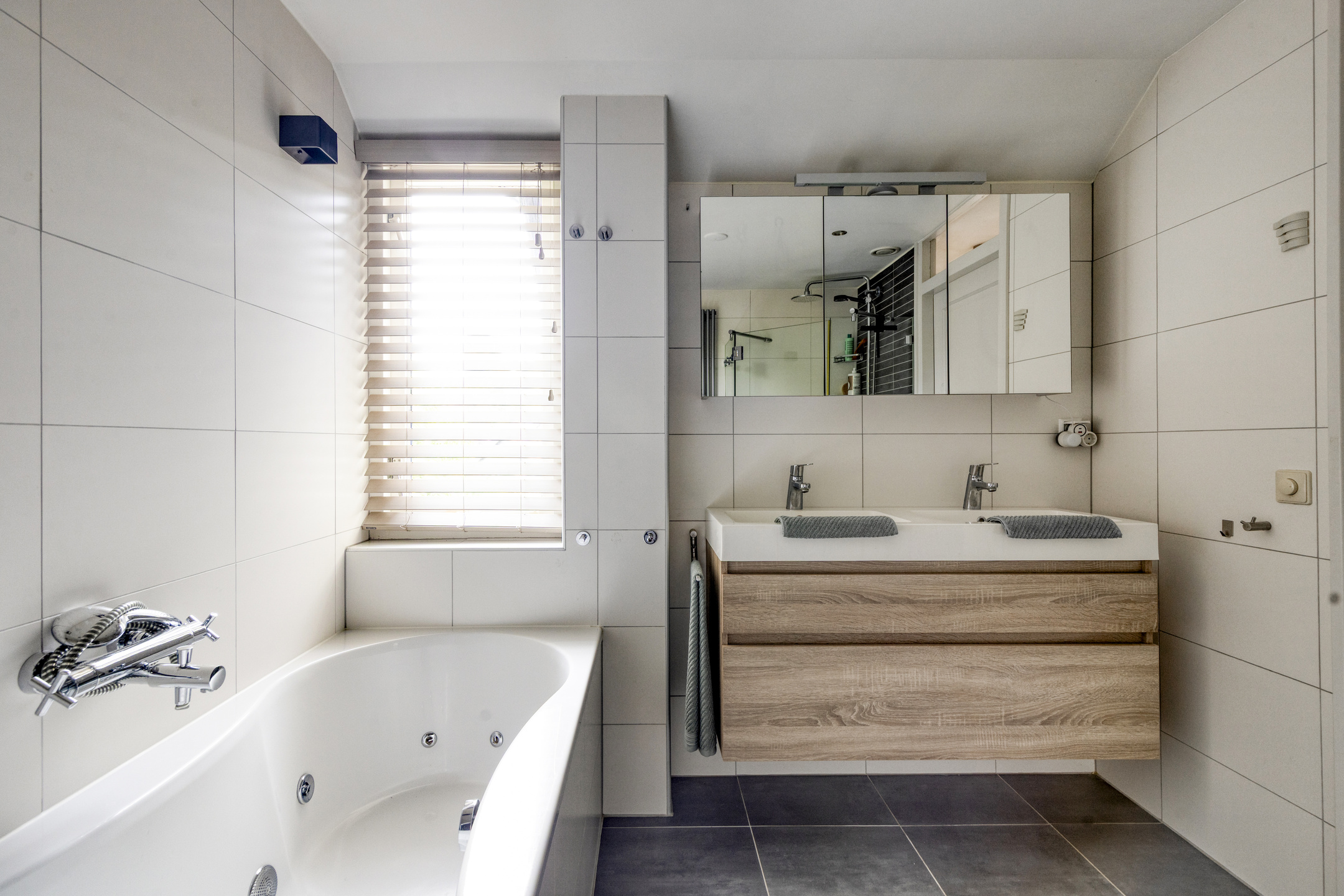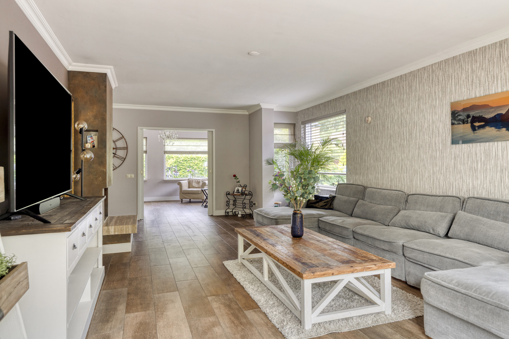 The entire ground floor, including the veranda, is fitted with wood-look tile flooring and underfloor heating.