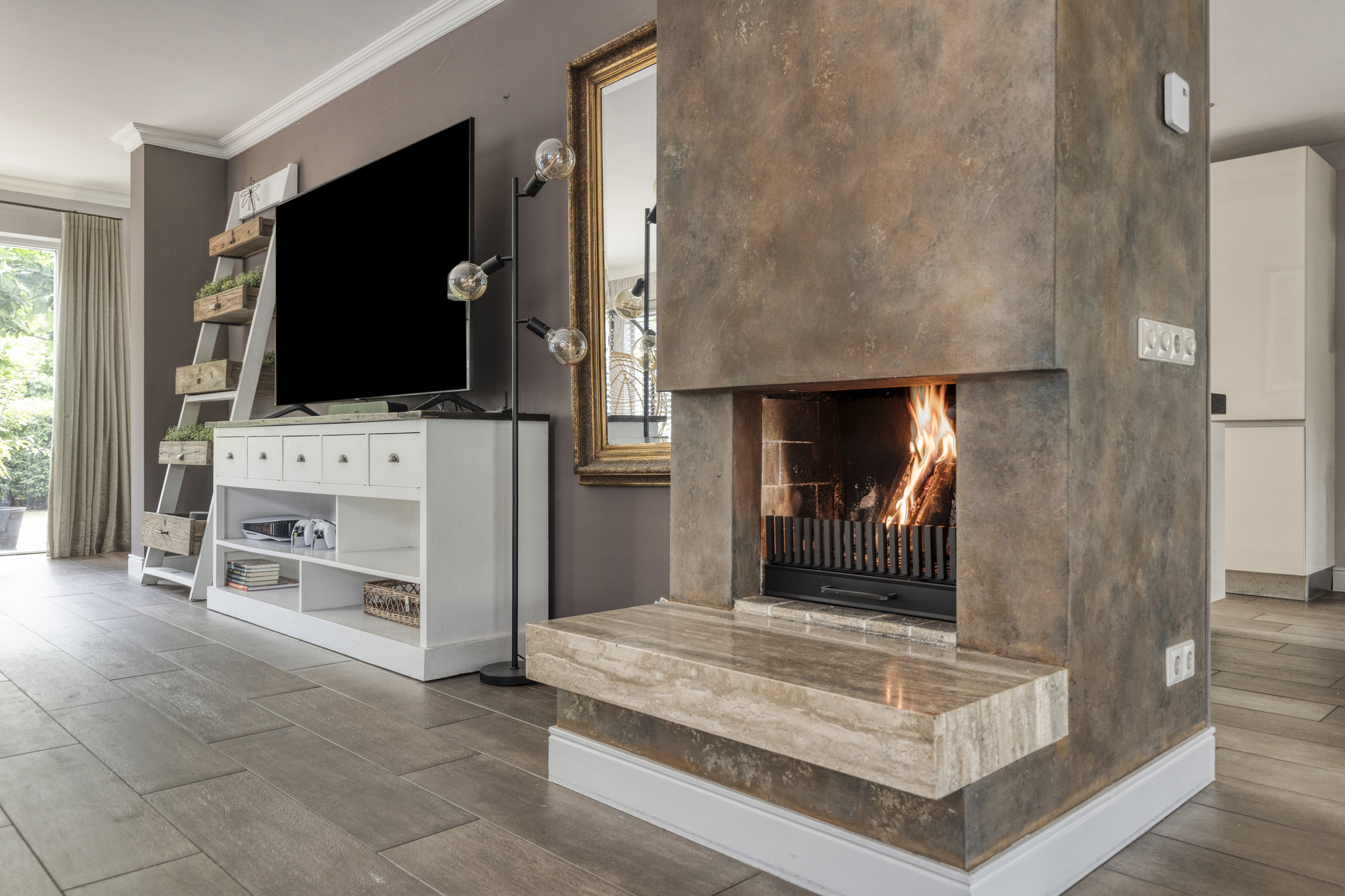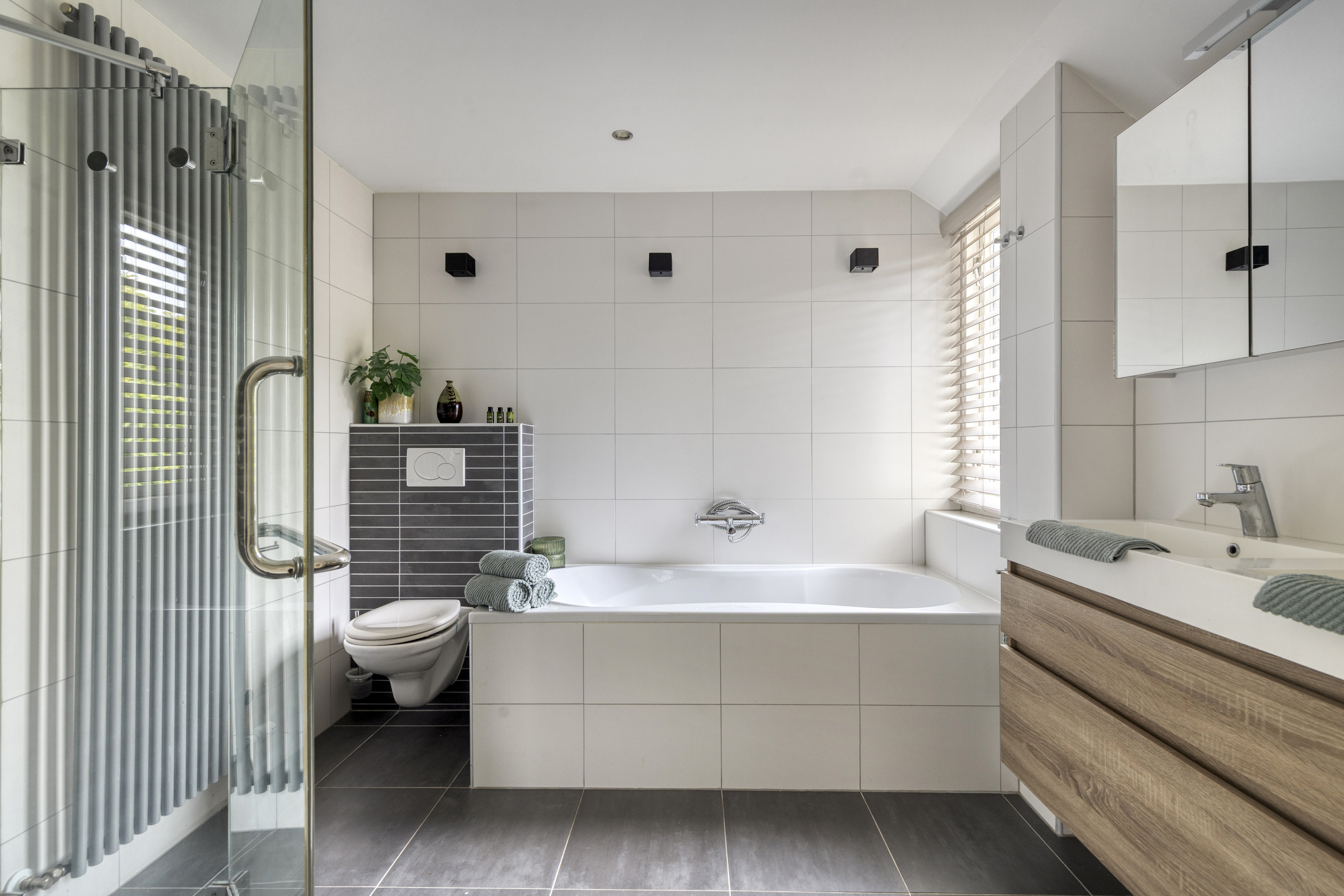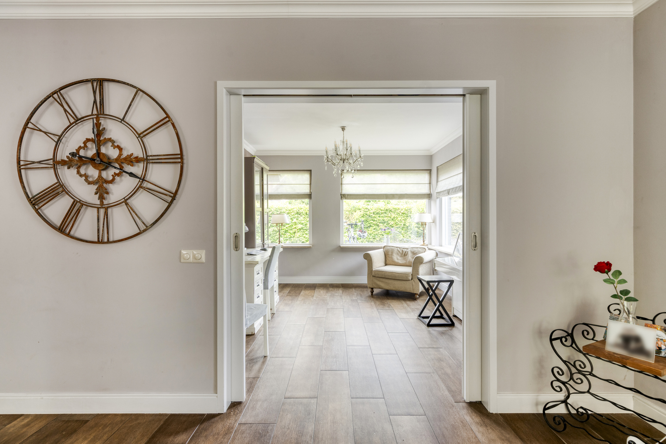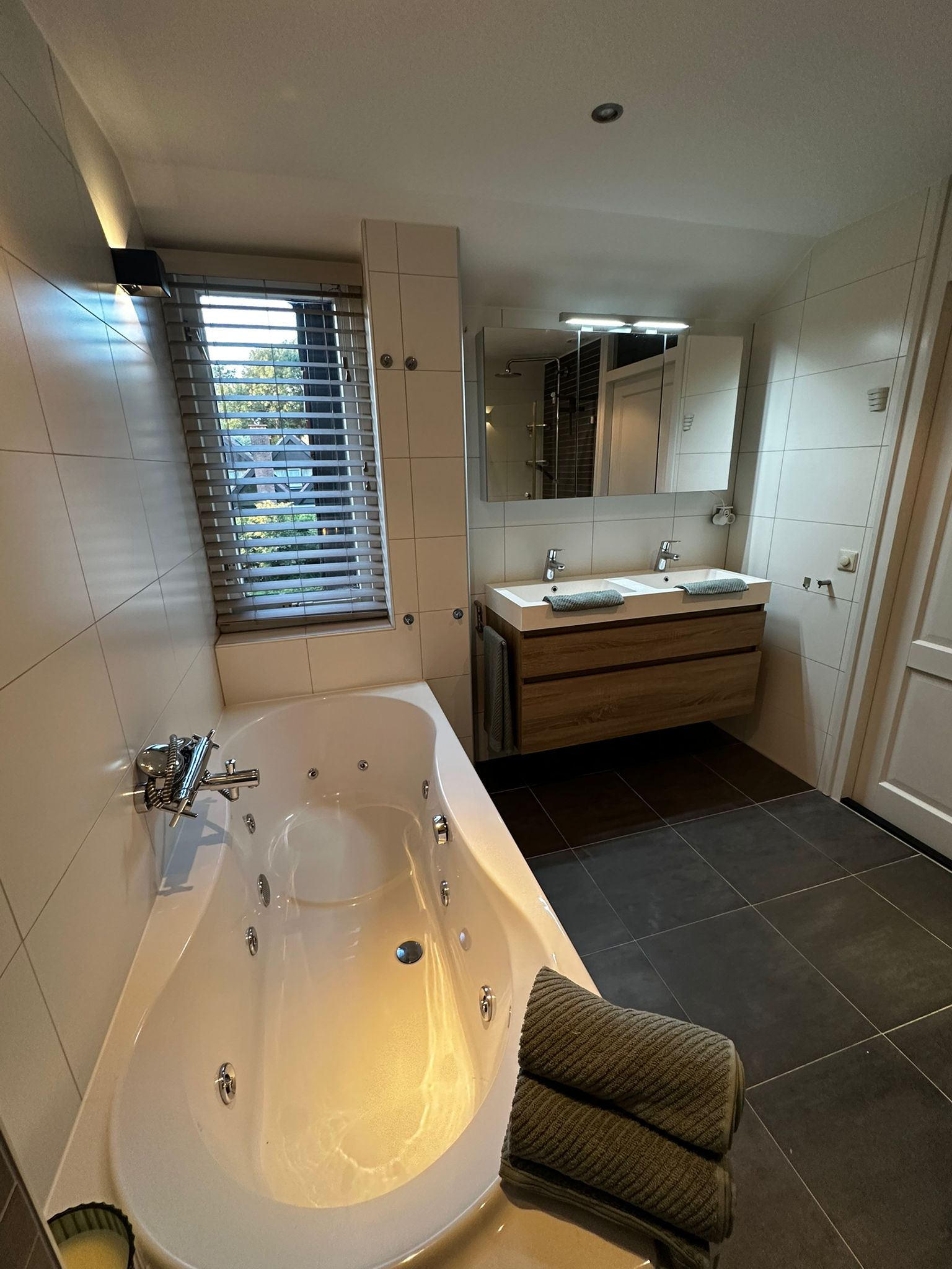 The entire ground floor, including the veranda, is fitted with wood-look tile flooring and underfloor heating.