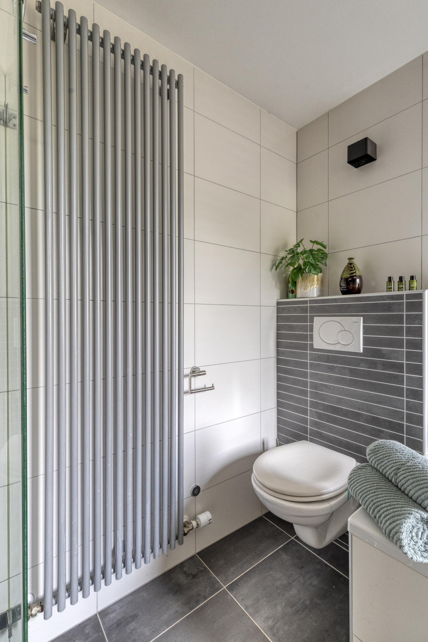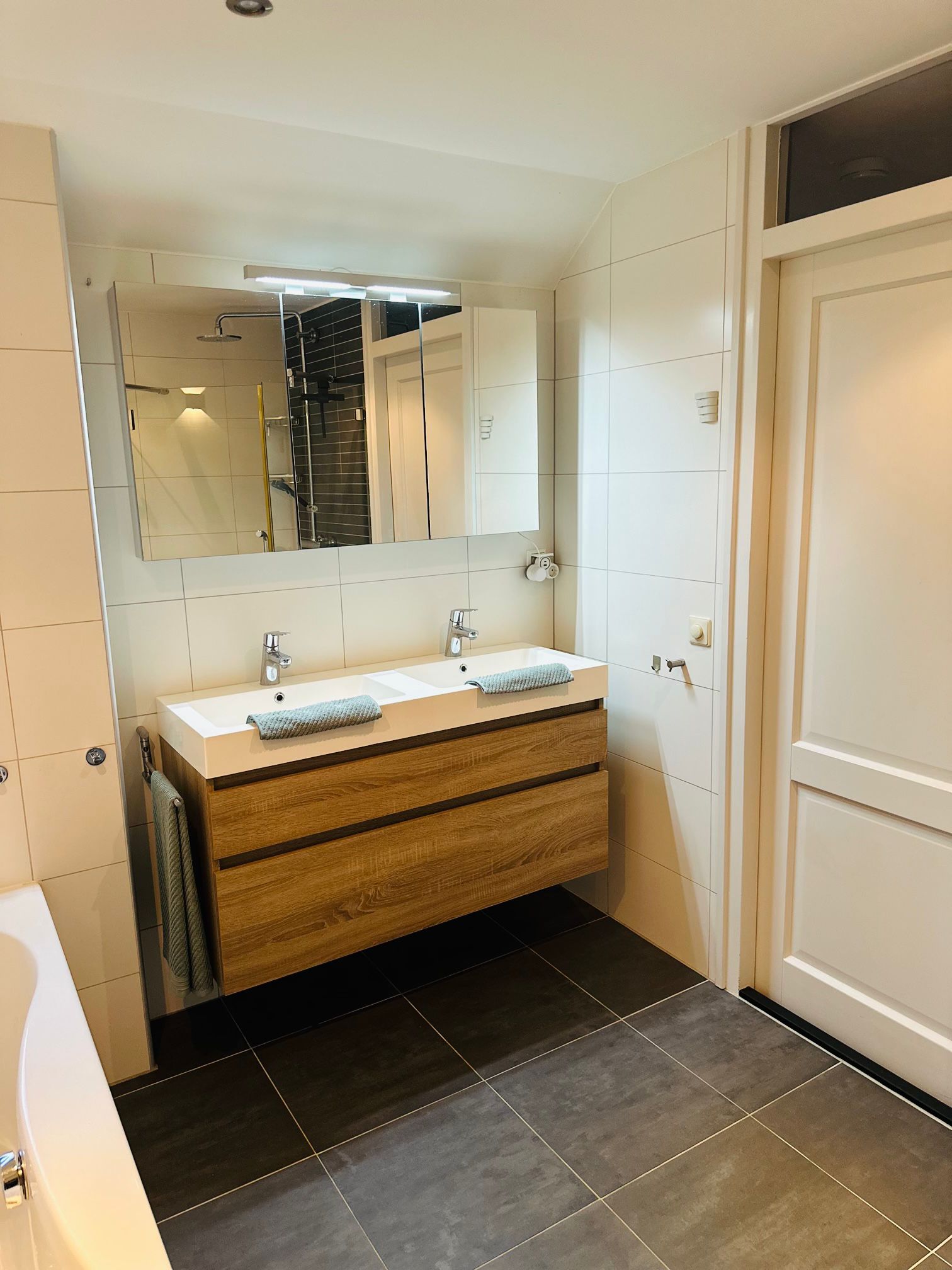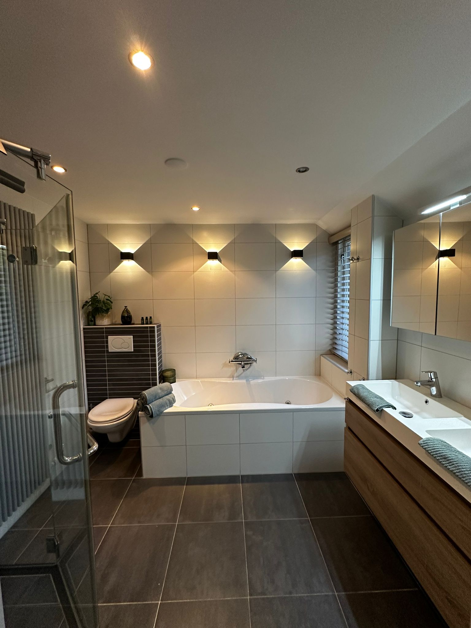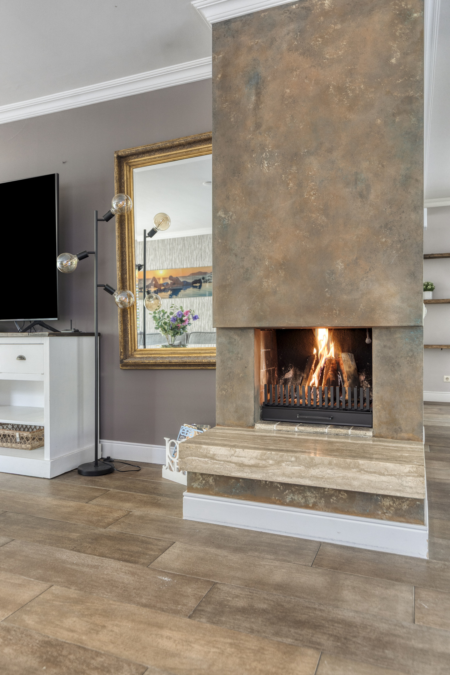 The entire ground floor, including the veranda, is fitted with wood-look tile flooring and underfloor heating.