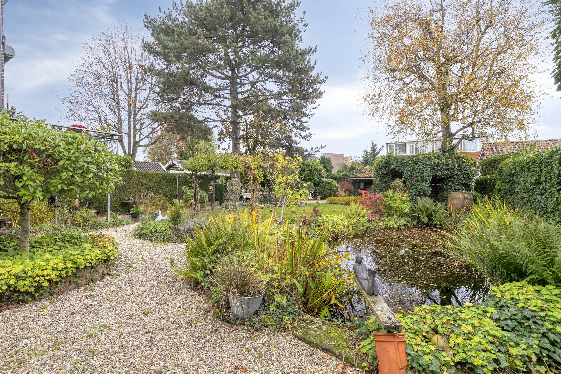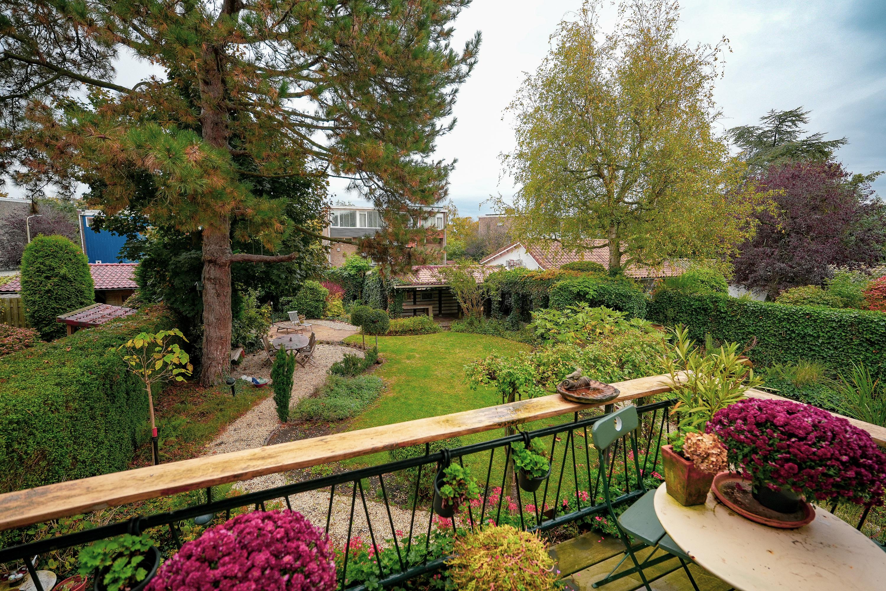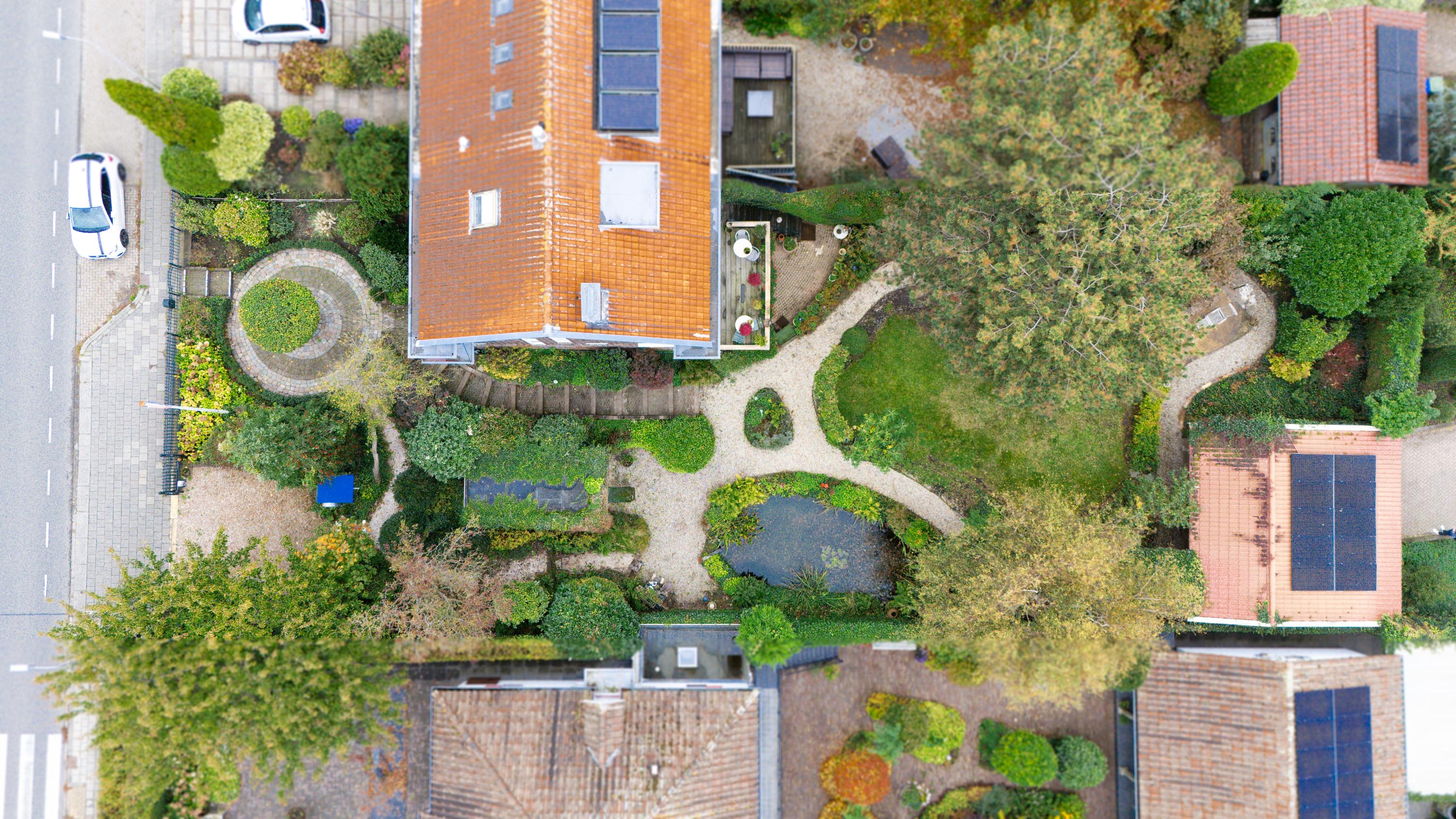 The garden is green, well maintained and provides lots of privacy. With multiple terraces you can enjoy both sun and shade throughout the day. The pond adds to the tranquil atmosphere.