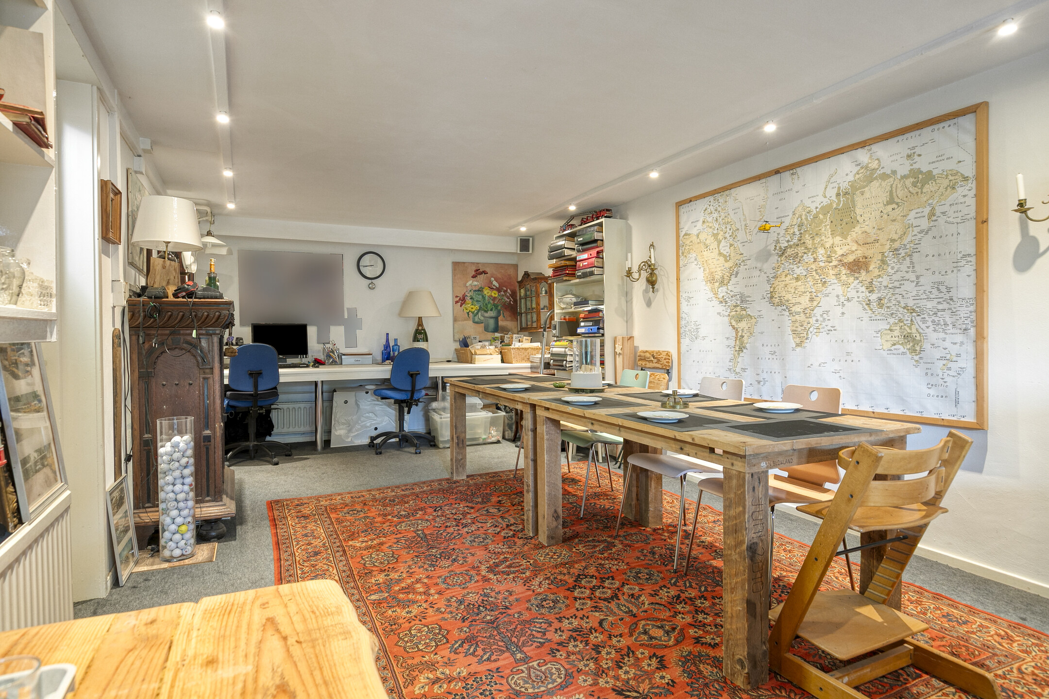 This large room is currently used as a dining area (additional dining room) but offers numerous possibilities, such as a bedroom, play area or hobby room.