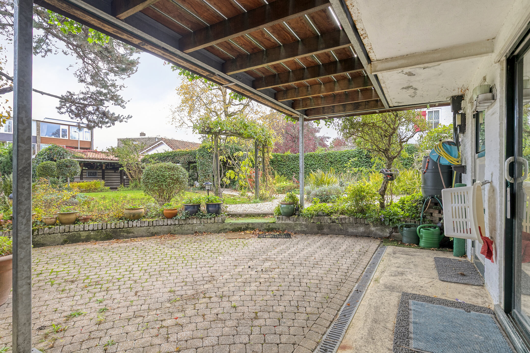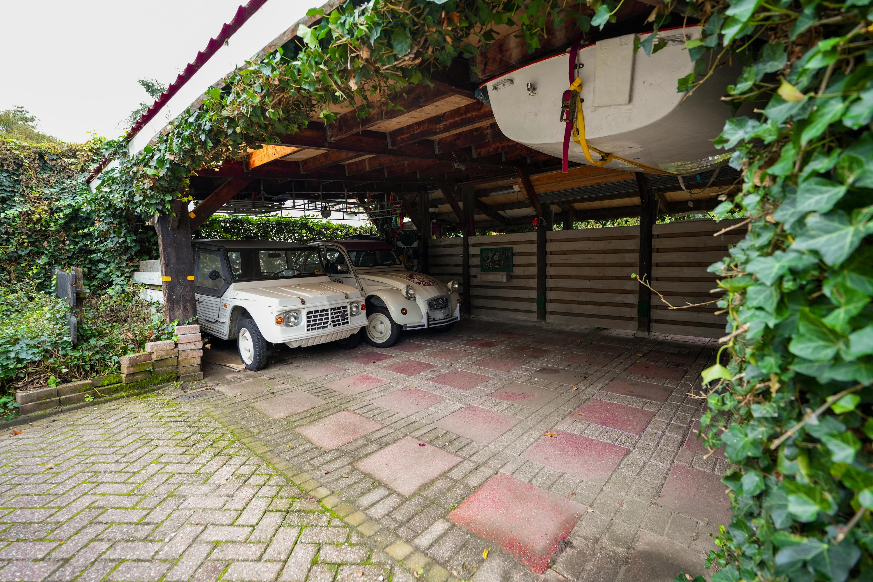 At the back of the plot you will find a carport with space for several cars, accessible via the Penninghlaan. The carport is fitted with 10 solar panels, and electric charging is also possible.