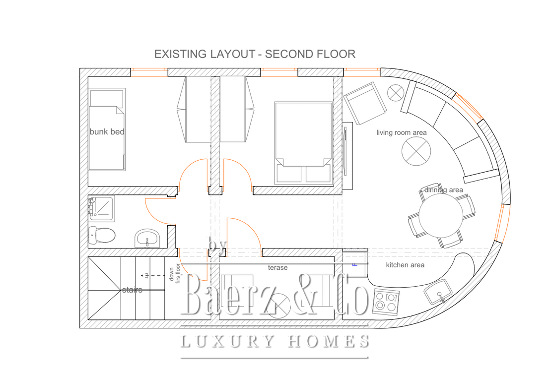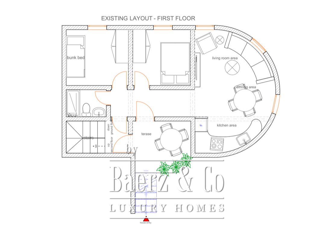 Structure of the house: 3 living rooms with 2 kitchens and dining tables, 5 bedrooms, 2 bathrooms, a toilet, stairway and 3 terraces. The house has a sea view and the view of the mountains that surround it. It is fully furnished and ready for moving in.