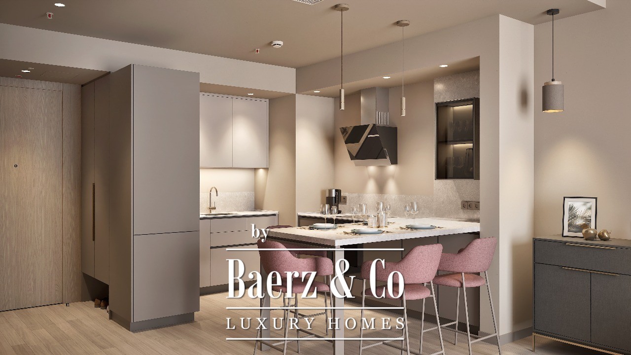 Structure of the apartment: hallway, living room with kitchen and dining table, a bedroom, a bathroom and a terrace. Upon construction the apartment will be fully furnished and ready for moving in.