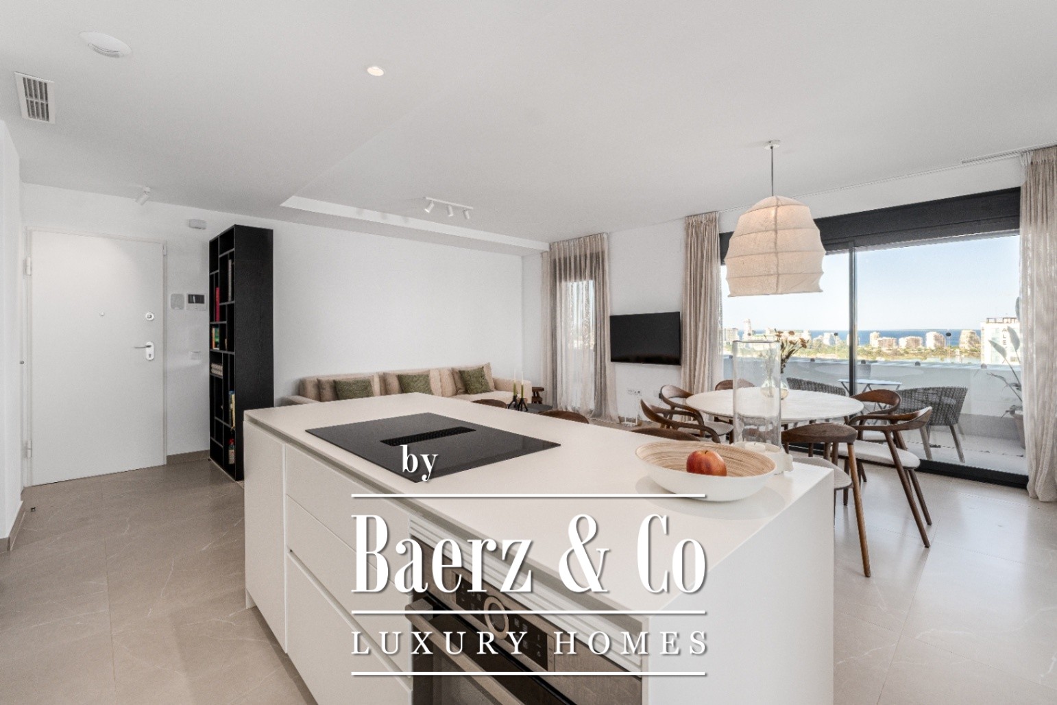 Penthouse apartment Calpe defines privacy and measured luxury, occupying the entire fourteenth floor of a discreet residence with just twenty-five apartments. The property, reimagined from three bedrooms to two, offers an expansive living experience with a free-flowing open kitchen and lounge seamlessly extending onto three terraces of over 30 m² each. East, south, and west orientations bring panoramic daylight and expansive sky views from morning to evening.
