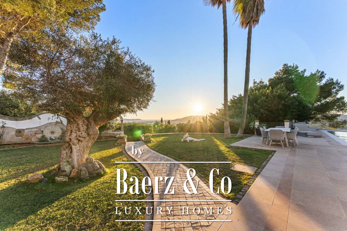 Panoramic sea and city vistas unfold across the infinity pool and lounge terraces, where mature gardens with palm trees and wild borders shape a private oasis. Everyday moments transition seamlessly outdoors, from breakfast on the southeast-facing terrace to evenings beside the pool. Secure access, ample parking, garage and 24-hour security deliver both comfort and discretion, making this villa in Can Furnet a considered choice for those seeking a luxury villa for sale in Can Furnet with all the essentials for lasting enjoyment in Ibiza.