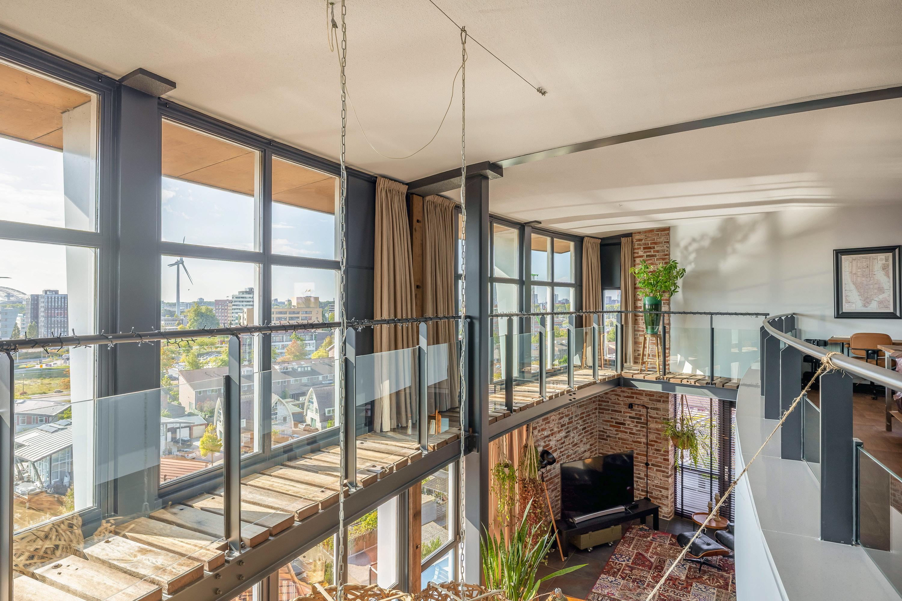 Living at a higher level takes on a whole new meaning here. This double penthouse on the 8th and 9th floors offers a whopping 251 m² of living space, making it a rare and exceptionally spacious city apartment. Everything about this home exudes comfort, luxury, and privacy. With no direct neighbours, you’ll enjoy peace, quiet, and total freedom. The panoramic windows offer breathtaking views of the Rotterdam skyline, the Brienenoord Bridge, and the lights of De Kuip – a view that never gets old. And it continues seamlessly into the outdoor space: spread across two levels, you have a total of 98 m² of roof terraces, ideally positioned to the southeast and southwest. That means: morning sun and evening sun with stunning sunsets.