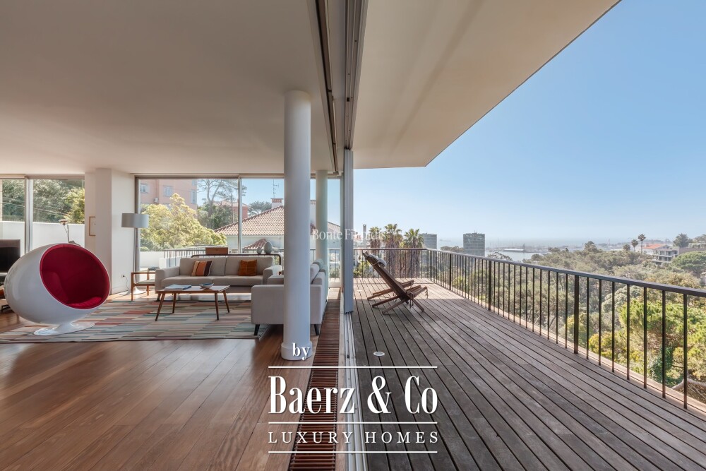 Villa Monte Estoril Cascais e Estoril is quietly positioned above Parque Palmela with expansive views over Cascais Bay, offering residents a rare perspective within this distinguished coastal enclave. The property is set across a 1,610 m² plot, presenting 801 m² of elegantly designed living space spread over four levels, all connected by elevator. Large volumes and floor-to-ceiling windows allow natural light to define the interiors while framing open sightlines across the park and Atlantic Ocean.