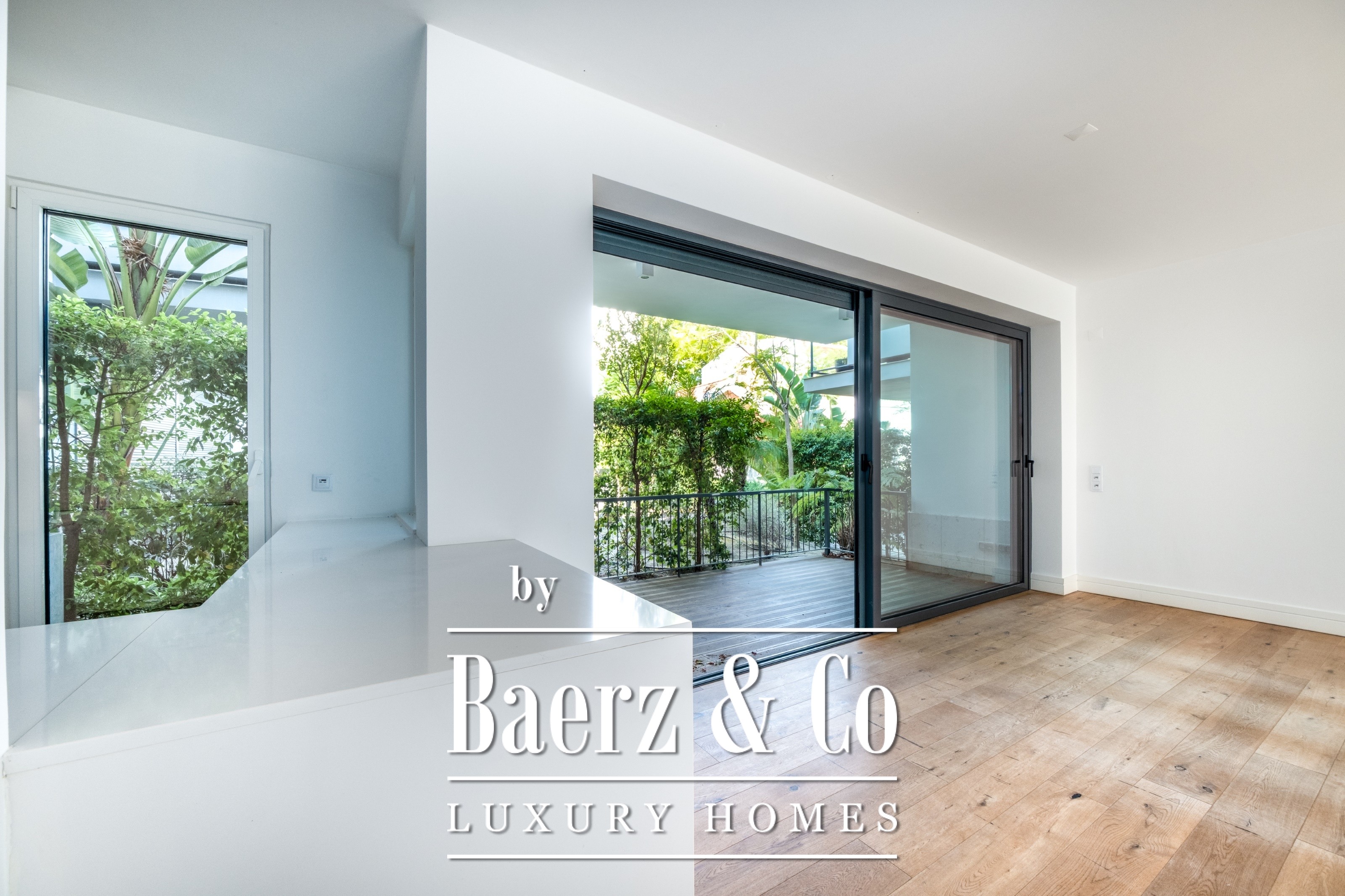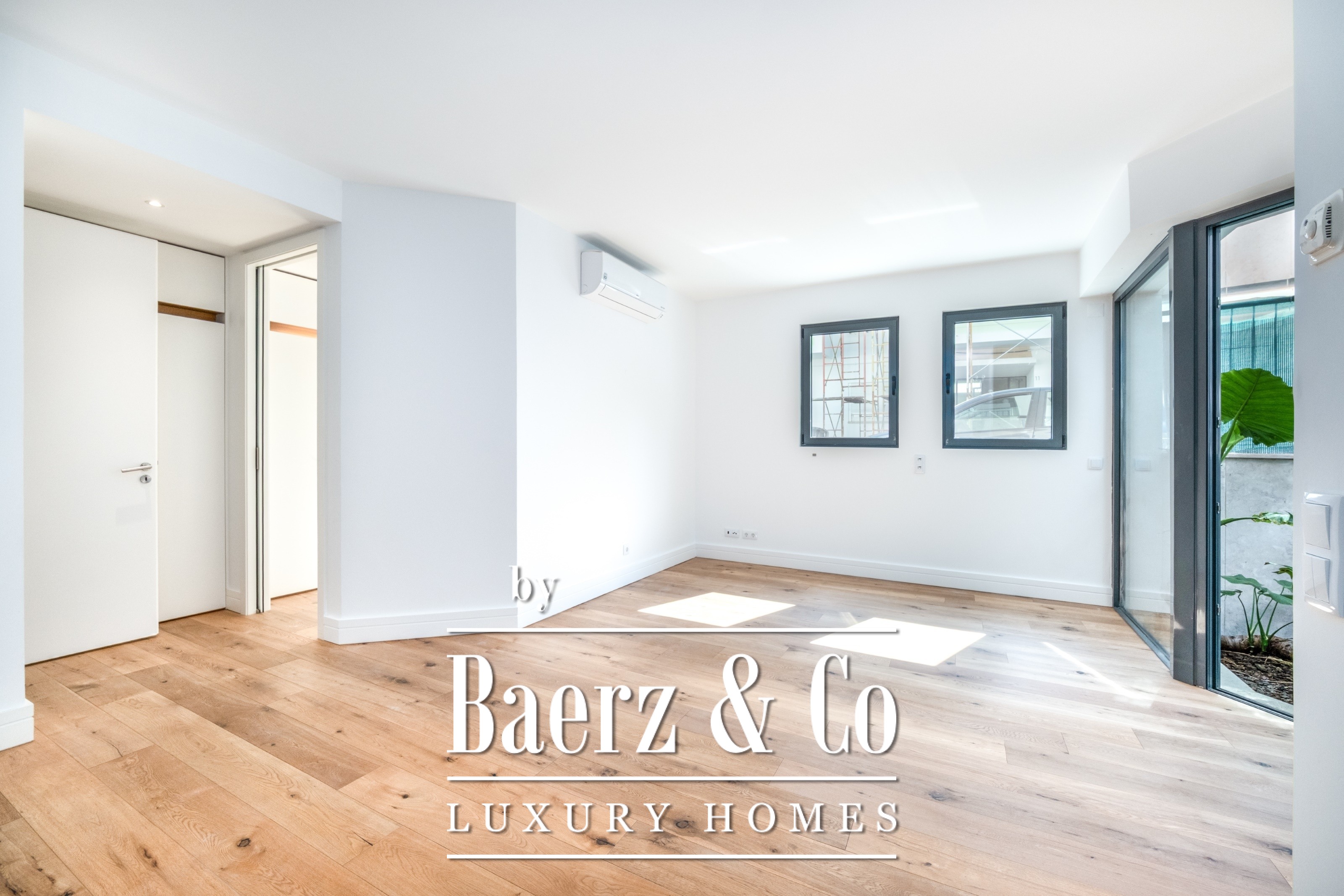 Apartment Cascais lies within the historic centre, offering 236 m² of considered living space complemented by a 53 m² dependent area. This four-bedroom residence is set in Edifício Teatro, built in 2020, presenting a thoughtful layout for those who value openness and privacy alike. The entrance hall leads to a guest bathroom, then unfolds to a living room opening onto a small garden and an adjacent dining room with a private terrace. Each room, including the four suites, is equipped with air conditioning, while the master suite includes a walk-in closet. Electric shutters add another layer of discretion and ease.