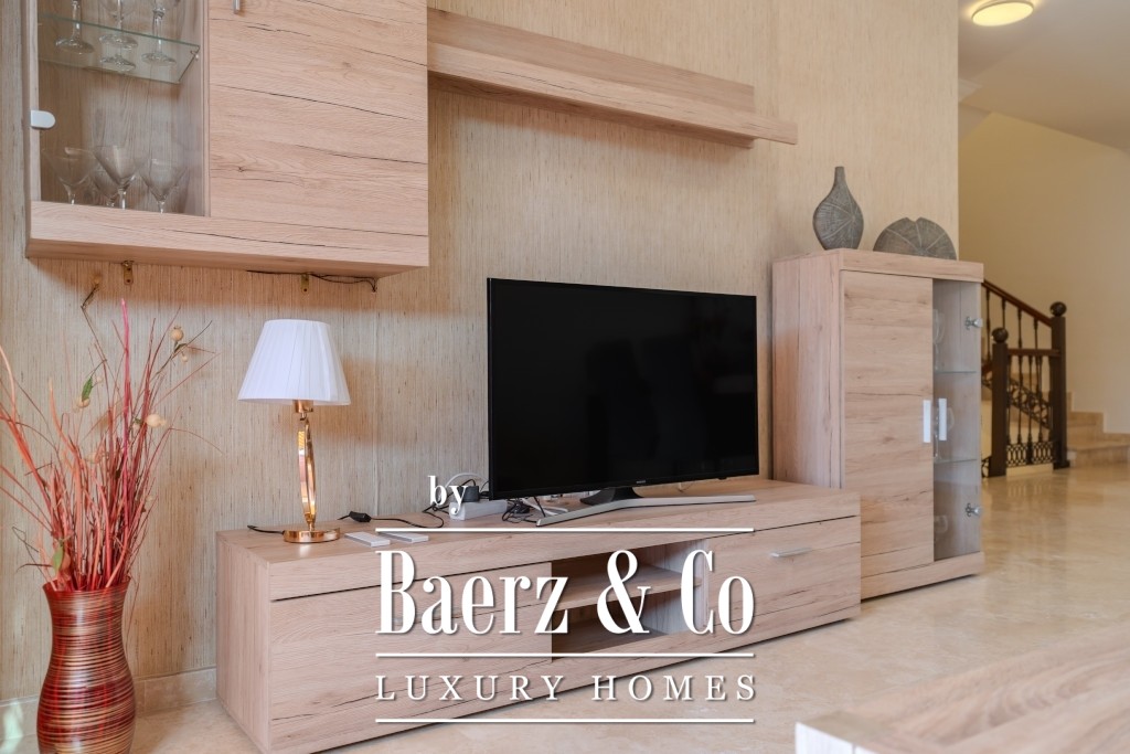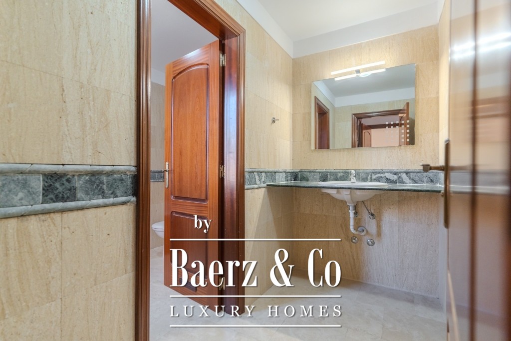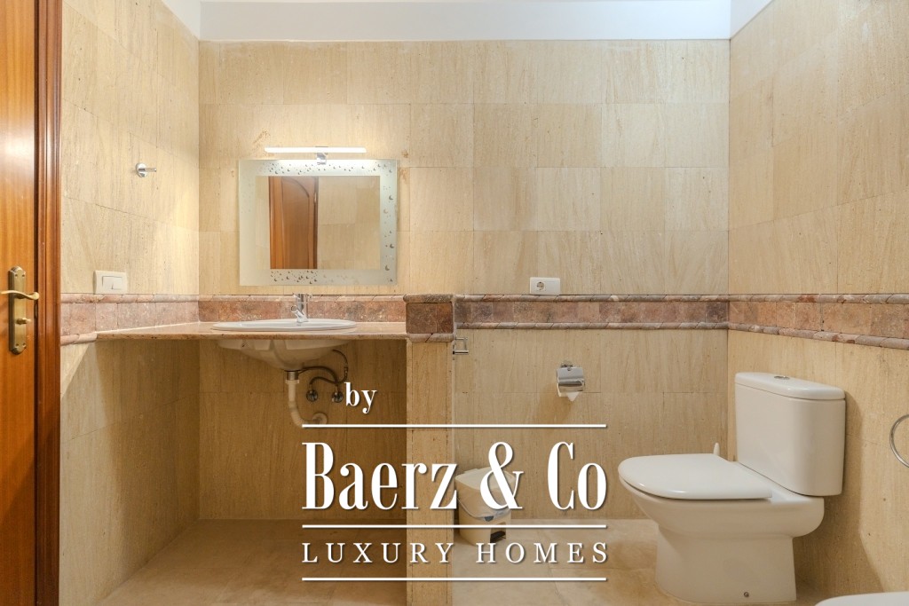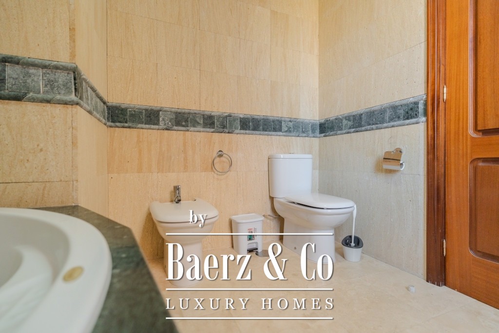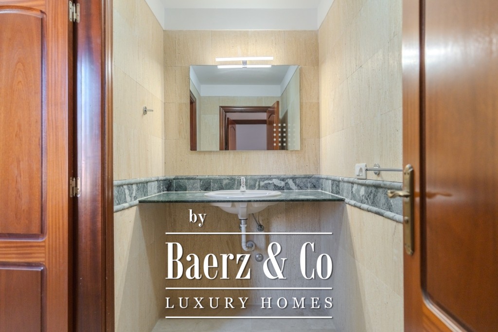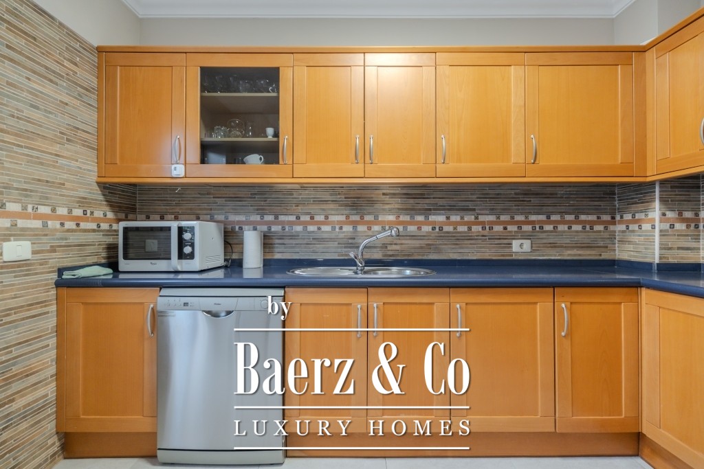Below, a 77 m² basement accommodates a private garage for two to three cars, a storage room, and further storage under the stairs. Residents benefit from two communal swimming pools, one heated, enveloped by calm and well-kept green zones. Community fees are set at €265 per month, with IBI tax at €925 per year, affirming the villa’s rare combination of access, discretion, and ease.