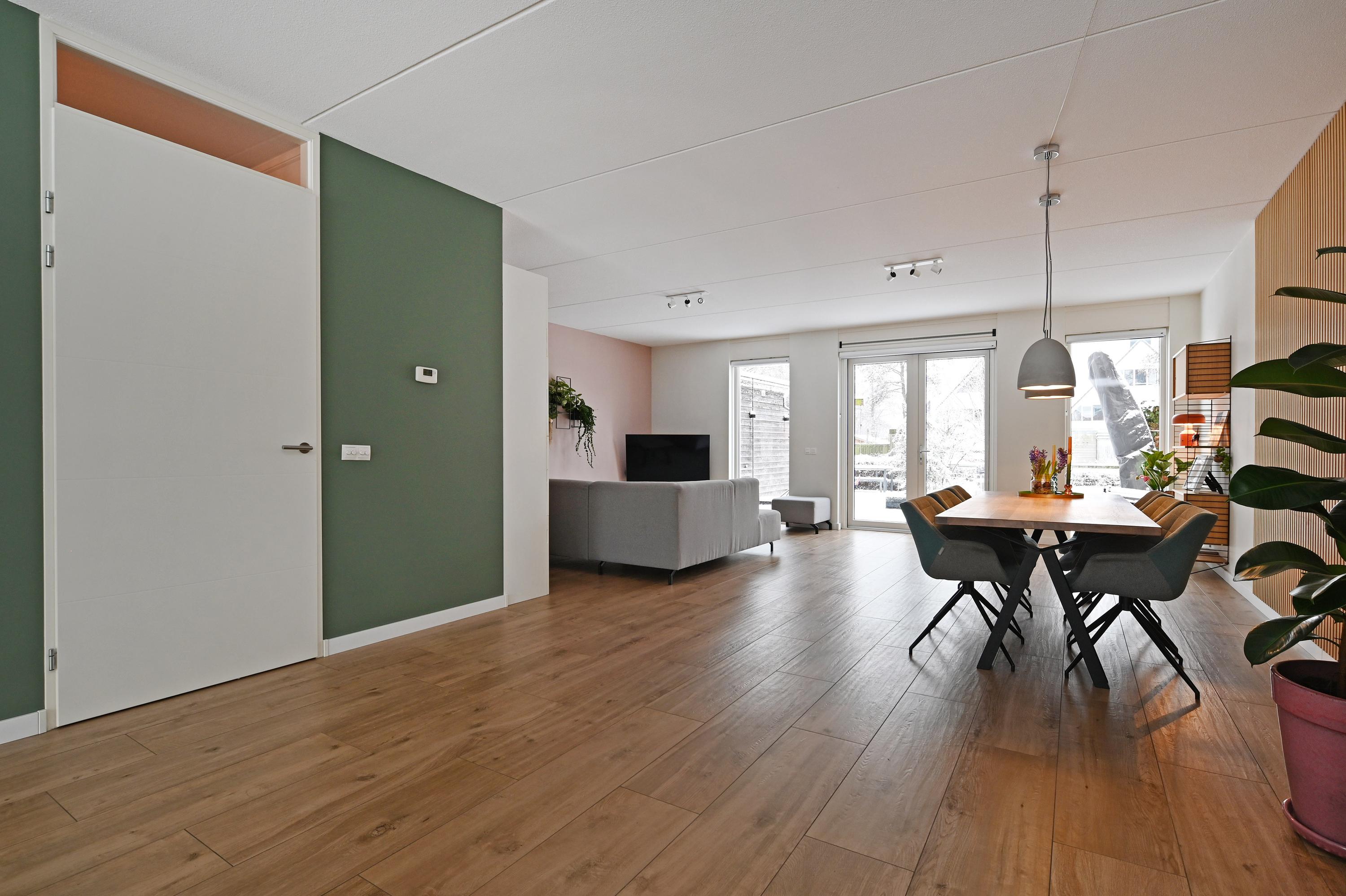 Bij binnenkomst in de woonkamer bevindt zich aan de voorzijde van het huis de ruime open keuken. De keuken is voorzien van een spoeleiland, veel kastruimte en diverse inbouwapparatuur. Via de schuifpui heb je direct toegang tot het terras in de voortuin – een heerlijke plek voor een kop koffie of een drankje in de zon.